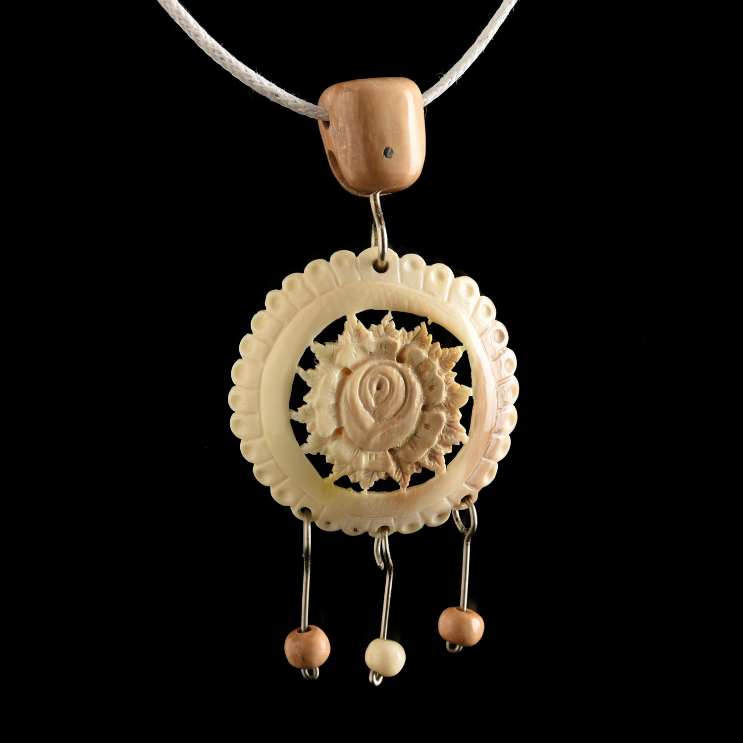 Кулон из бивня мамонта "Роза День".Размер: 25х50 мм