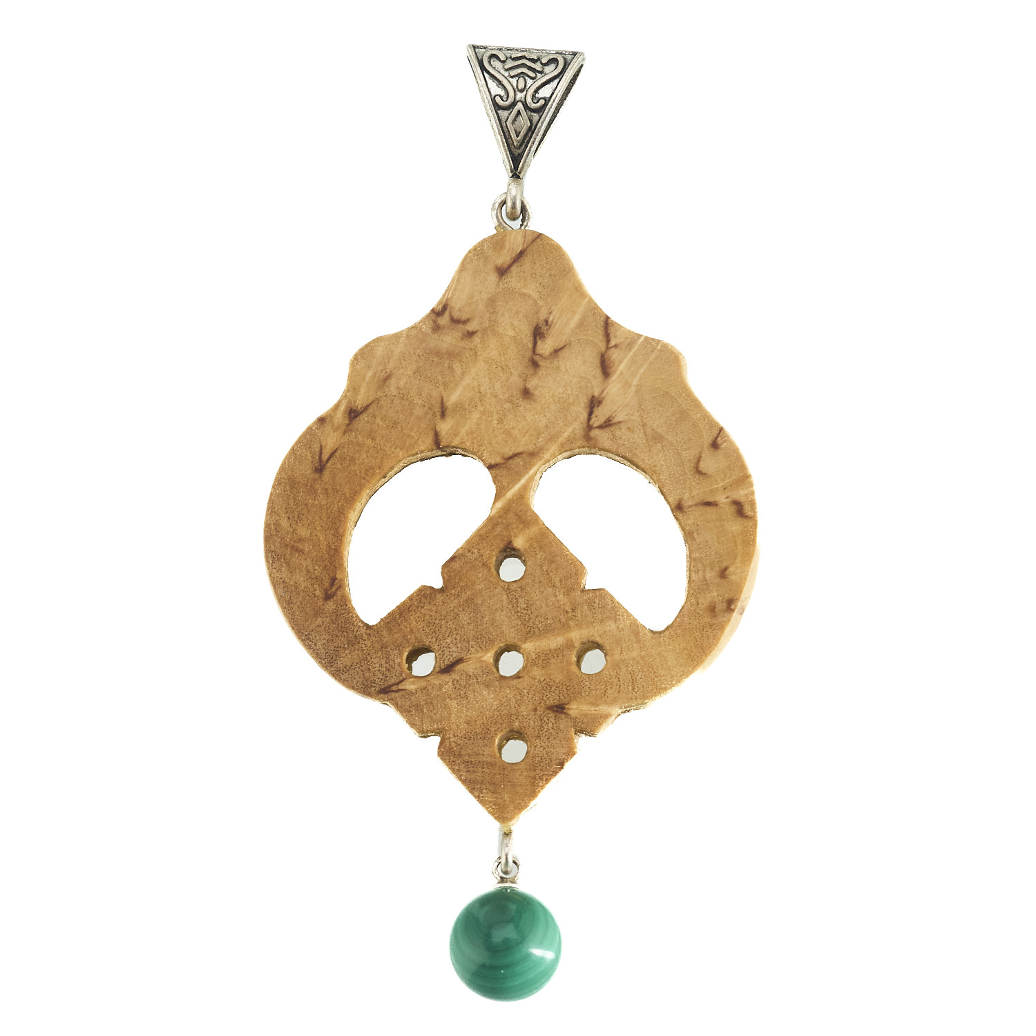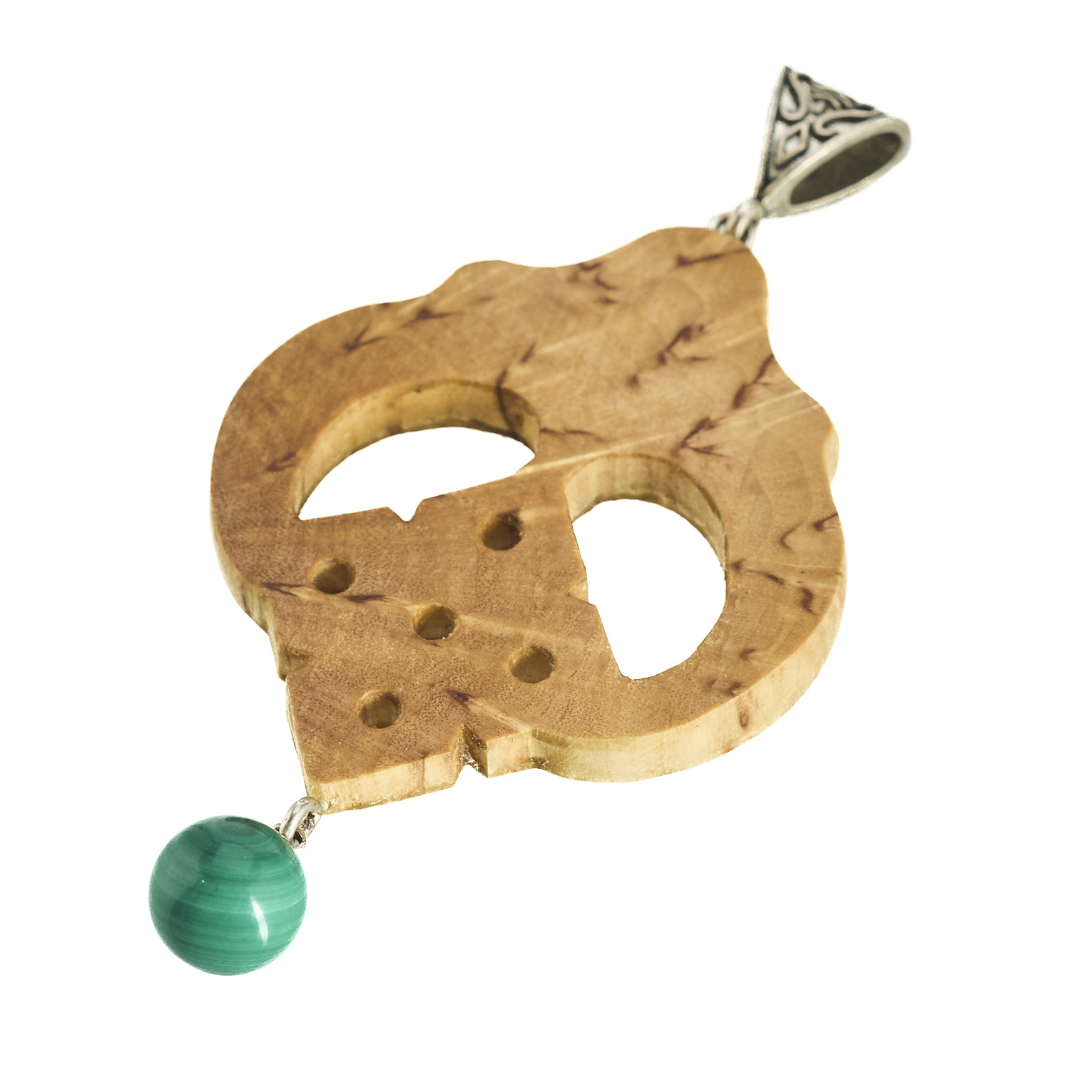 Подвеска-амулет из карельской березы и малахита
