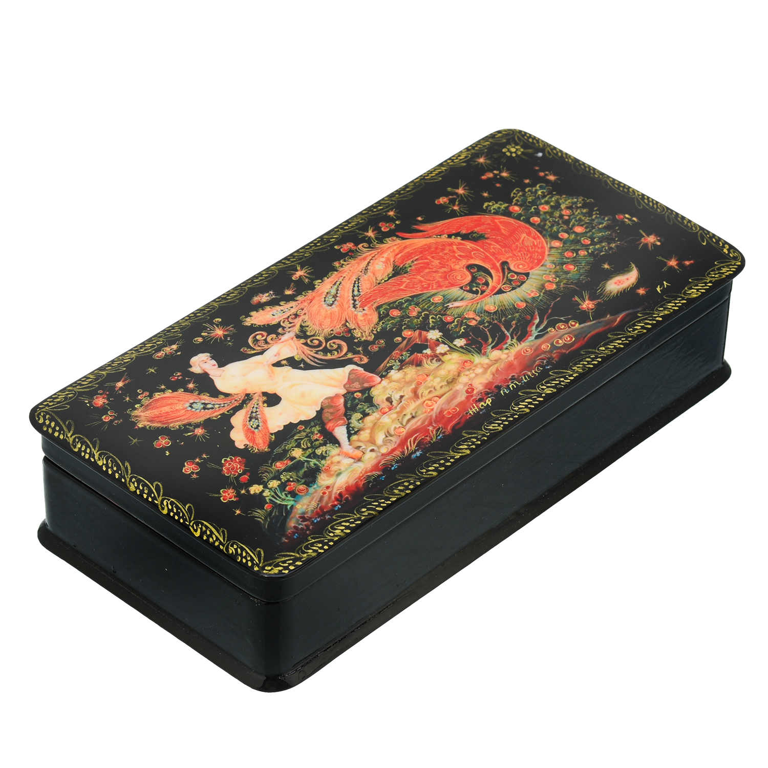 203888 ШКАТУЛКА с росписью "ЖАР-ПТИЦА",18*9*4см