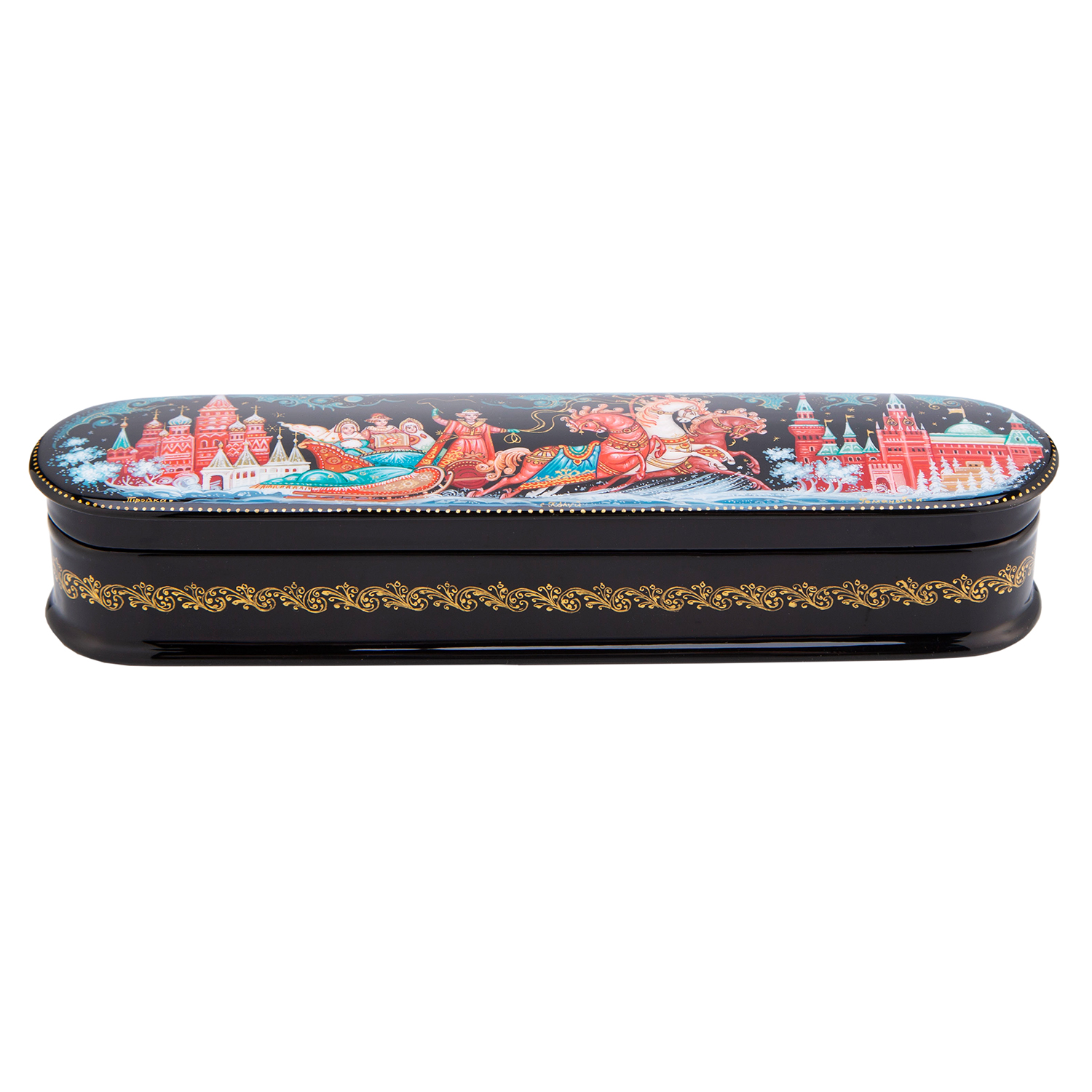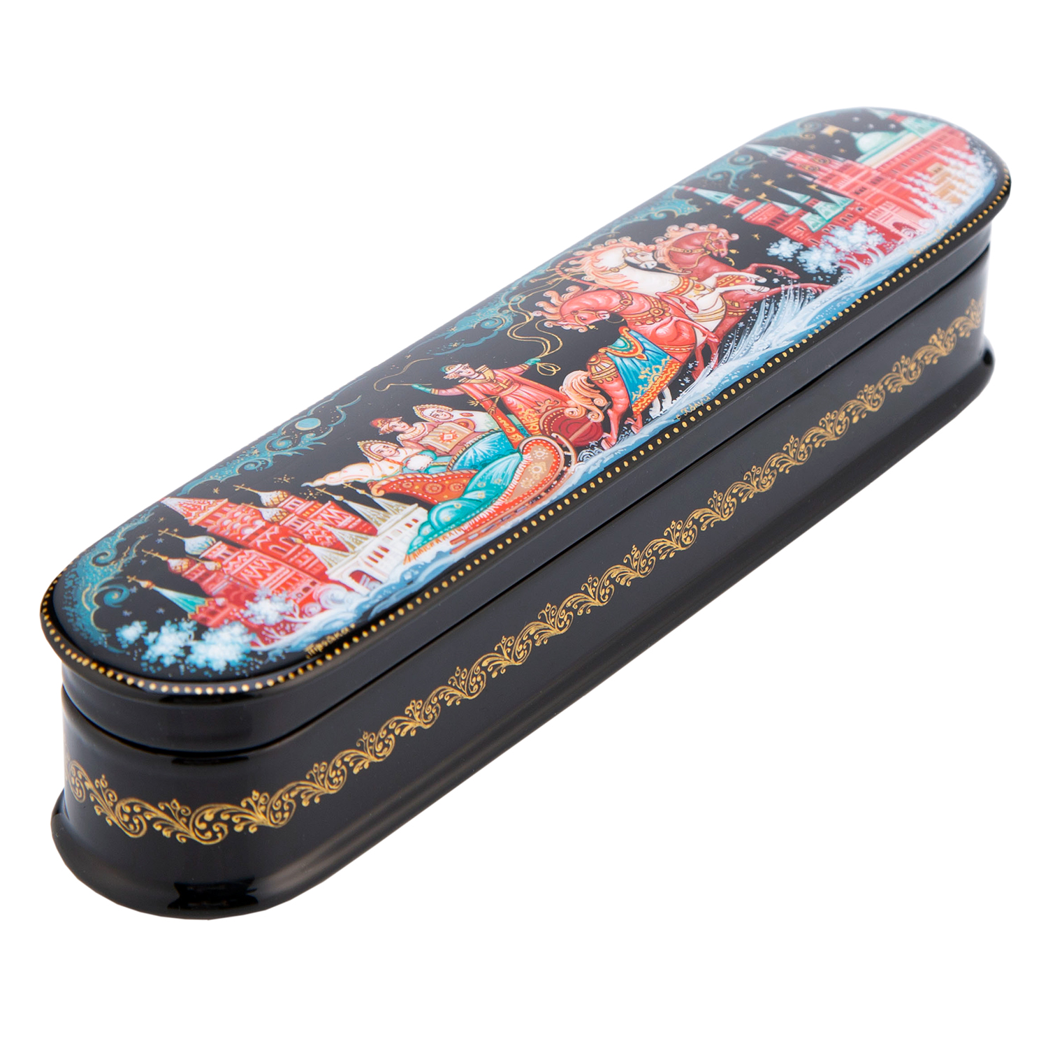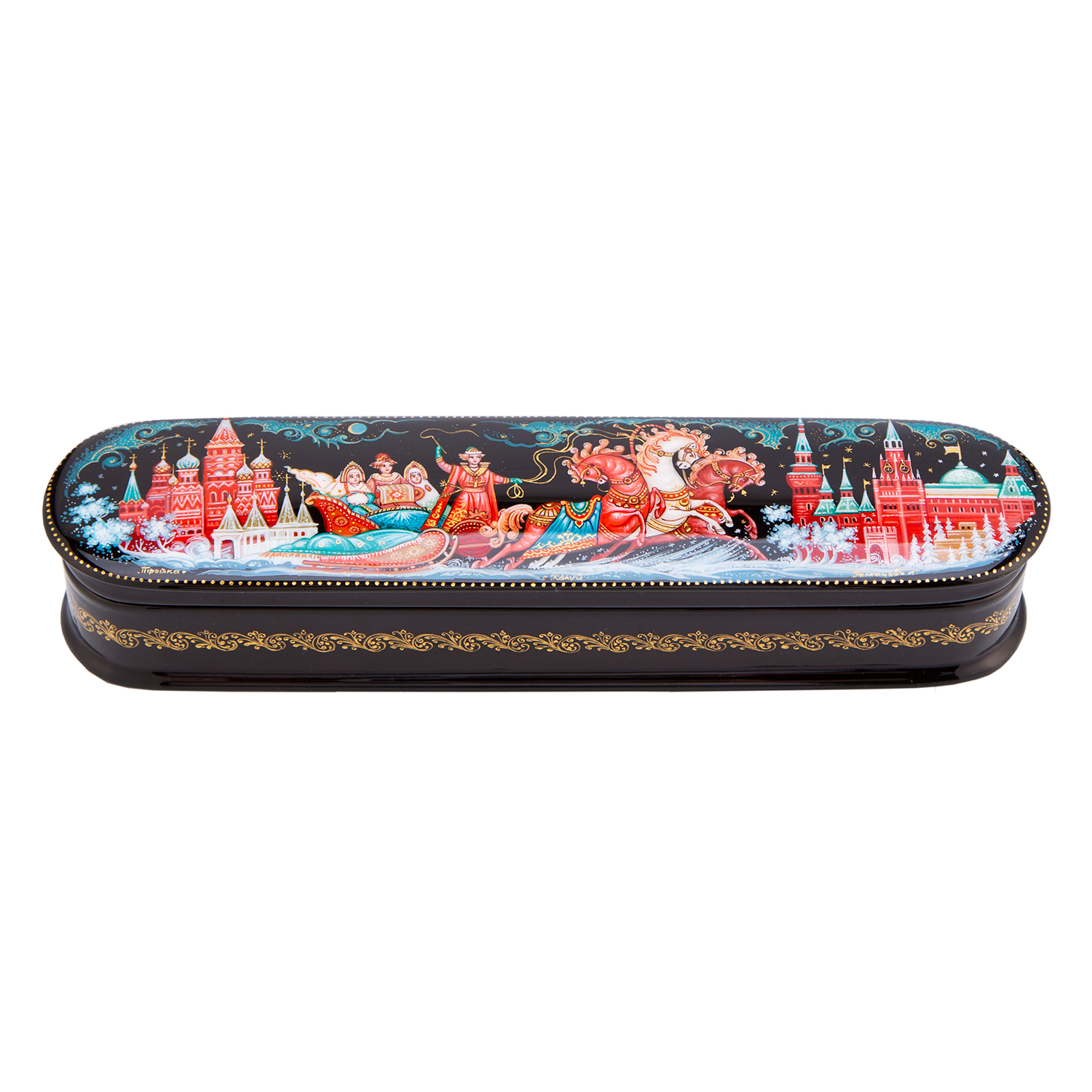 Русские подарки и сувениры → Шкатулки → Лаковая миниатюра → Шкатулка с художественной росписью "Тройка"