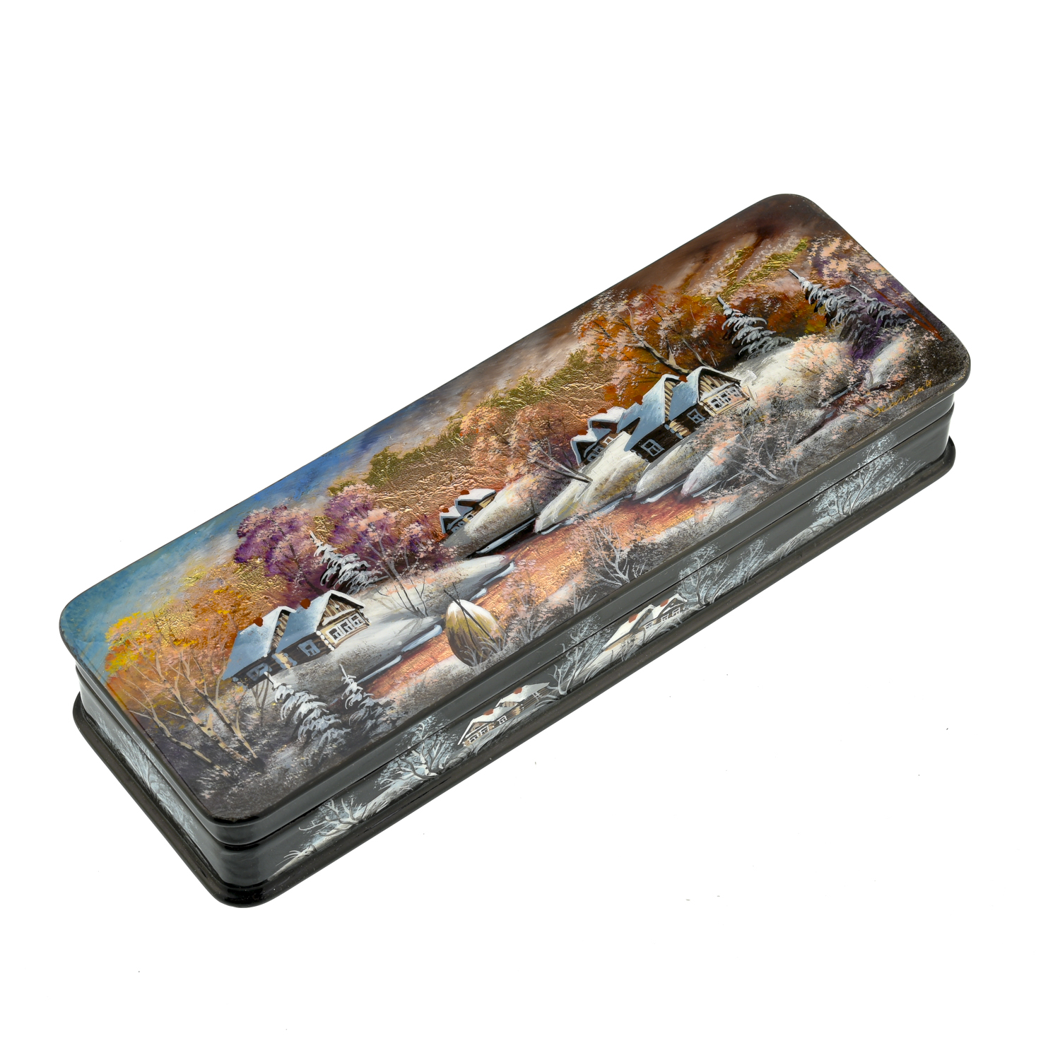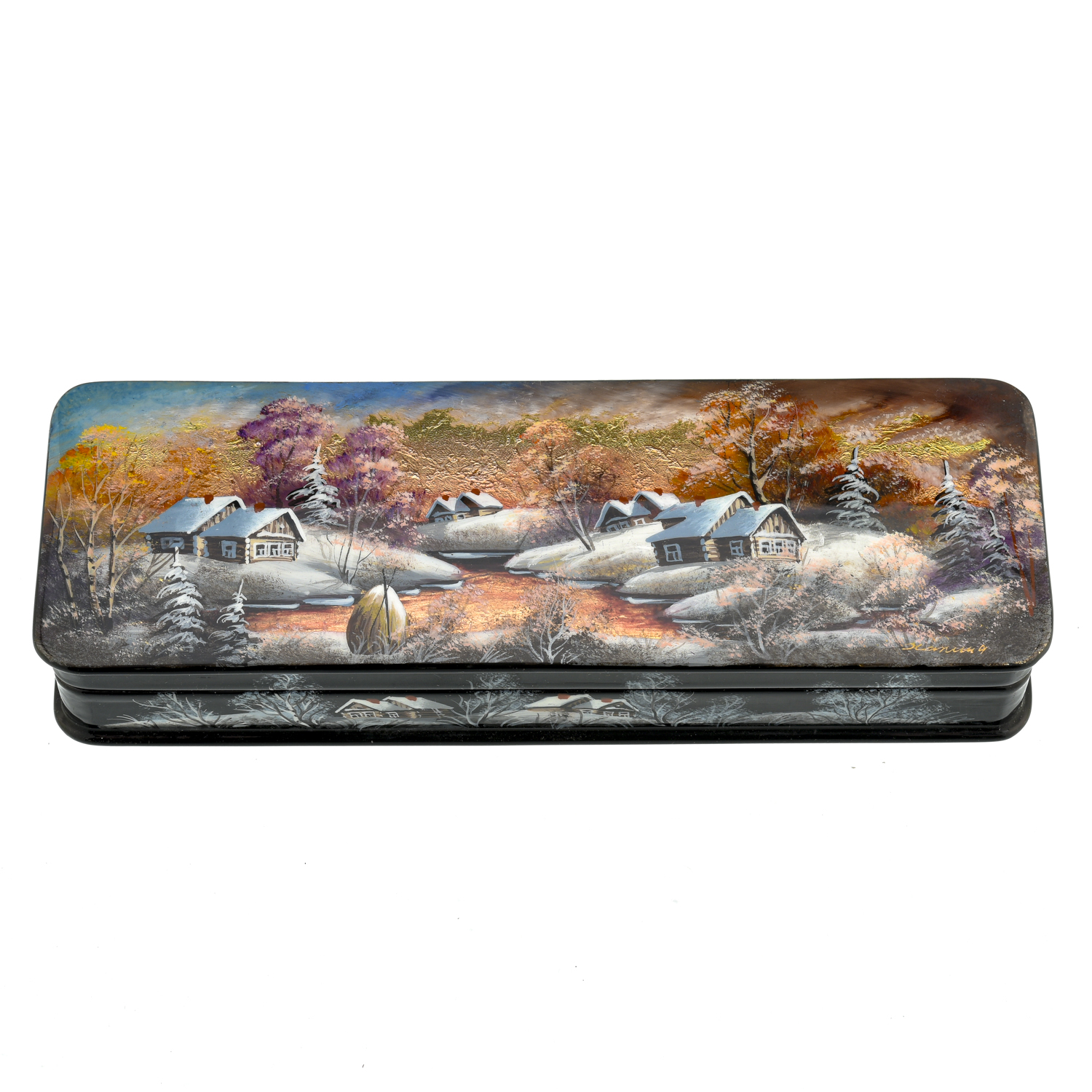 Шкатулка с художественной росписью "Зима в деревне"