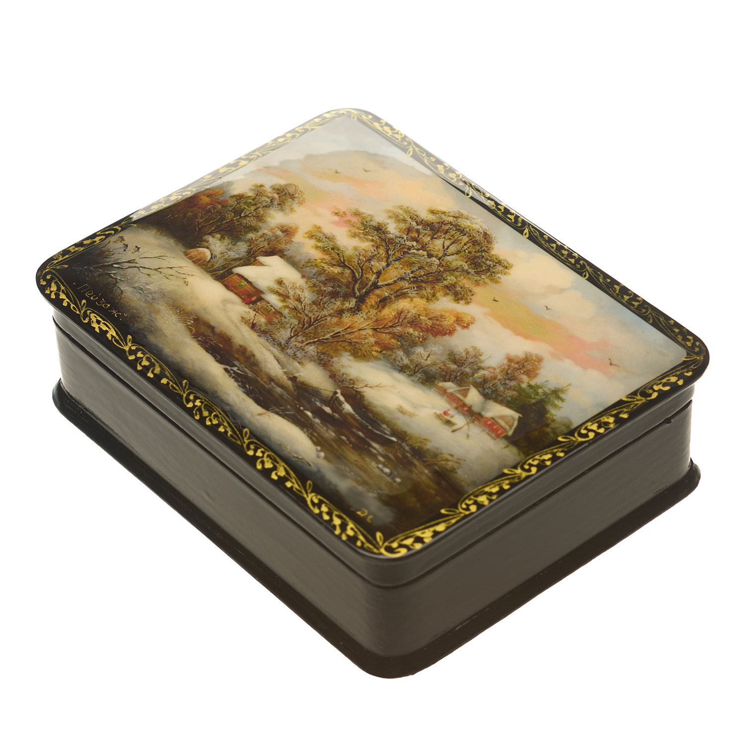 Шкатулка "Зима в деревне".Материал: папье-маше.