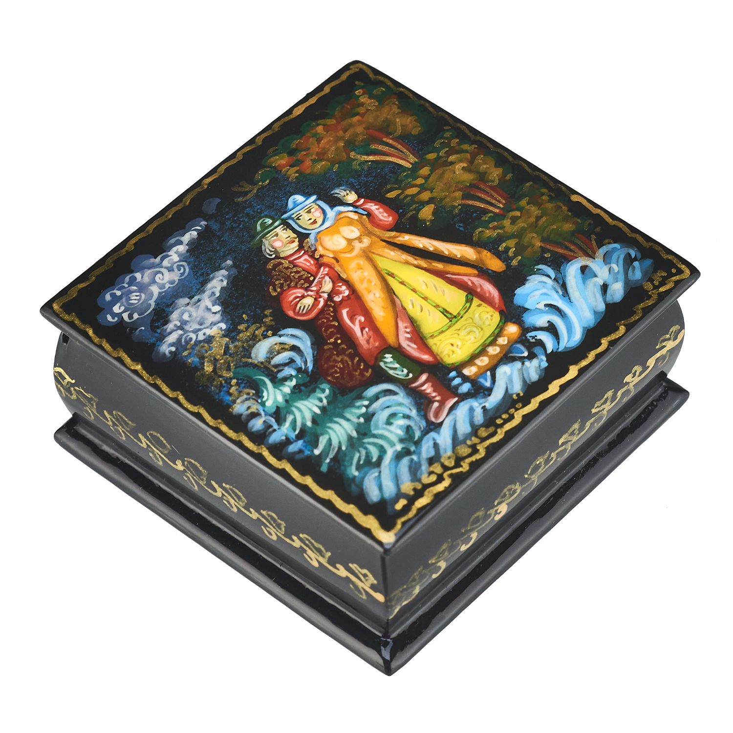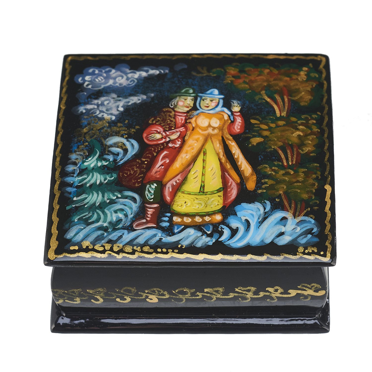 Русские подарки и сувениры → Шкатулки → Лаковая миниатюра → Шкатулка с художественной росписью "Встреча"