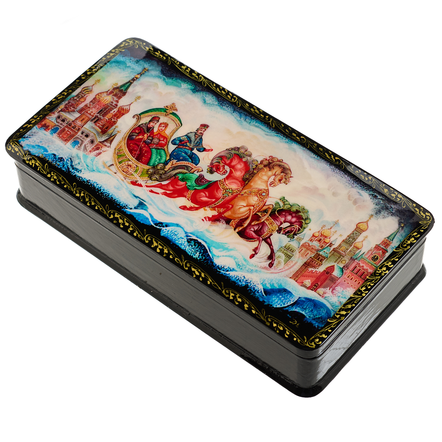 Русские подарки и сувениры → Шкатулки → Лаковая миниатюра → Шкатулка с художественной росписью "Зимняя тройка"