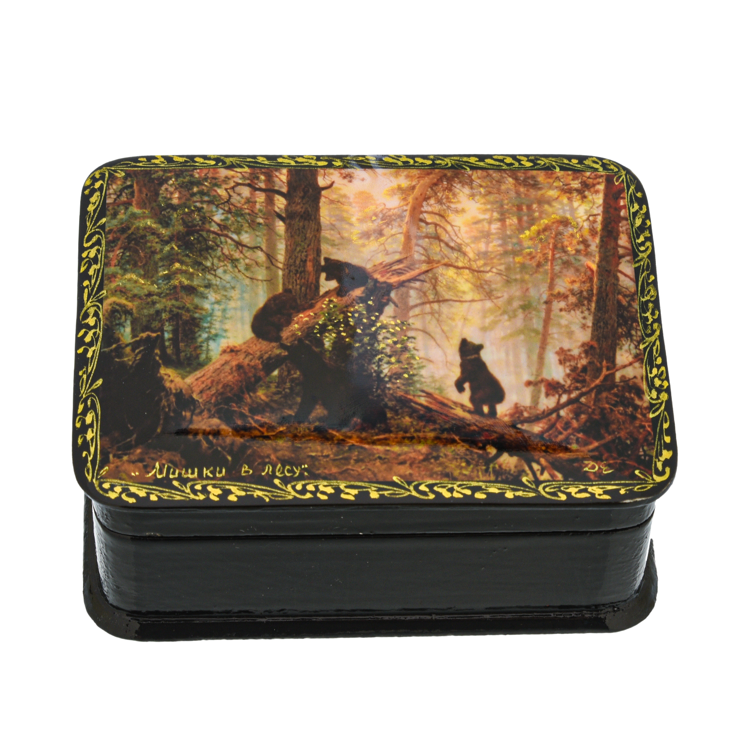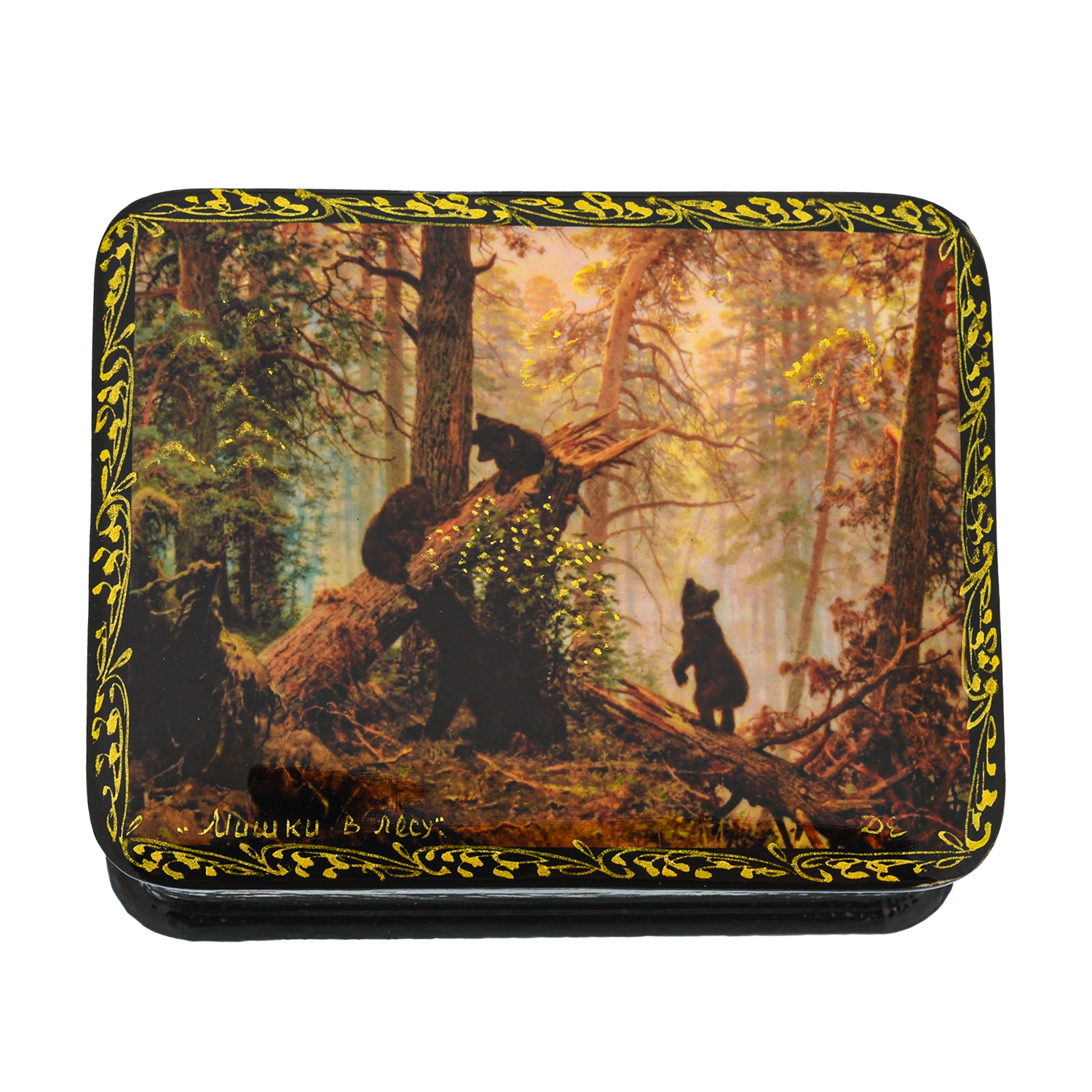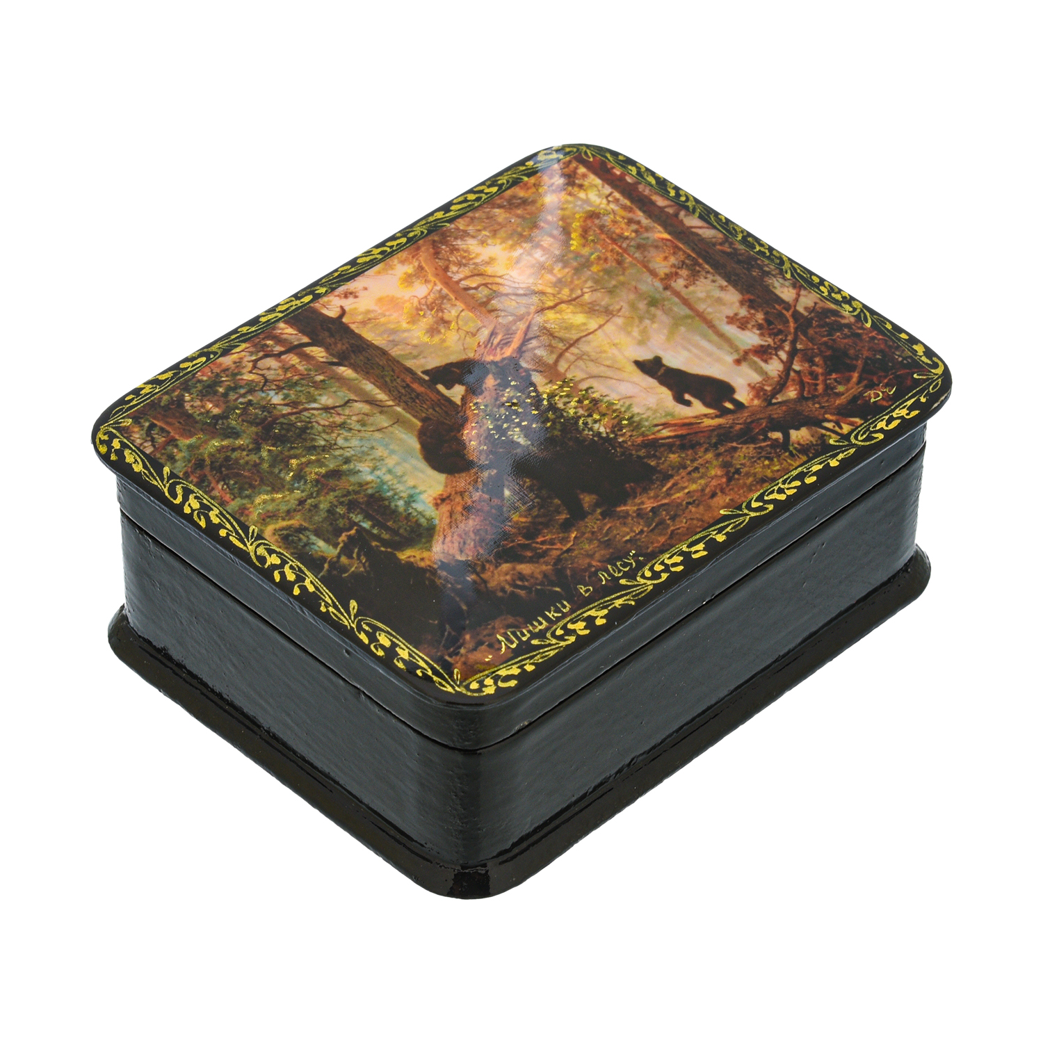 Шкатулка "Утро в сосновом лесу".Материал: папье-маше.