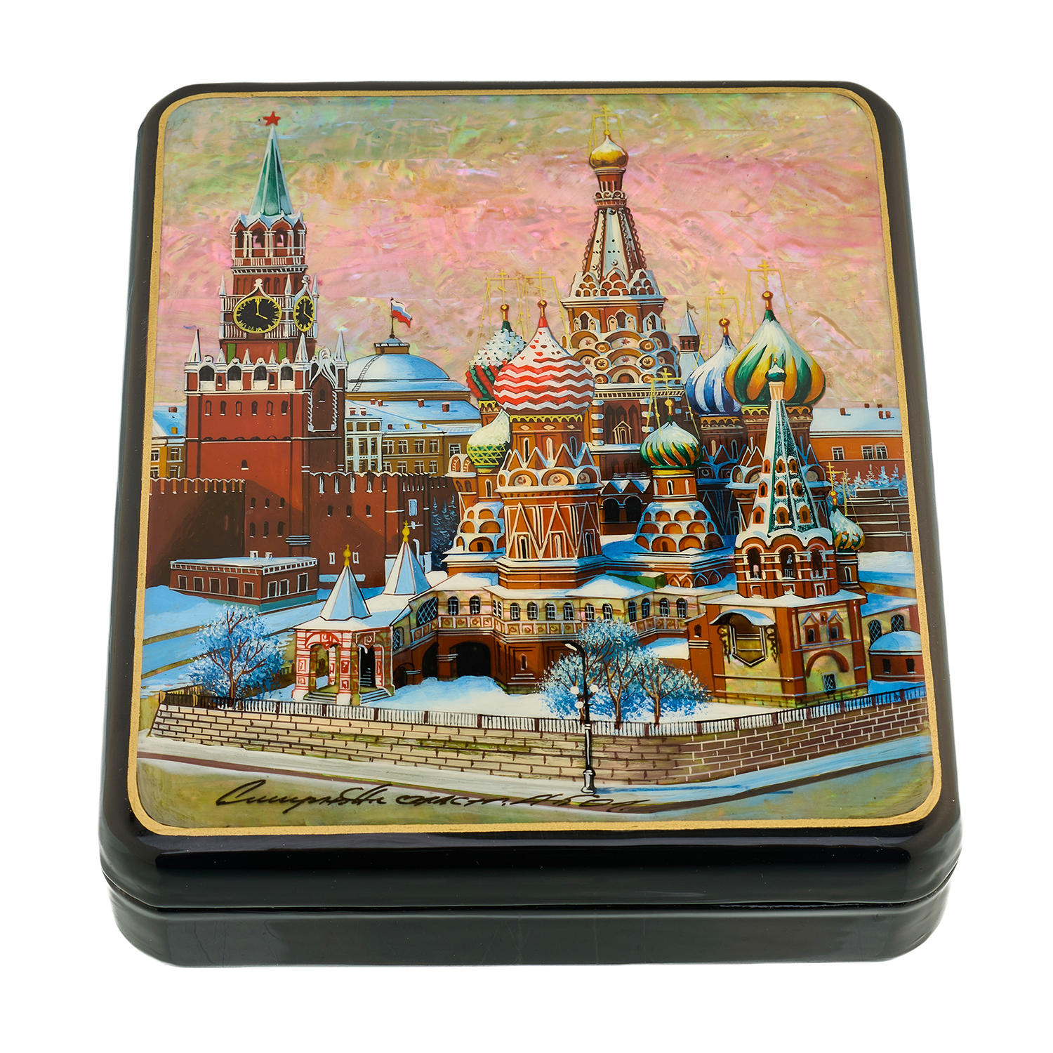 Русские подарки и сувениры → Шкатулки → Лаковая миниатюра → Шкатулка с художественной росписью "Зимняя Москва"