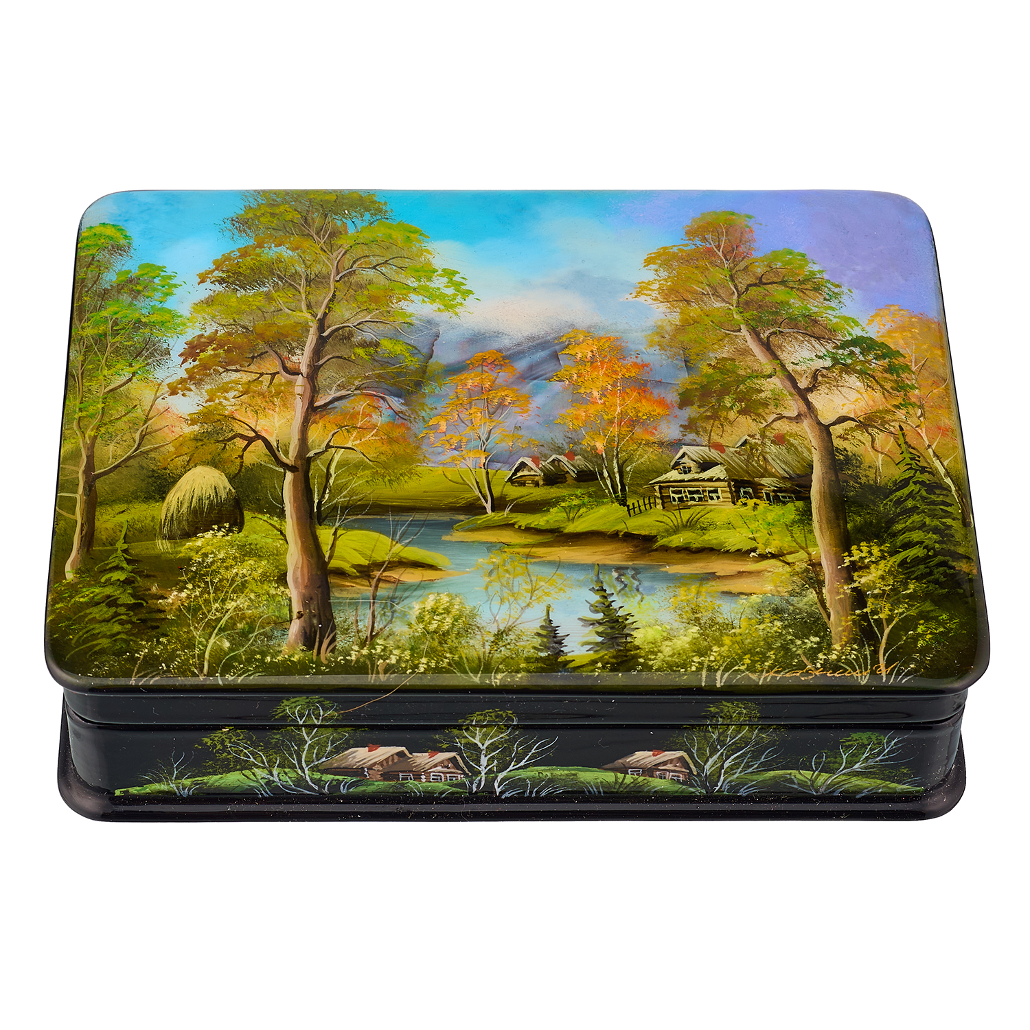 Шкатулка из папье-маше с художественной росписью "Лето в деревне"