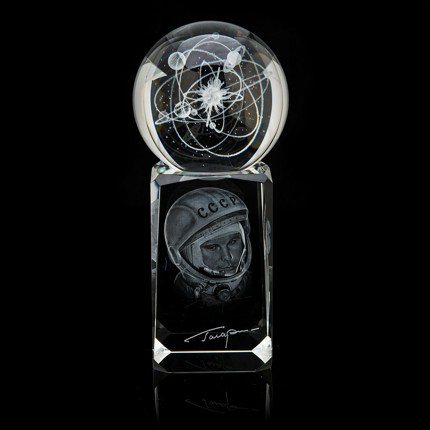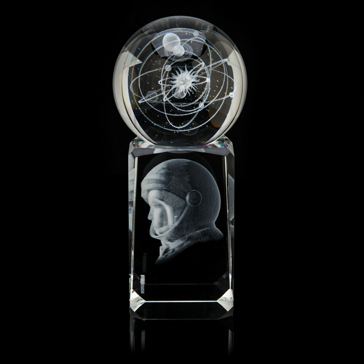 Лазерная графика. Статуэтка "Первый в космосе. Гагарин".Материал: стекло.