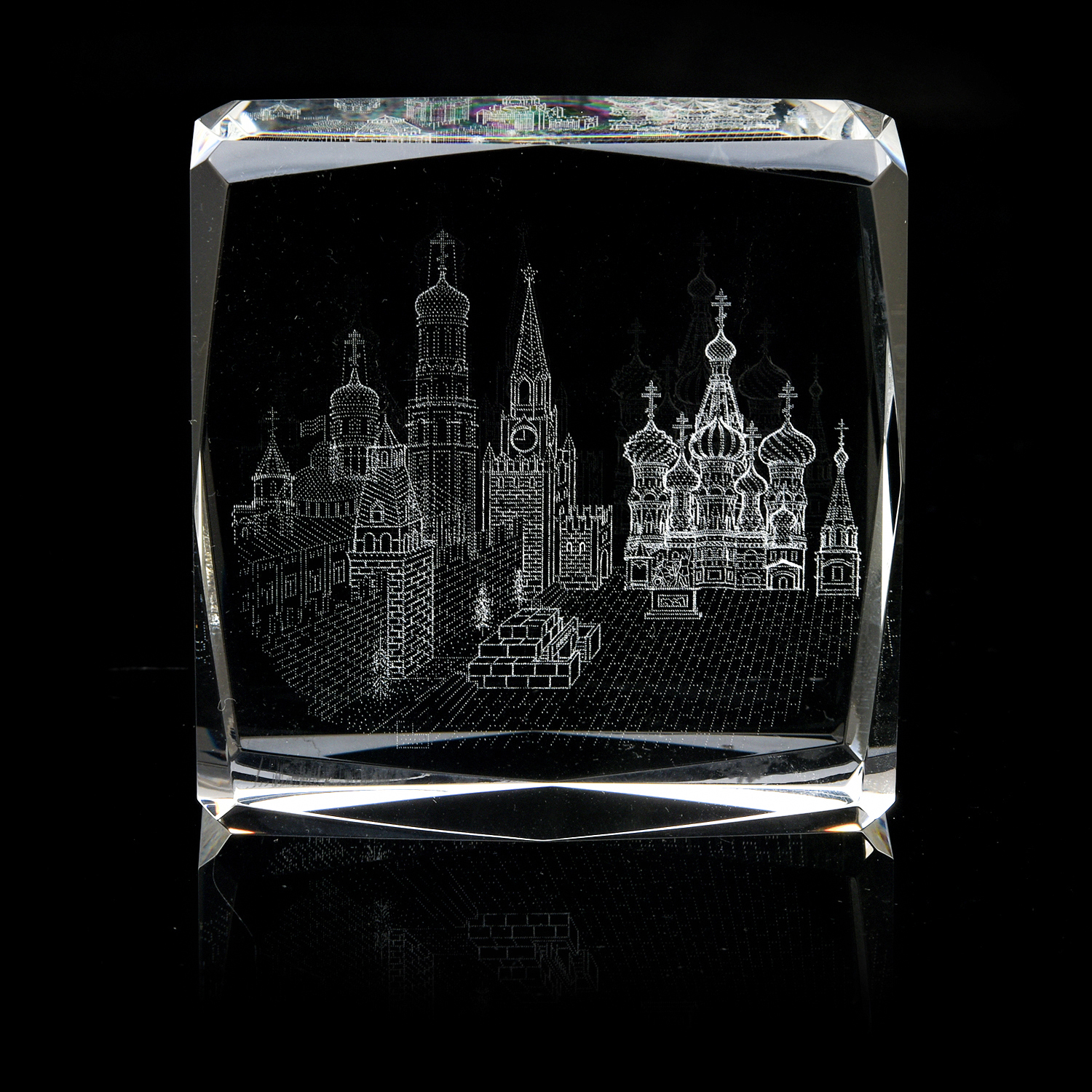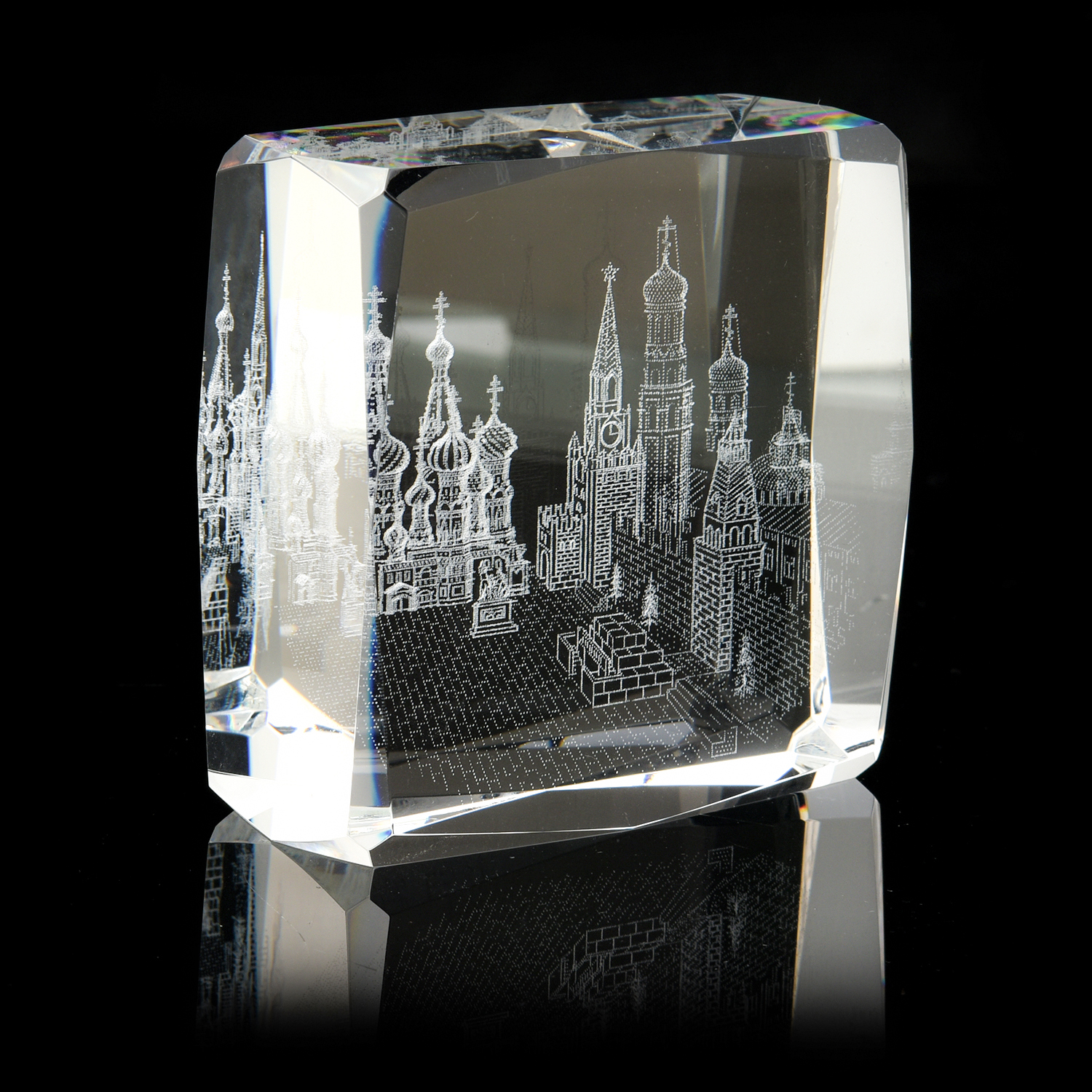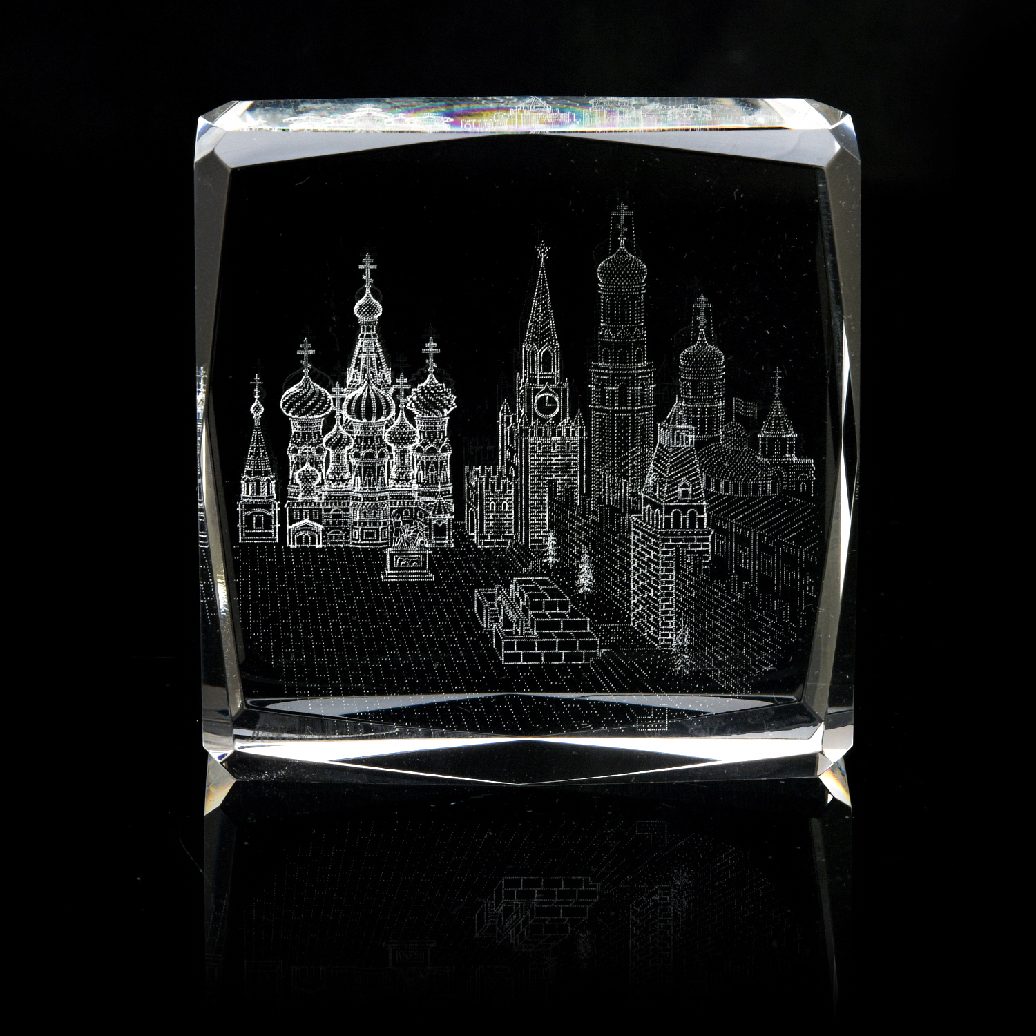 Лазерная графика. Статуэтка "Храм Василия Блаженного".Материал: стекло.