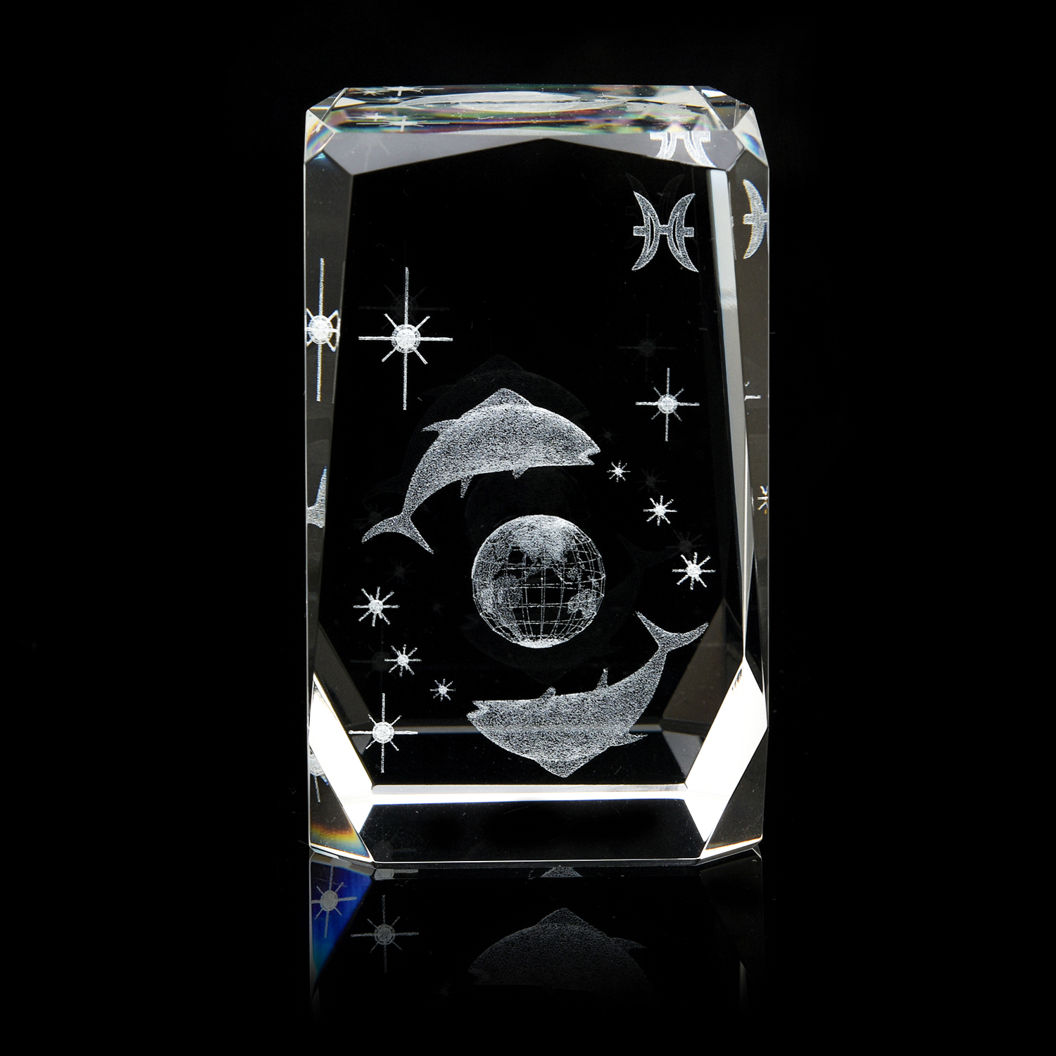 Лазерная графика. Статуэтка "Знак зодиака Рыбы".Материал: стекло.