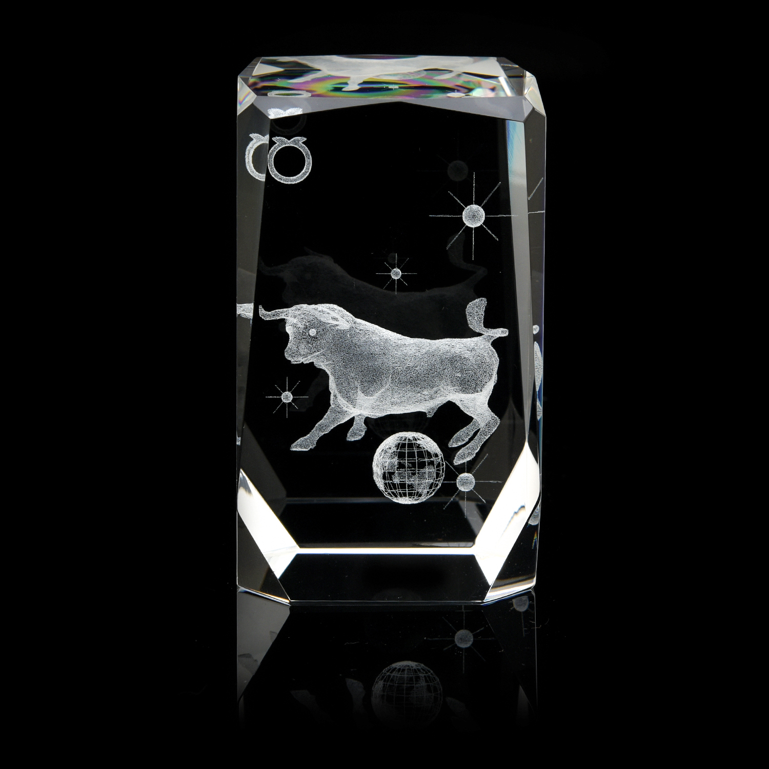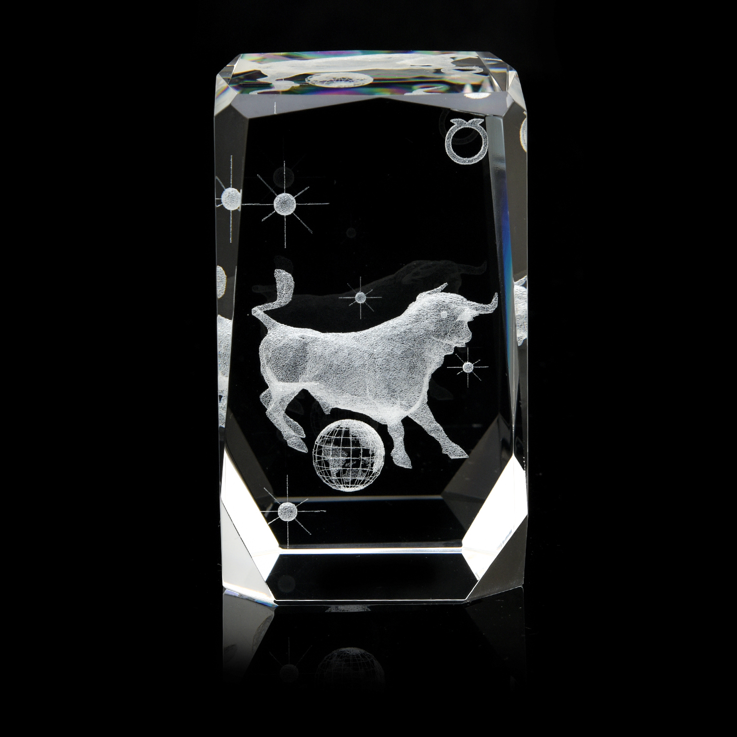 Лазерная графика. Статуэтка "Знак зодиака Телец".Материал: стекло.