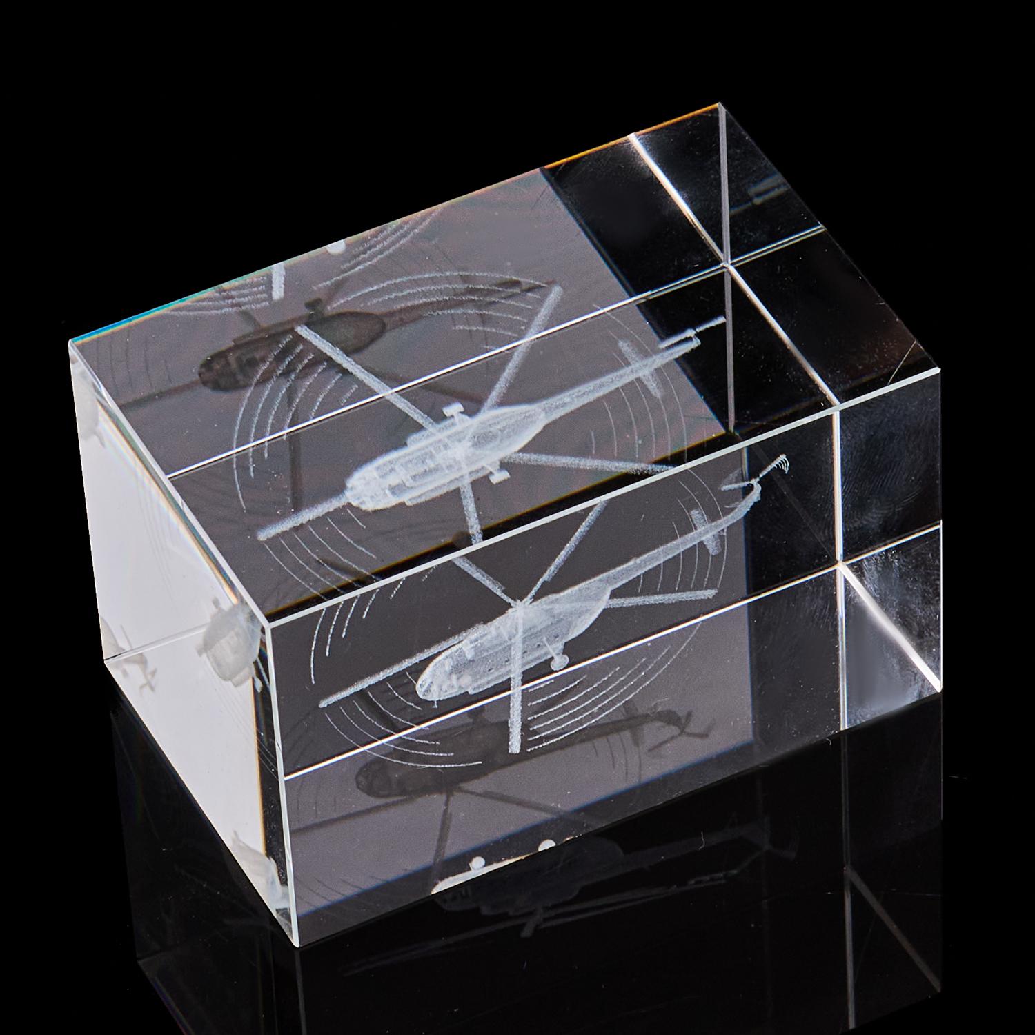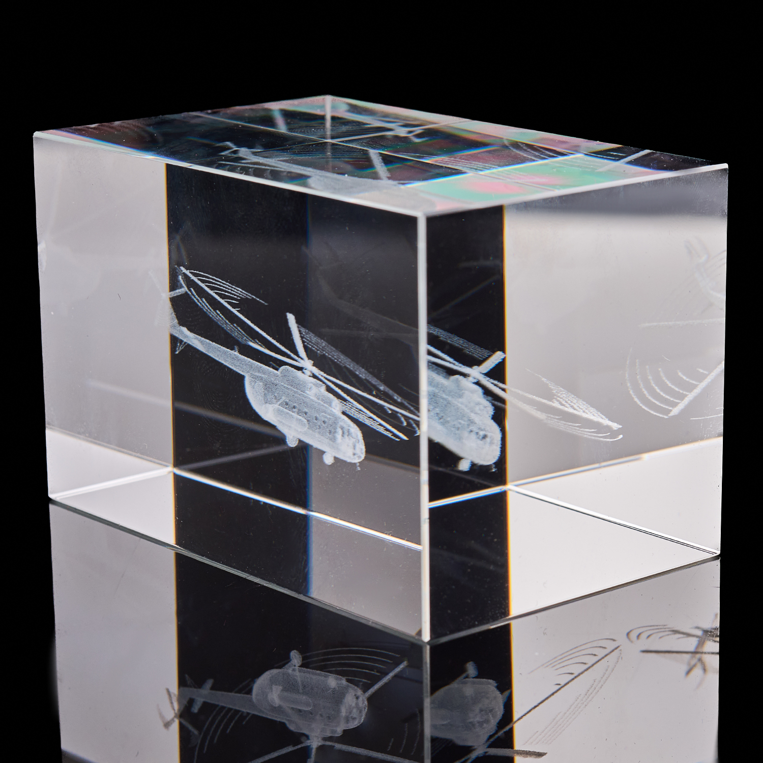 Лазерная графика. Куб "Вертолет многоцелевой".Материал: стекло.