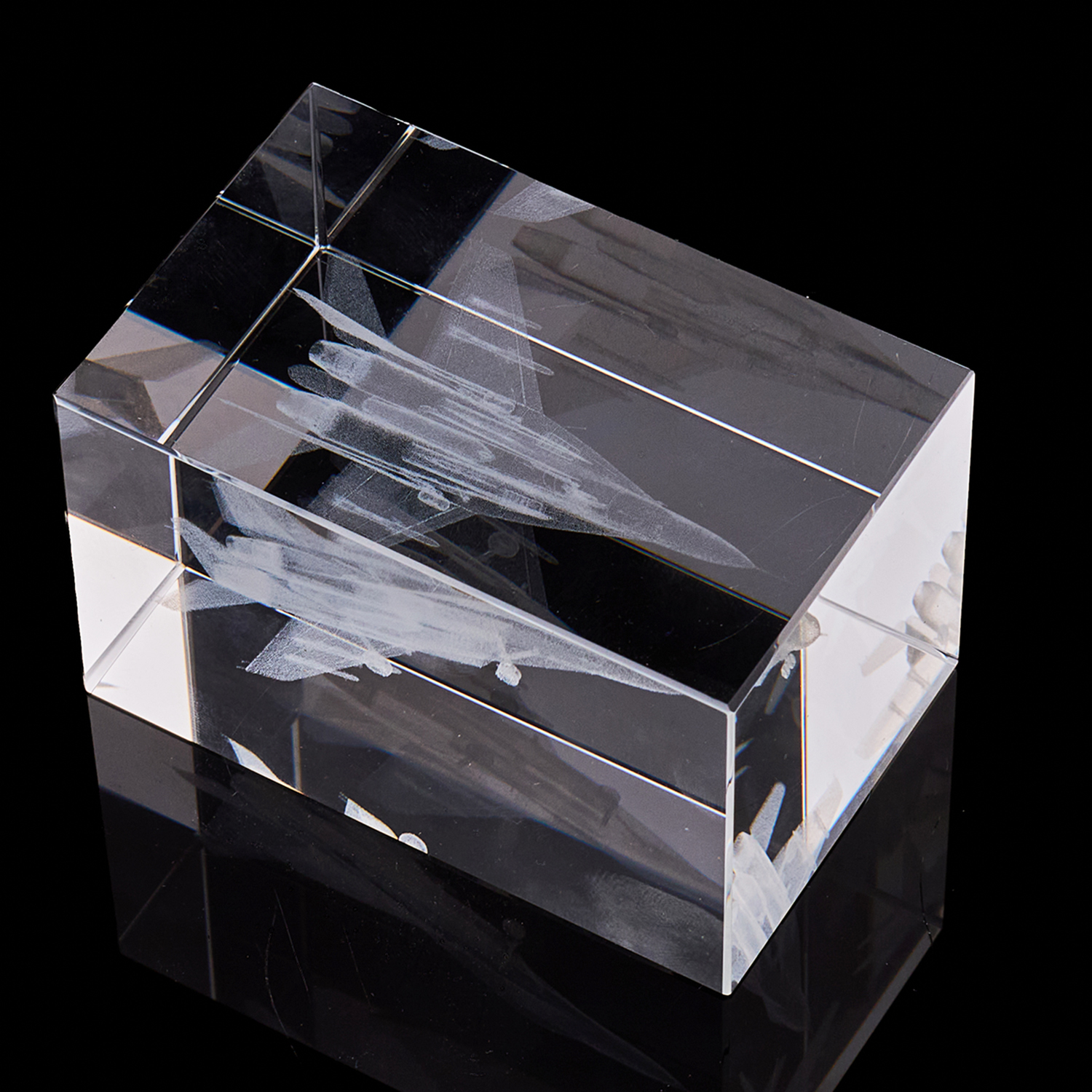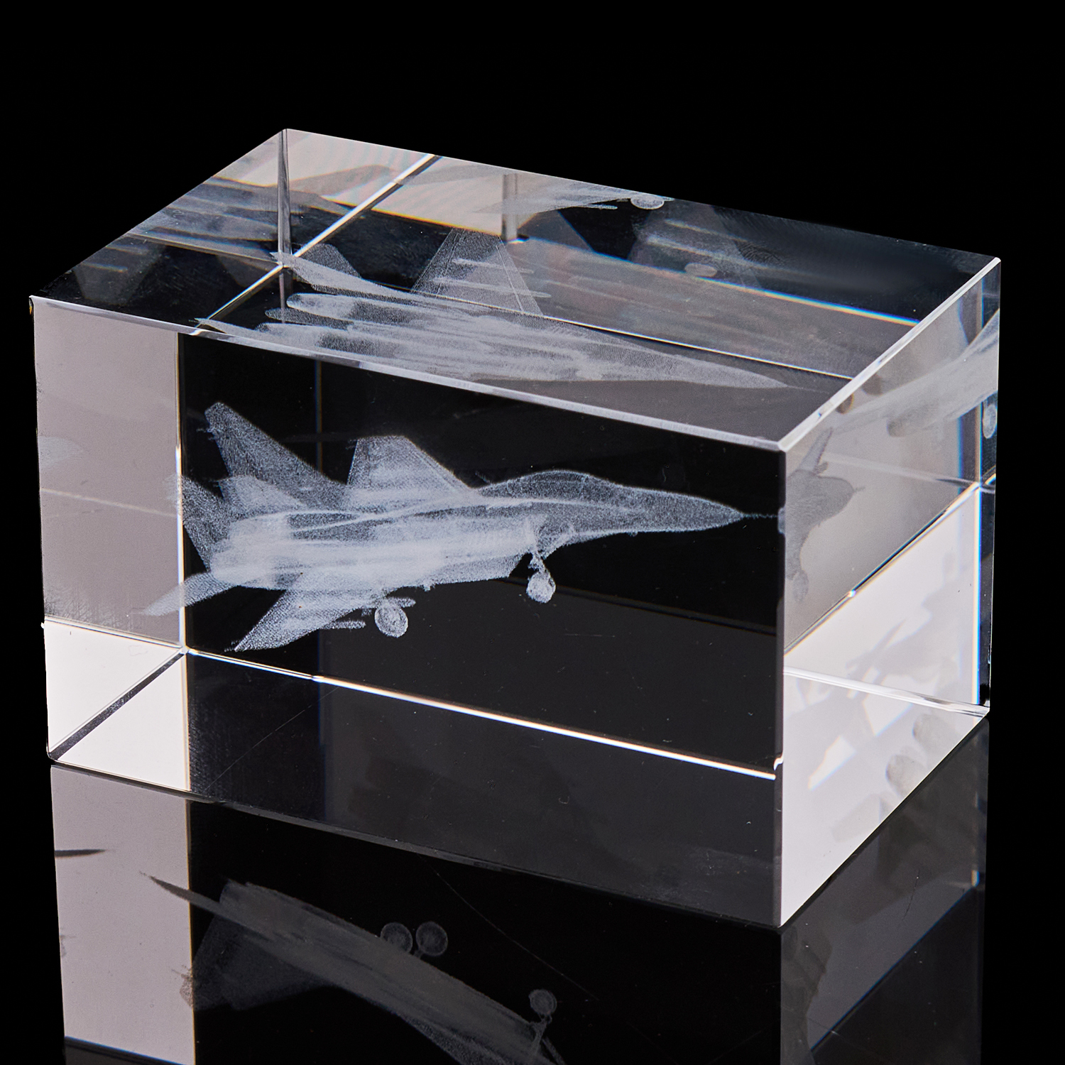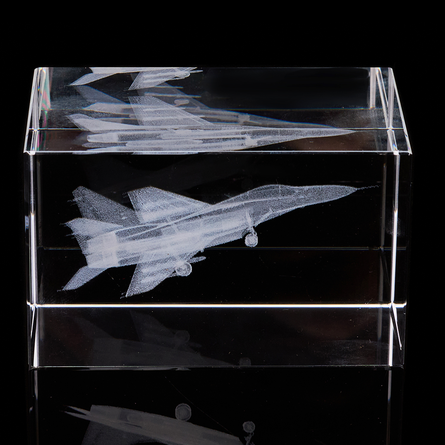 Лазерная графика. Куб "Самолет-истребитель".Материал: стекло.