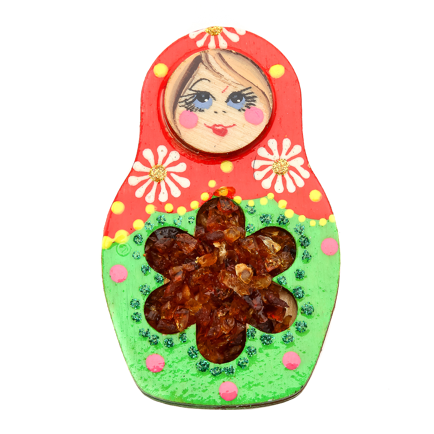 Магнит с янтарной вставкой "Матрешка"