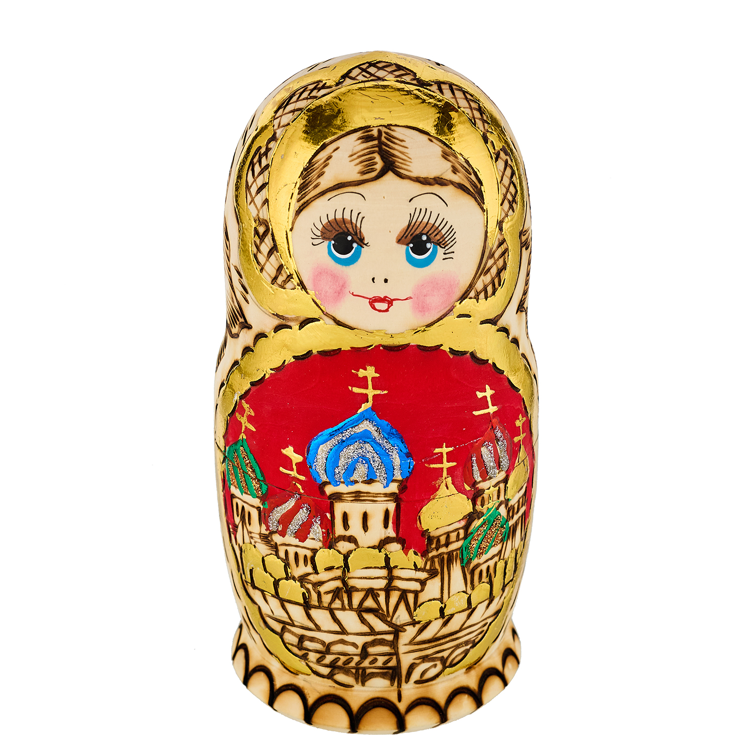 Матрешка с выжиганием "Храм Василия Блаженного" 5 мест