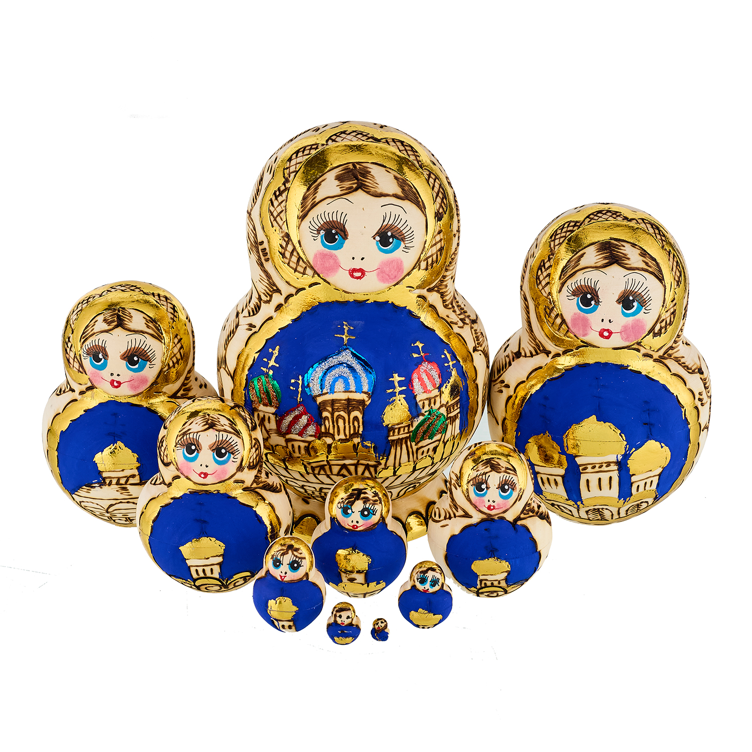 Матрешка с выжиганием "Храм Василия Блаженного" 10 мест