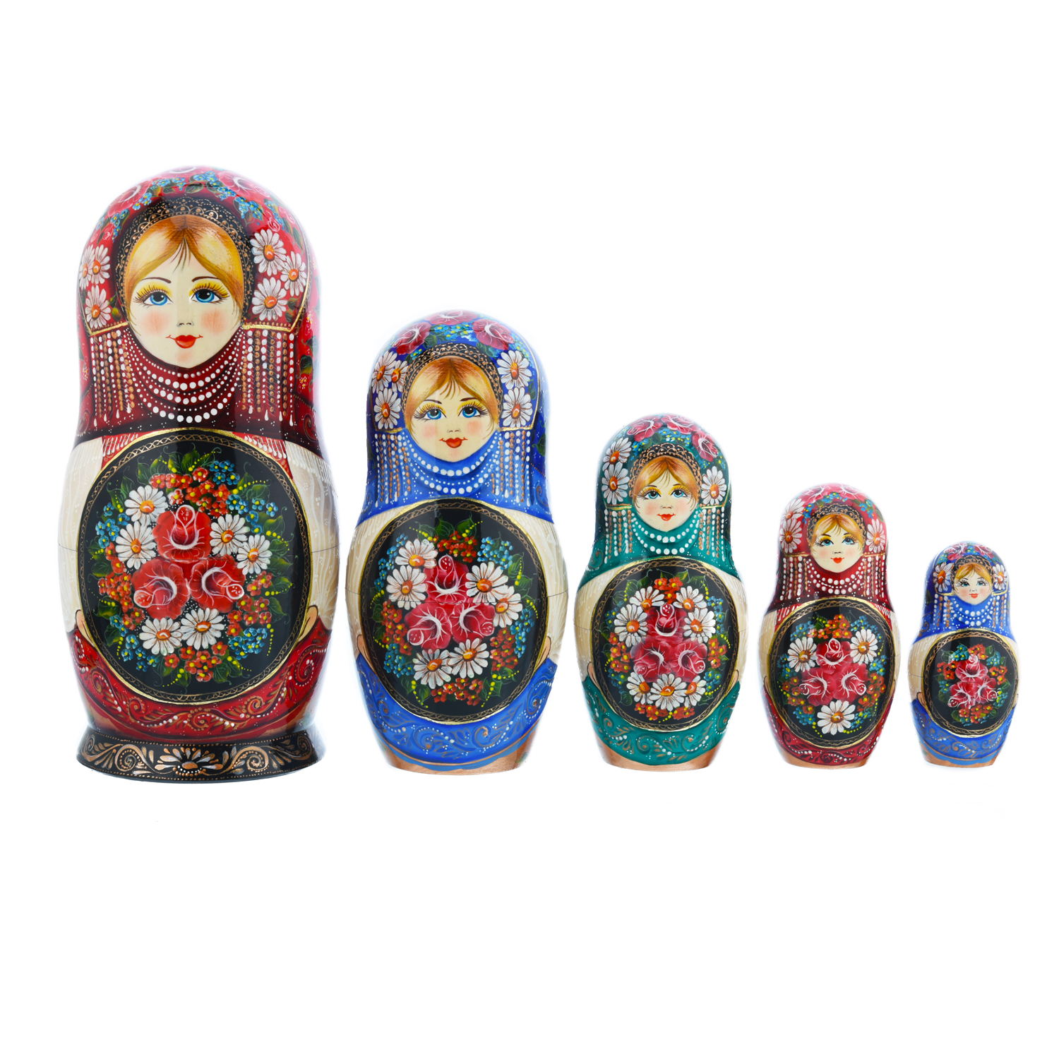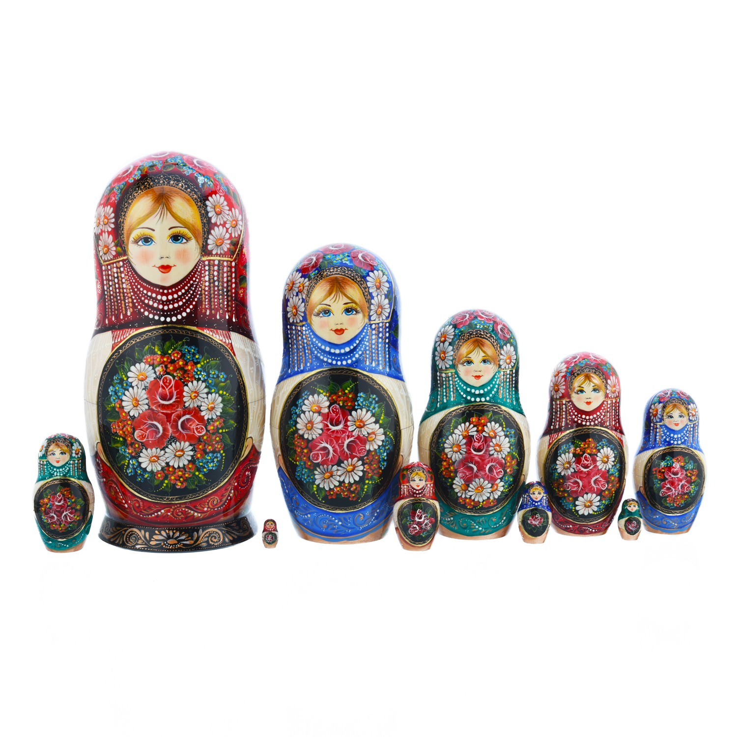 Матрешка "Цветы" 10 местМатериалы: дерево, краски, лак.