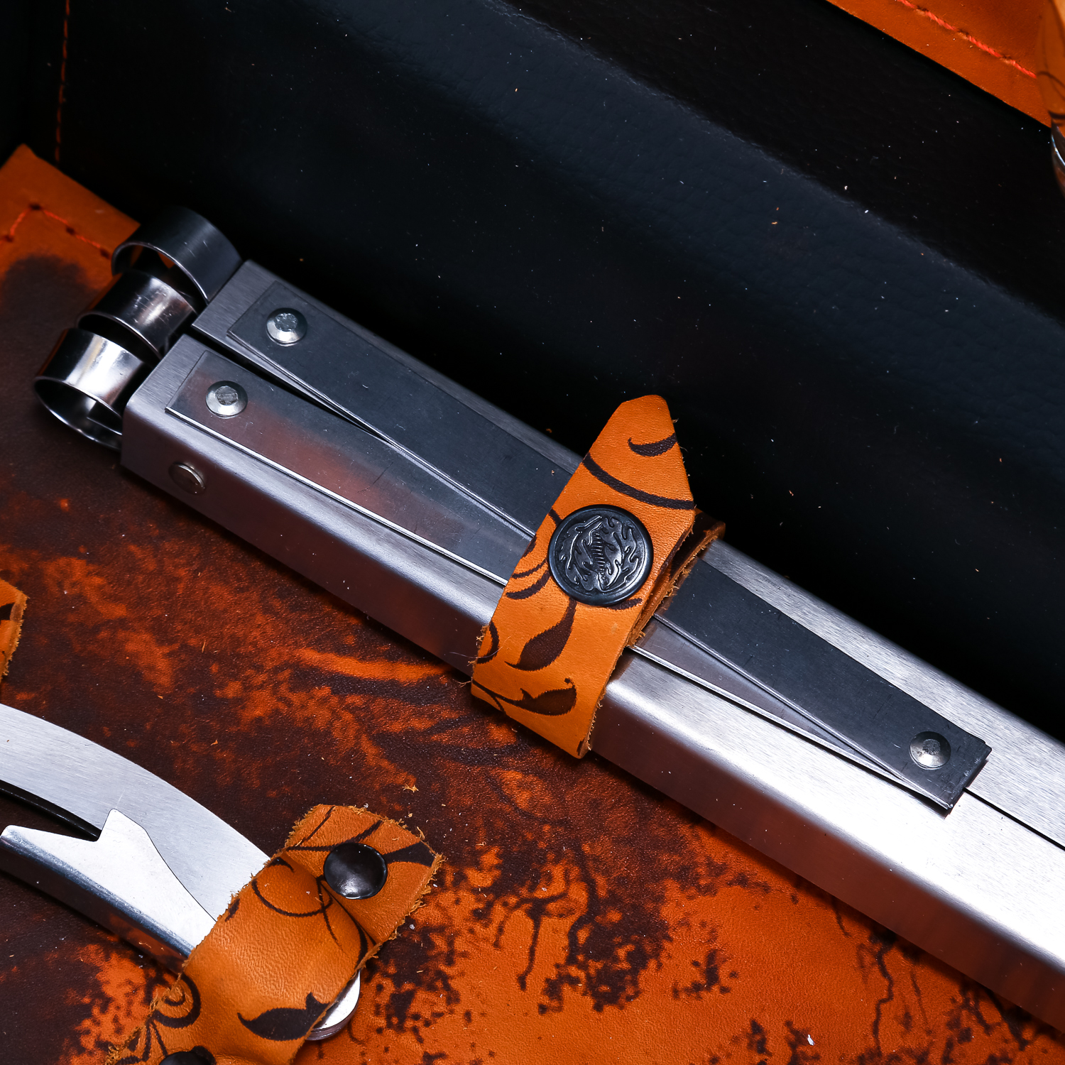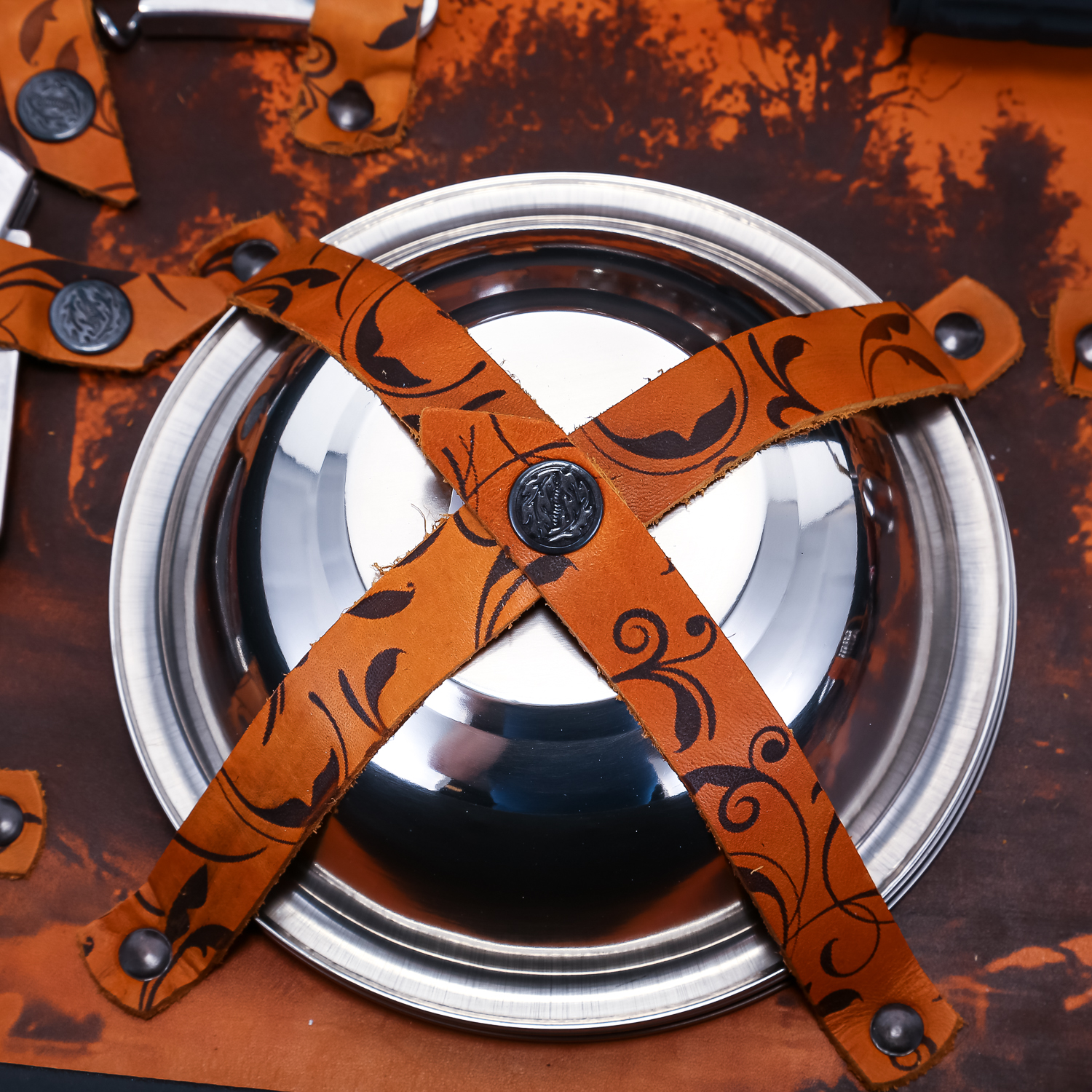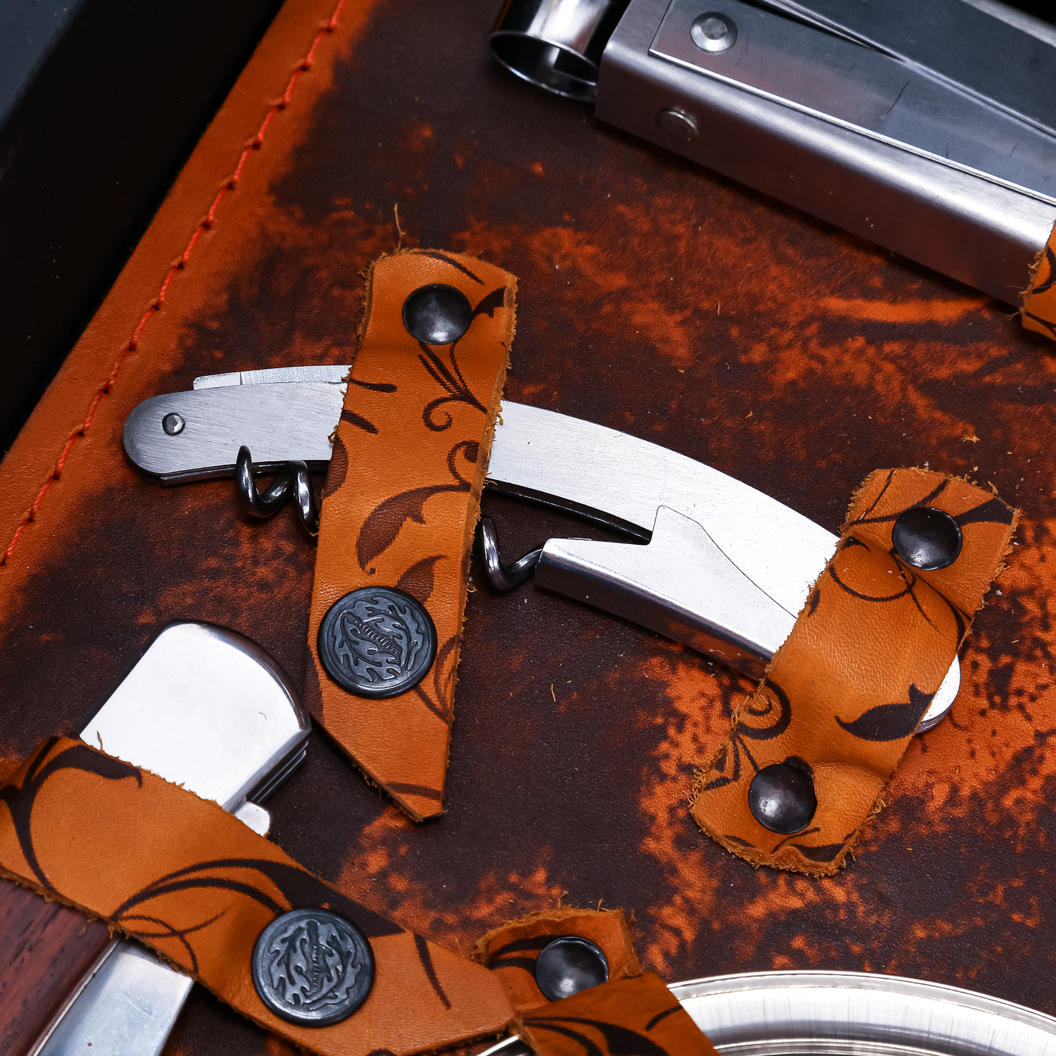 Материалы: кожа, нержавеющая сталь, дерево.