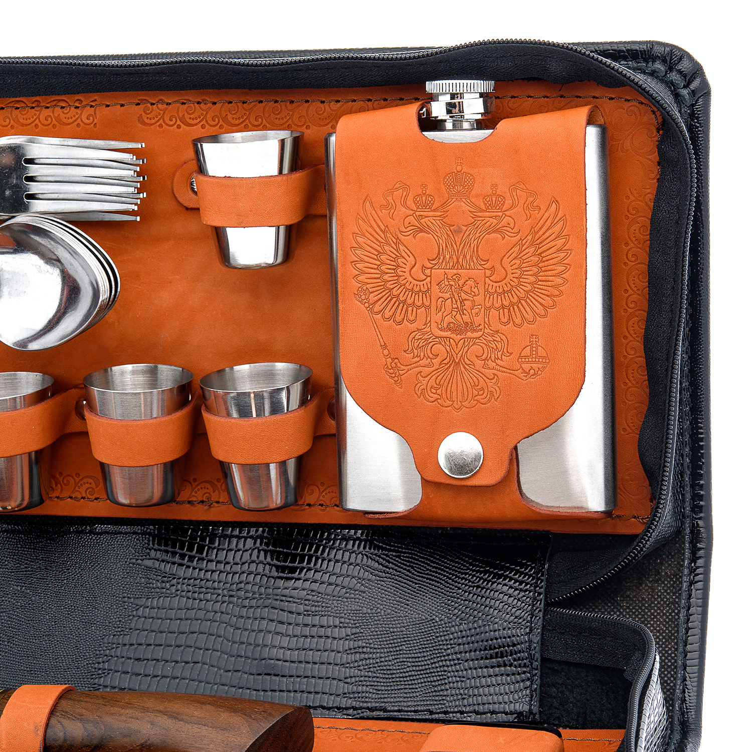 Набор для пикника "Несессер".Материалы: нержавеющая сталь, кожа.
