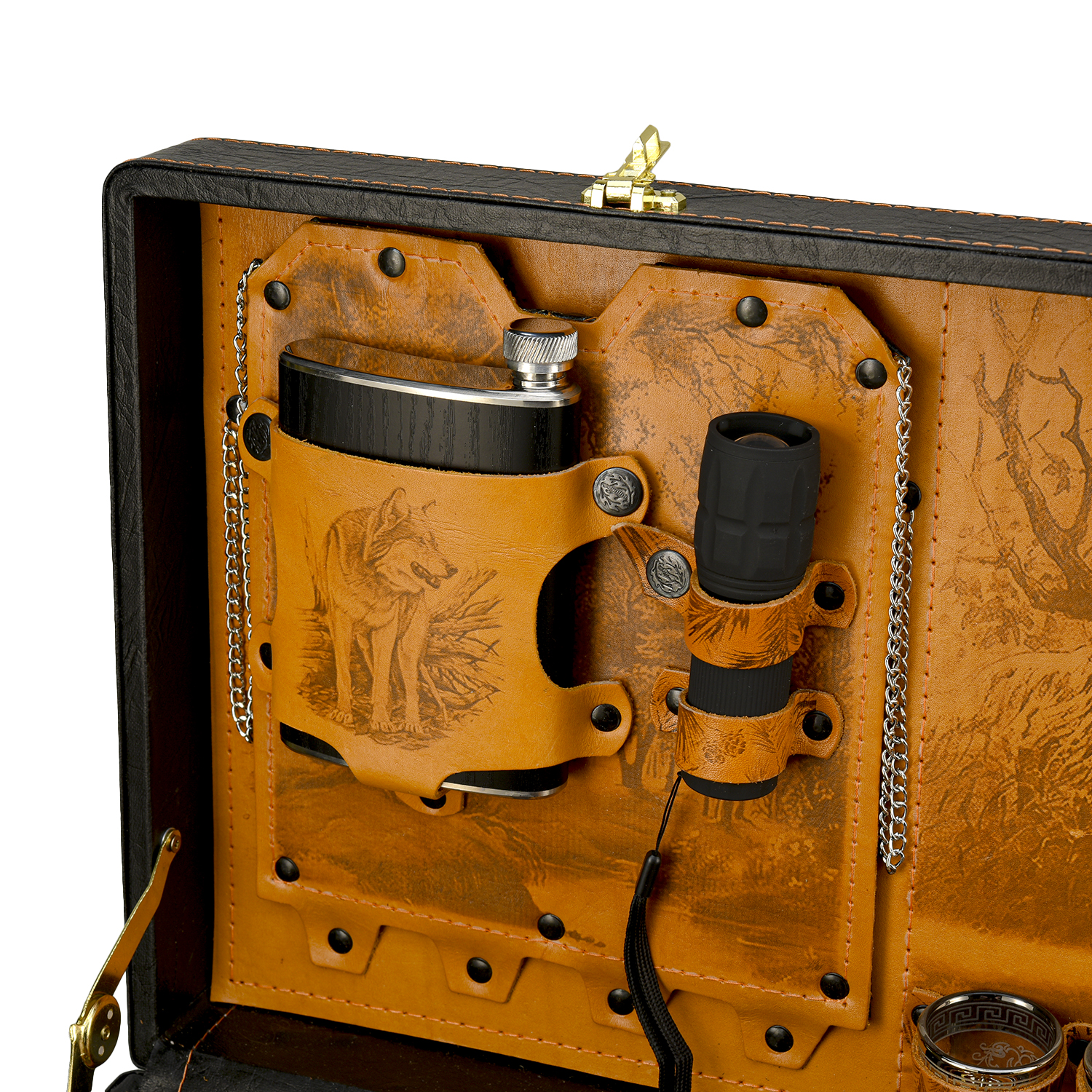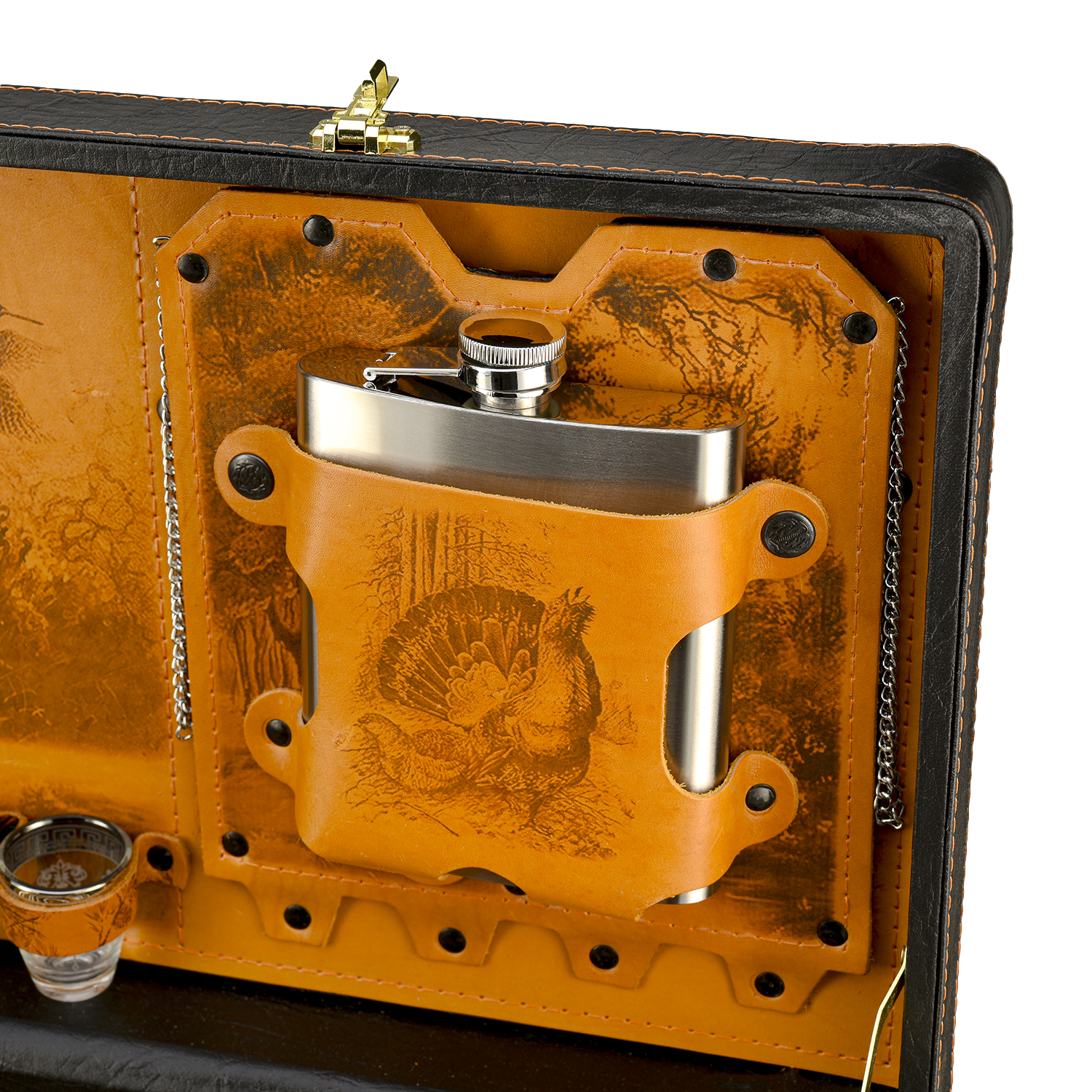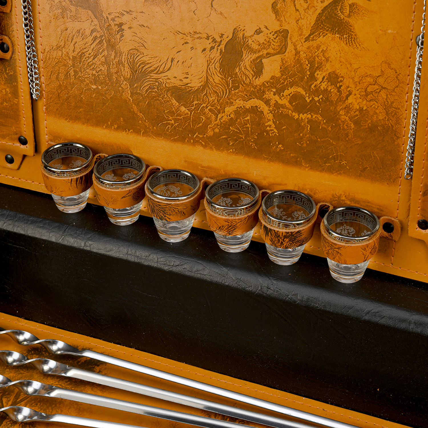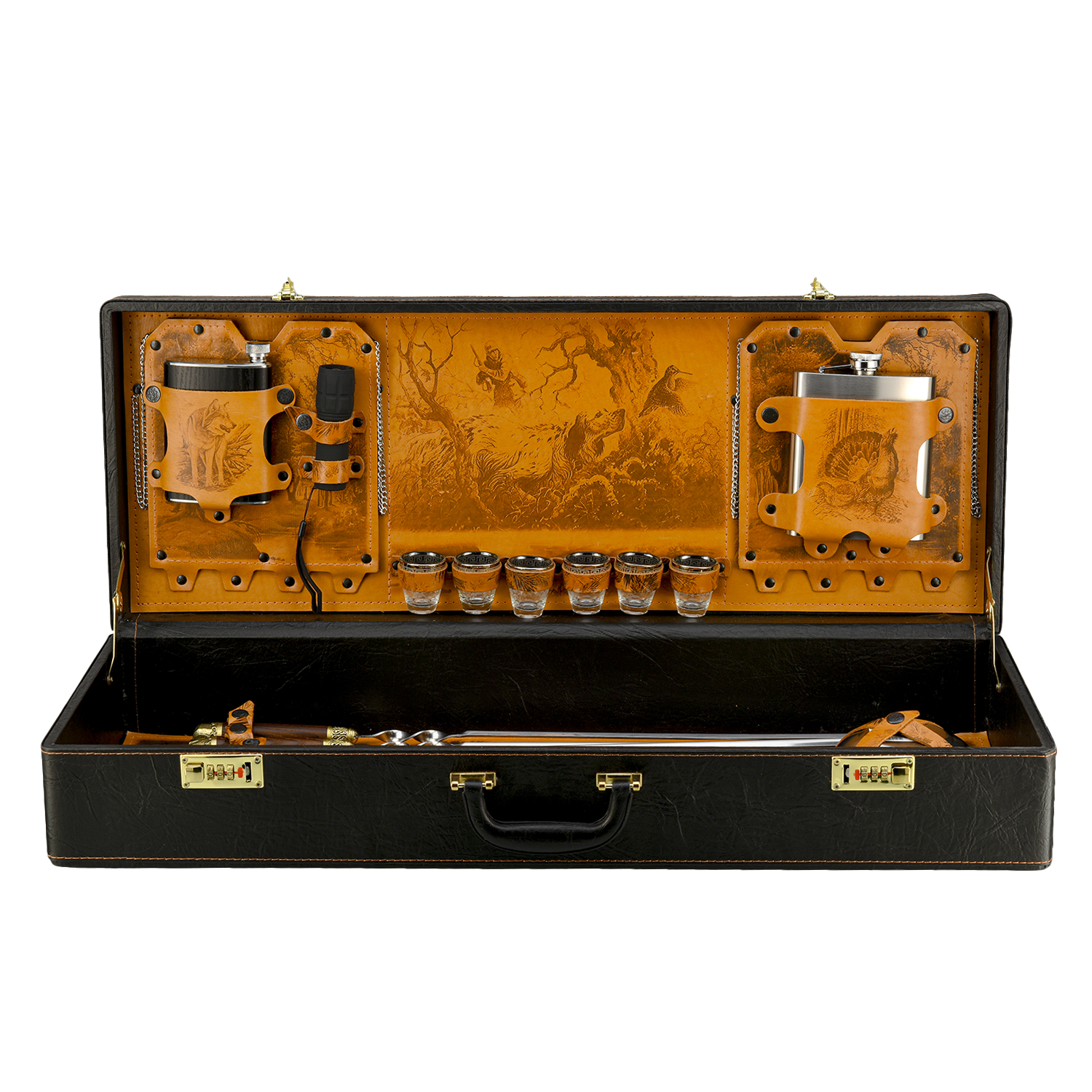 Набор для пикника "Подарочный".Материалы: нержавеющая сталь, дерево, бронза, кожа.
