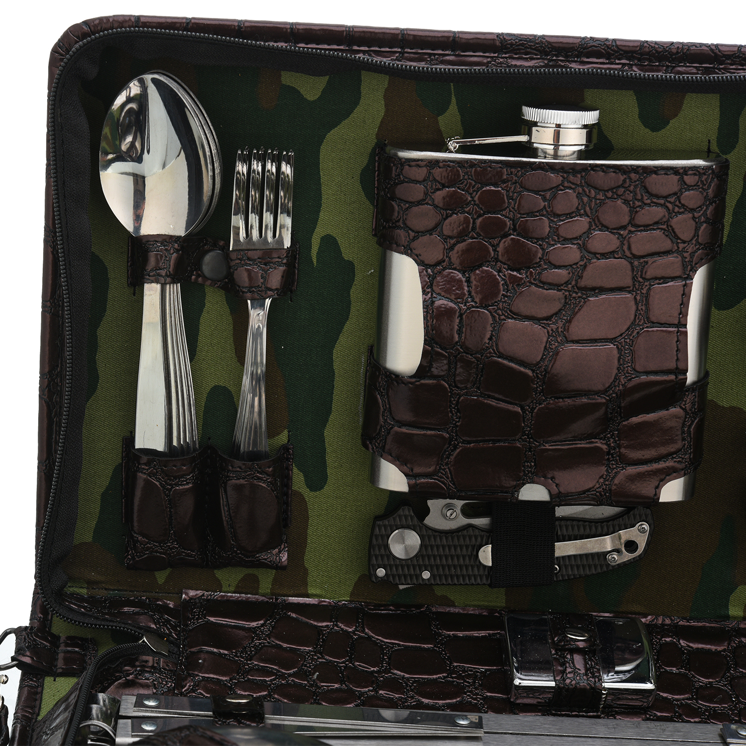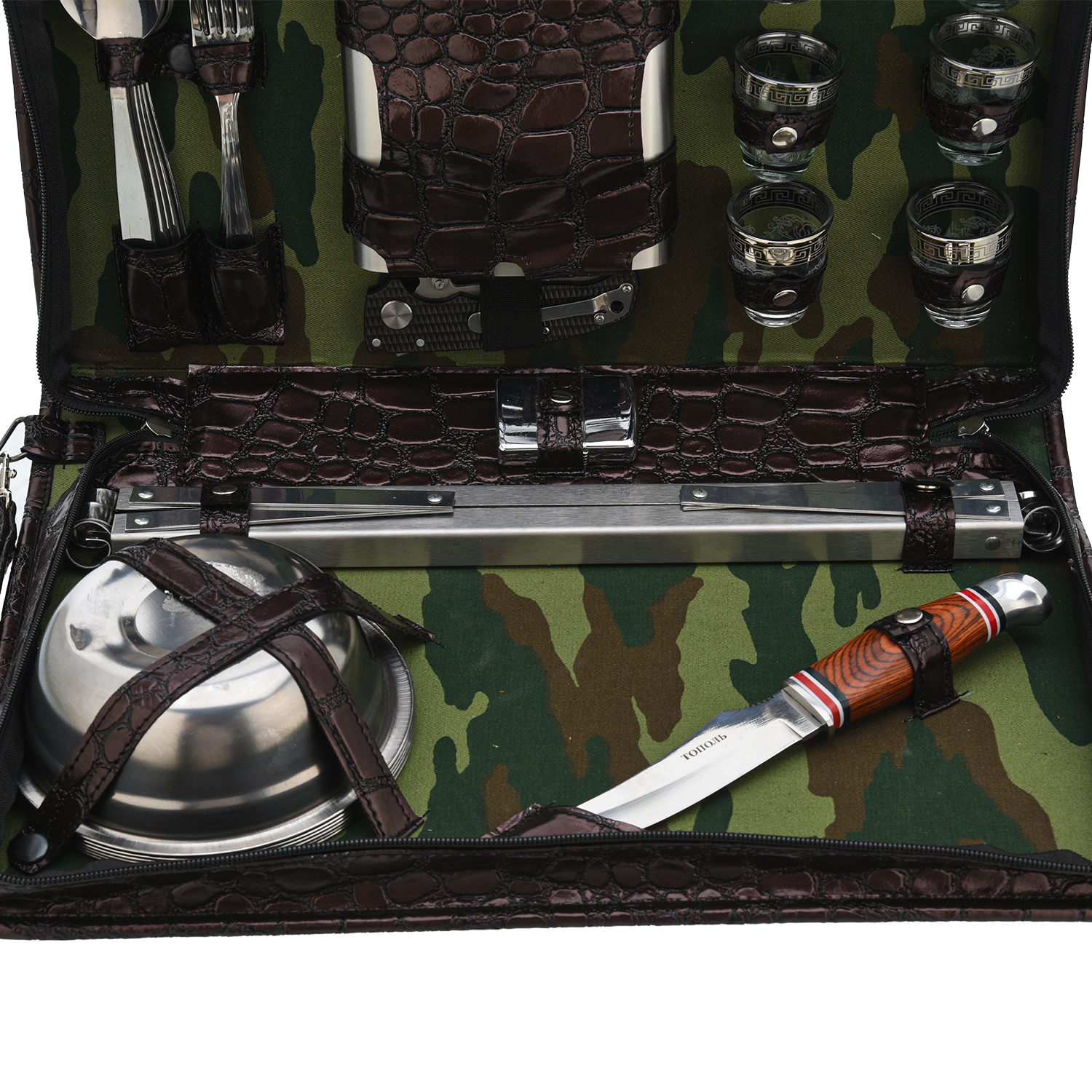 Набор для пикника "Шашлычный".Материалы: нержавеющая сталь, стекло, дерево, кожа.