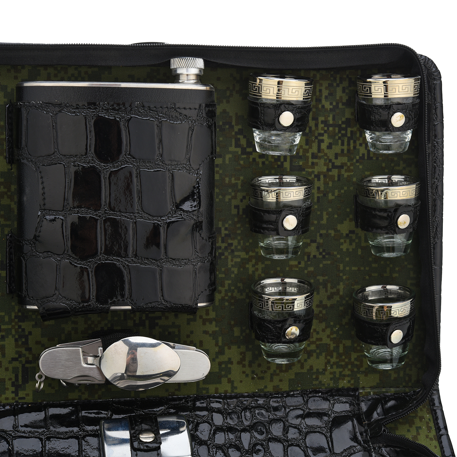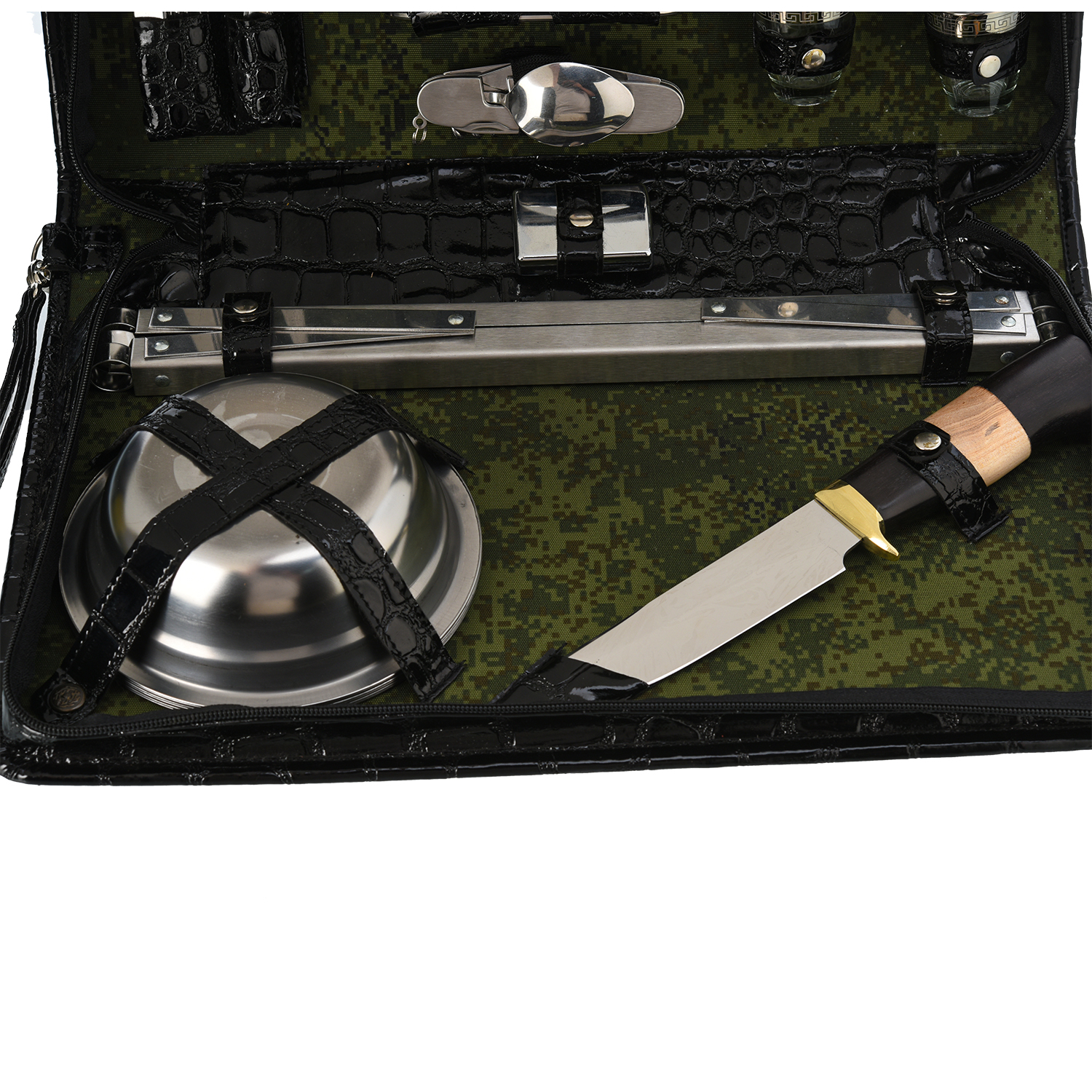 Набор для пикника "Шашлычный".Материалы: нержавеющая сталь, стекло, дерево, кожа.