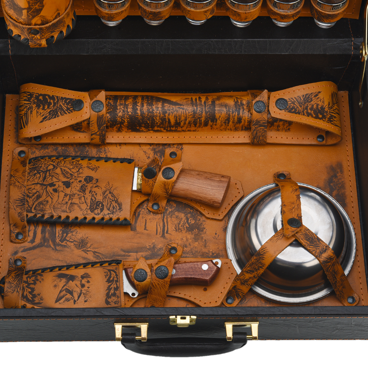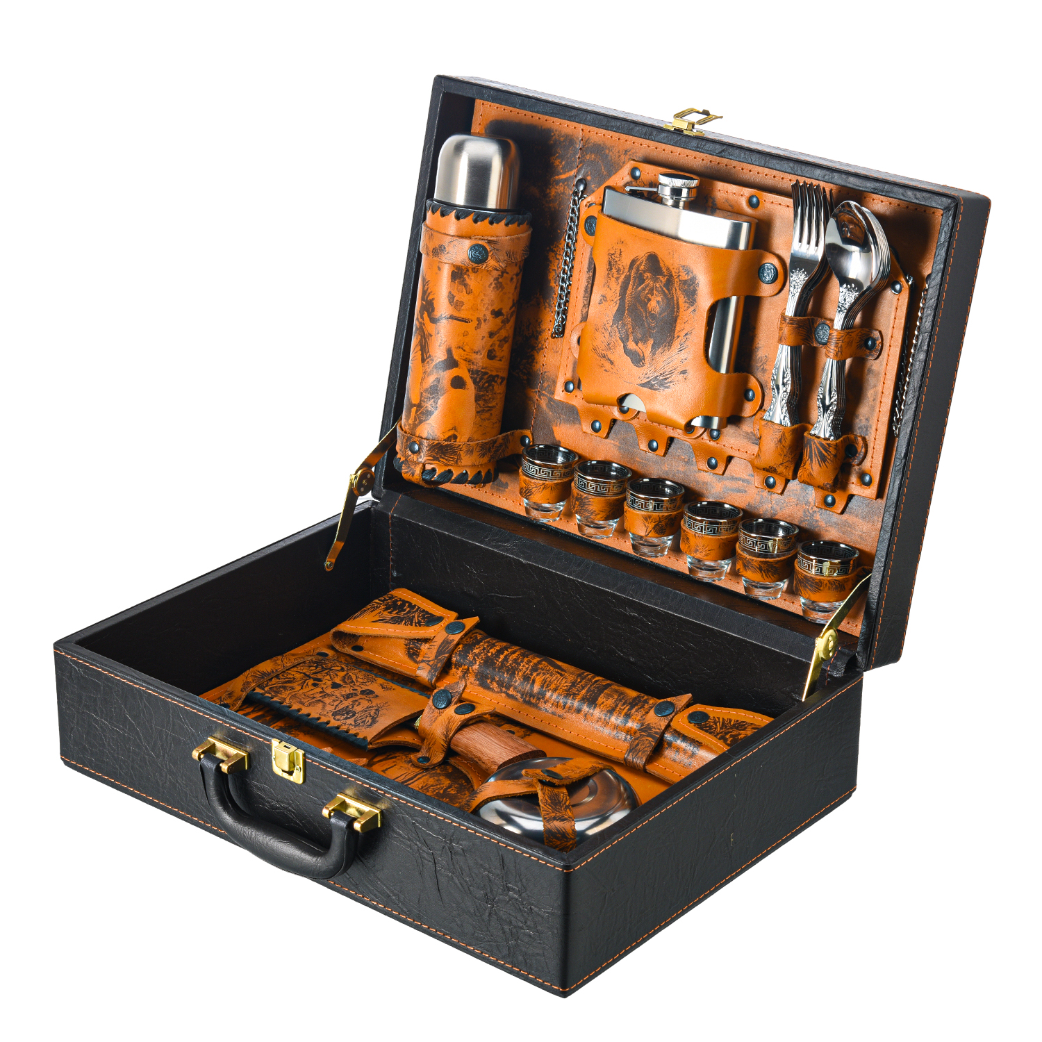 Набор для пикника "Подарочный".Материалы: нержавеющая сталь, дерево, кожа.