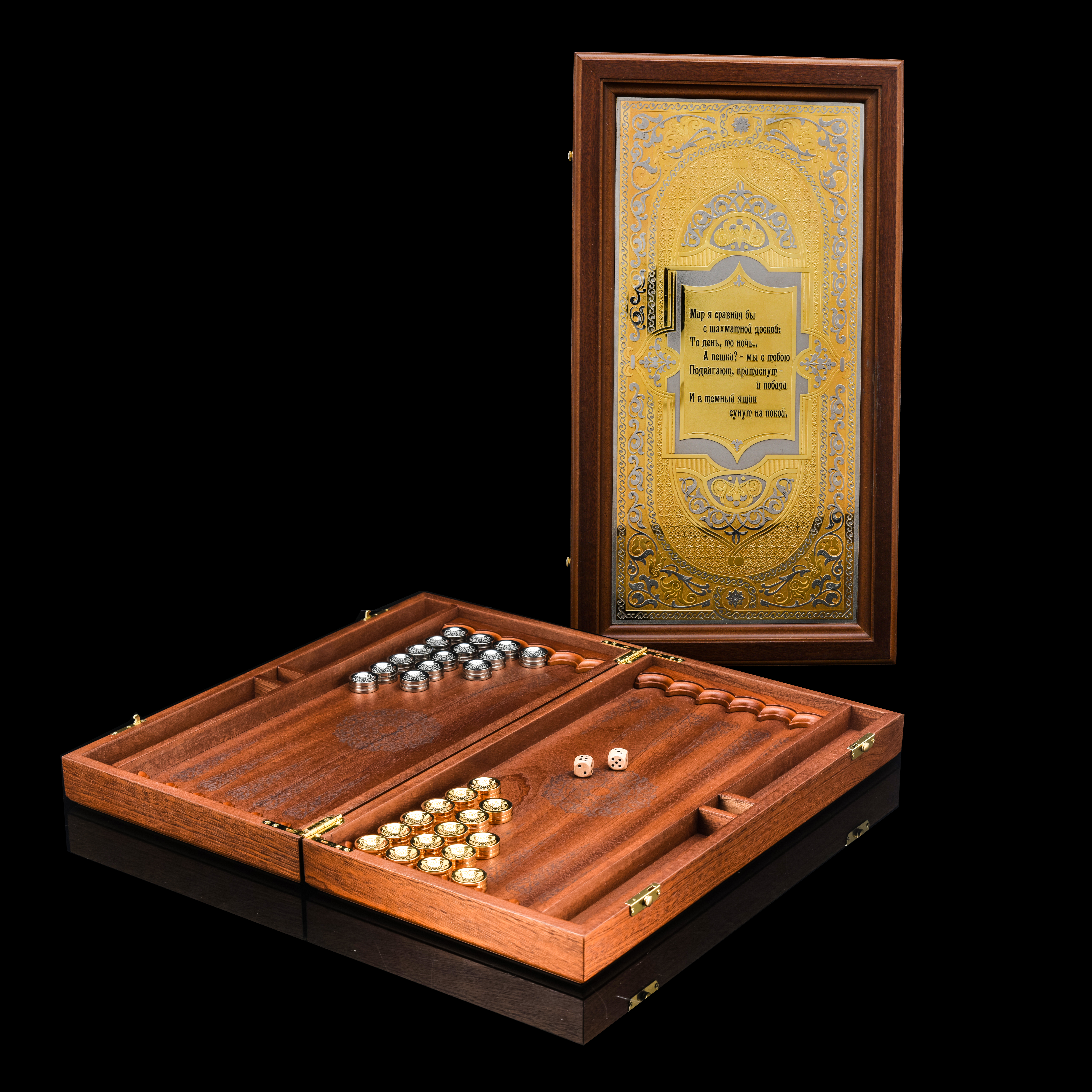 0054647 Златоуст Нарды"МИР Я СРАВНИЛ БЫ,,," позолота, 440*420*80 мм .