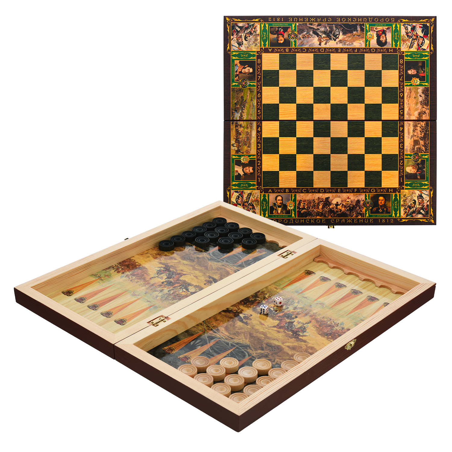Шахматы-нарды-шашки деревянные "Бородино" 50х25 см