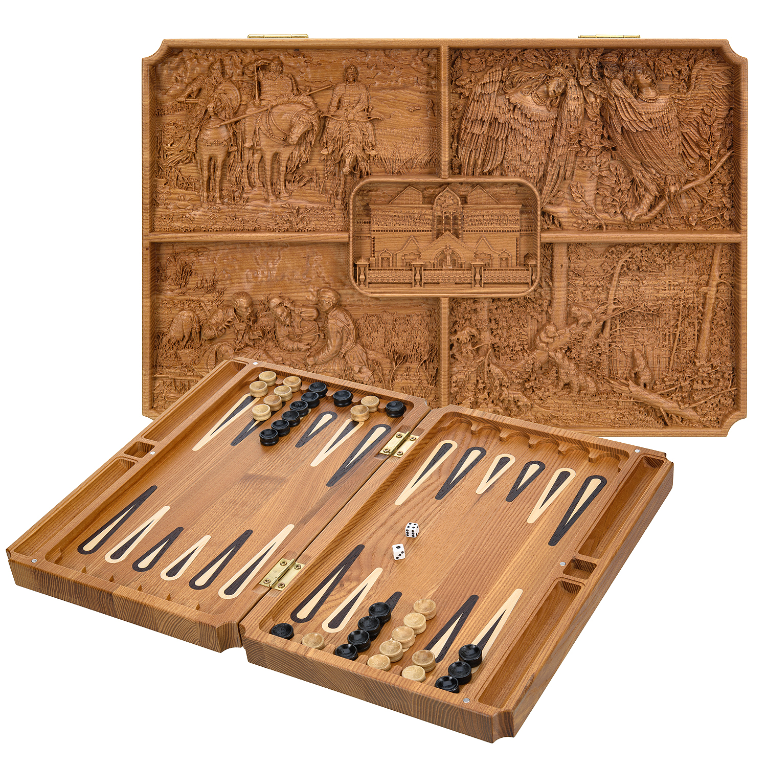 Деревянные резные нарды "Искусство".Материал: массив мореного ясеня.