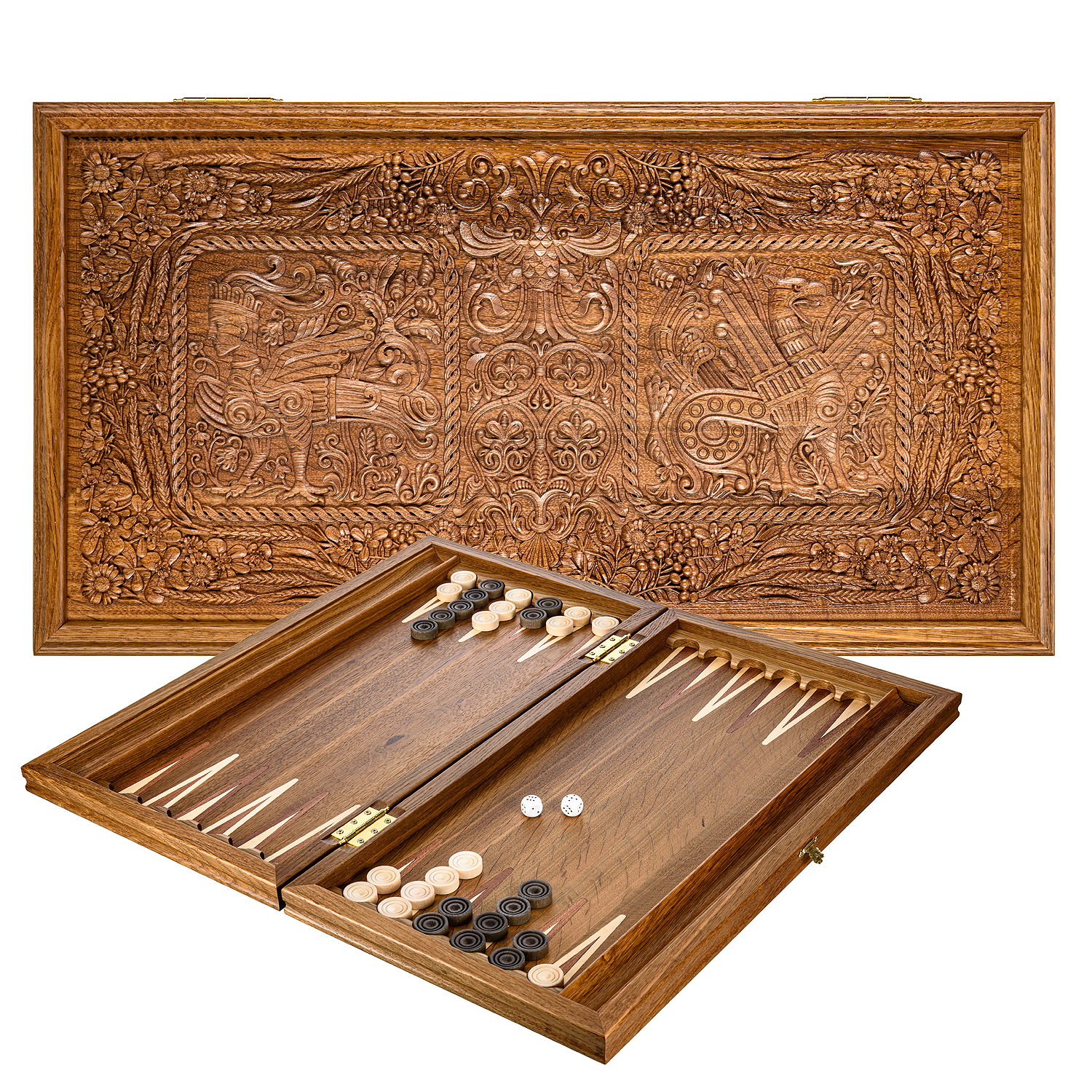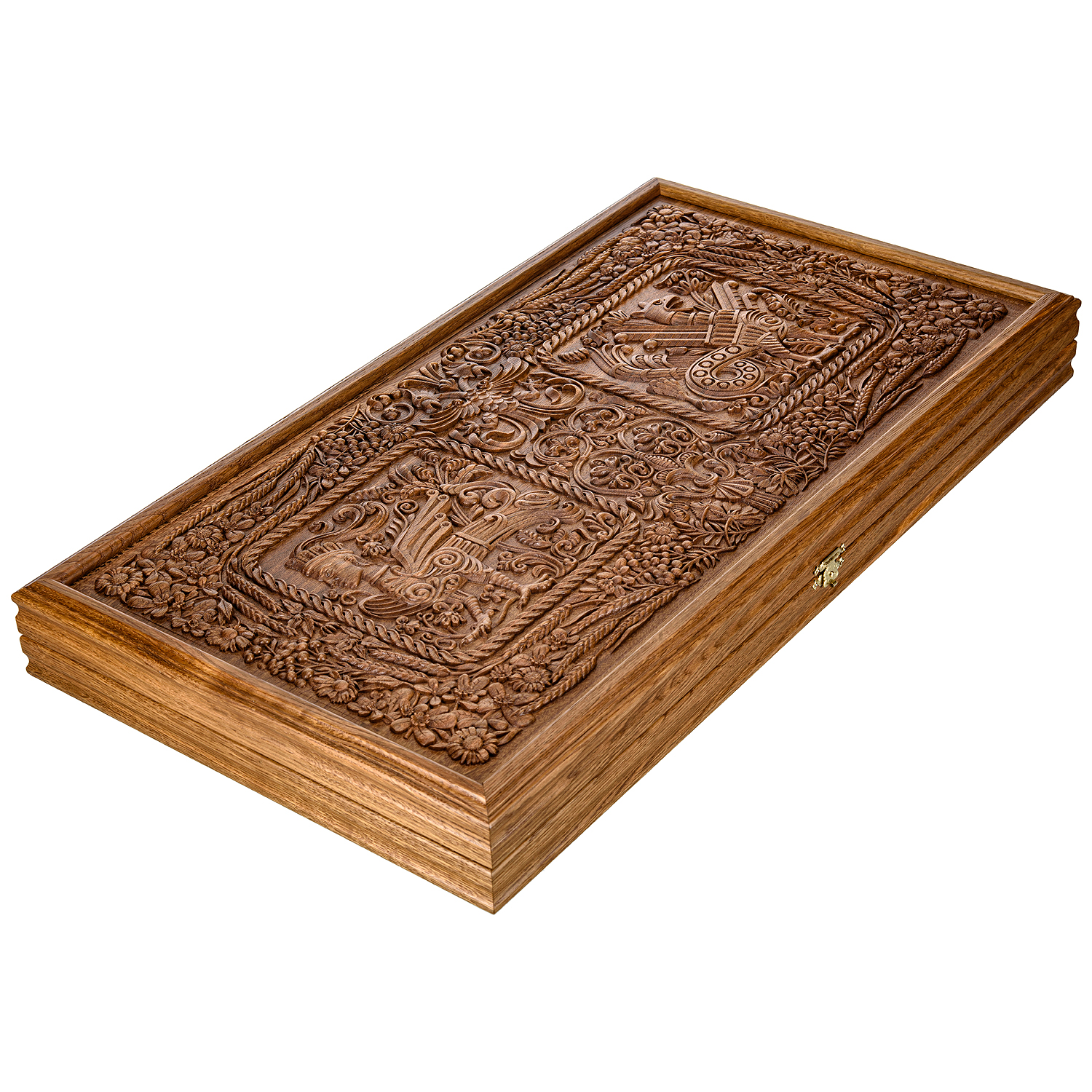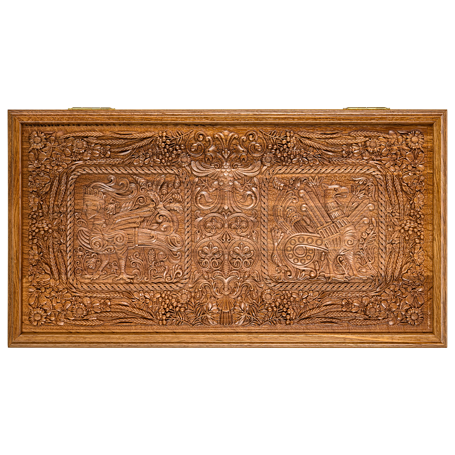 Нарды из массива черного дуба "Гарпия и василиск" 58х31 см