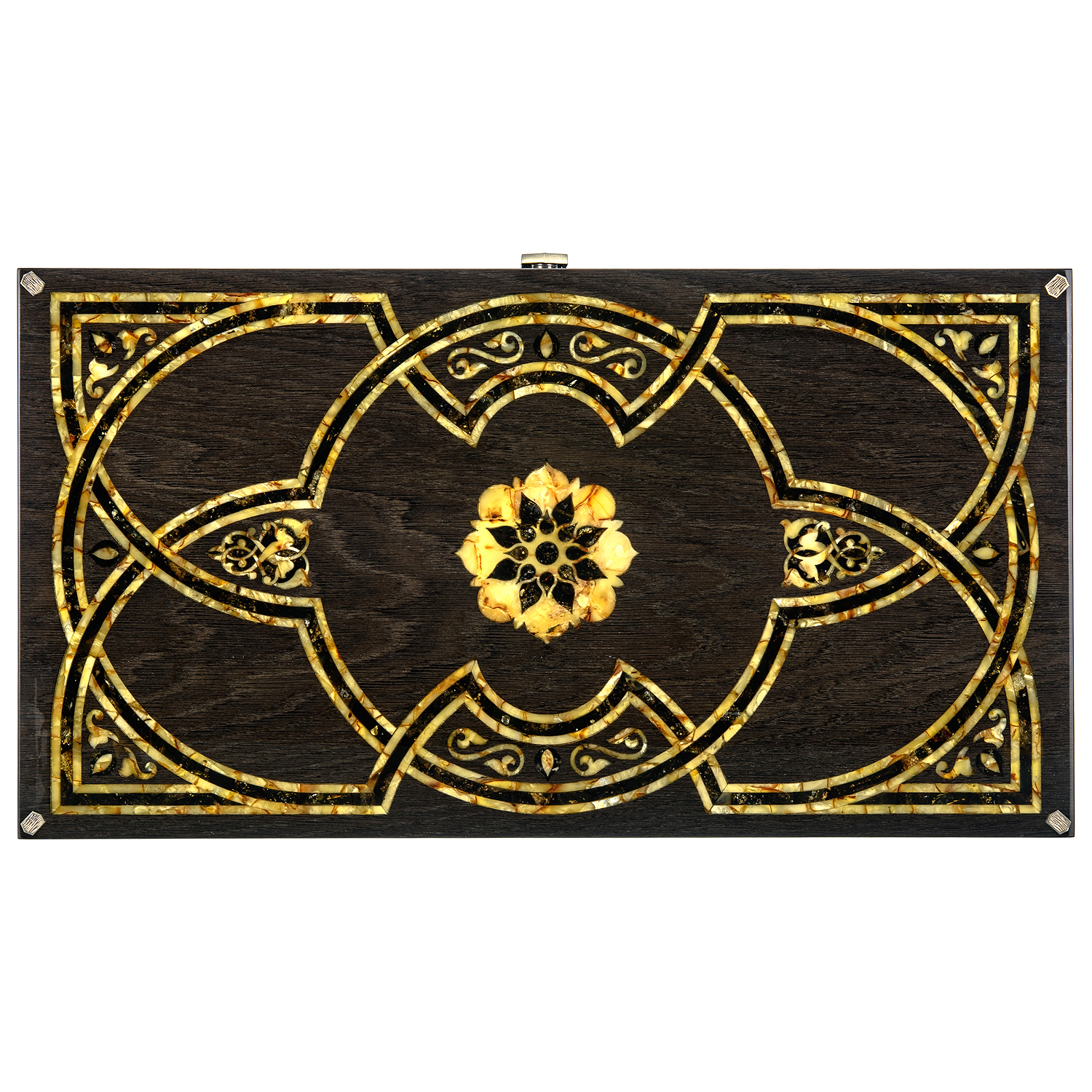 Изысканный дизайн, высокое качество материала и кропотливая ручная работа делают каждую деталь этих нард настоящим произведением искусства. Янтарные нарды от МПФ Емельянов - это не просто настольная игра, это настоящее произведение искусства, которое добавит изюминку в вашу коллекцию настольных игр. Удивите себя или близкого человека стильным и оригинальным подарком - янтарные нарды от МПФ Емельянов из Калининграда. Погрузитесь в мир удовольствия и красоты вместе с нами! Нарды янтарные "Арабские ночи".Материалы: мореный дуб, янтарь.