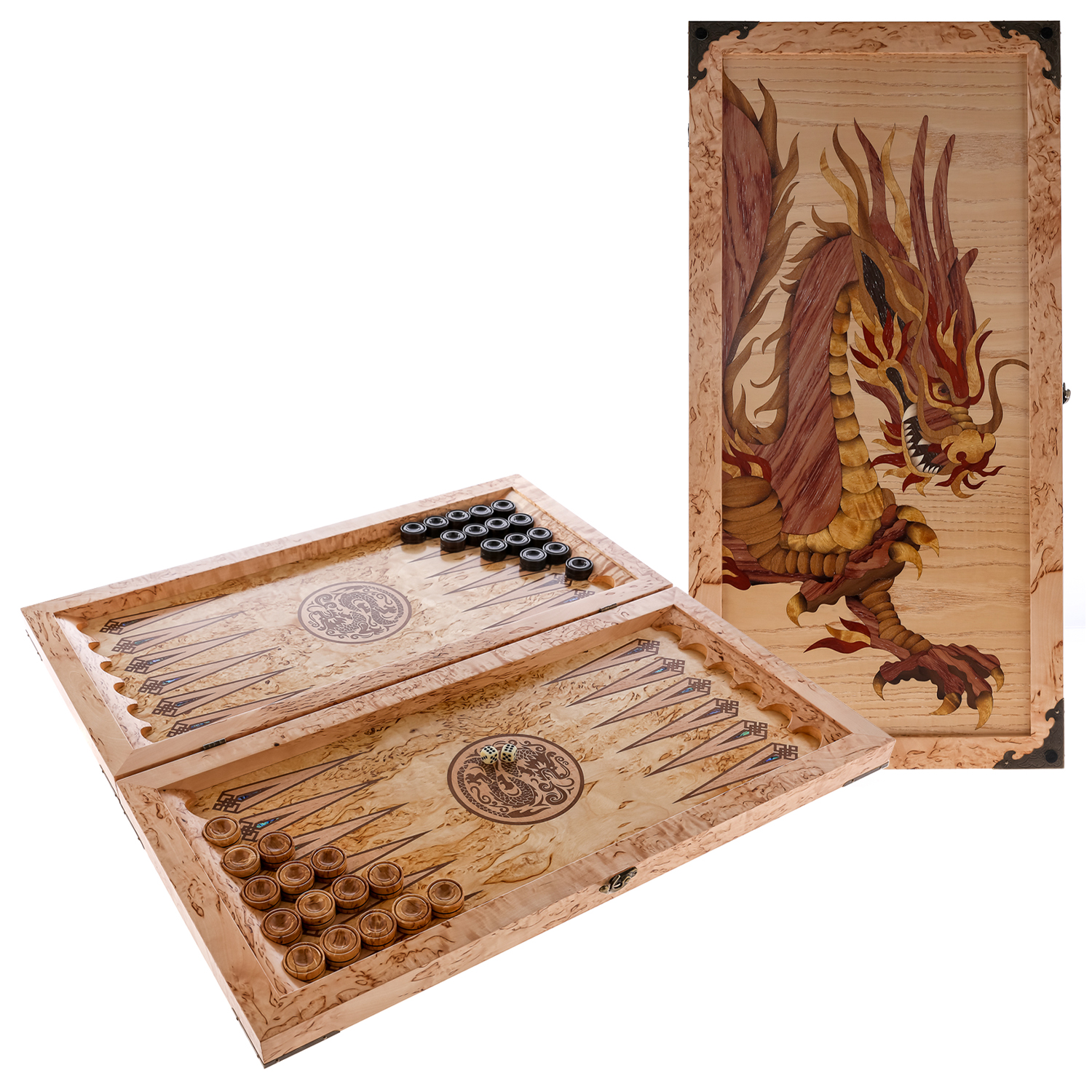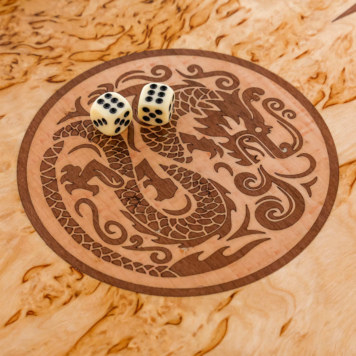 Нарды из карельской березы "Дракон" 60х30 см