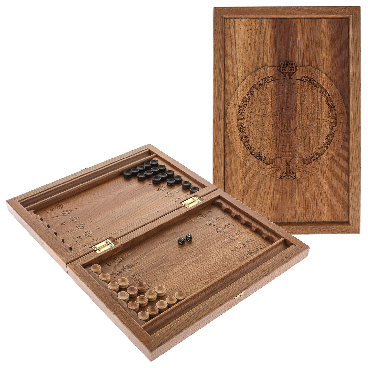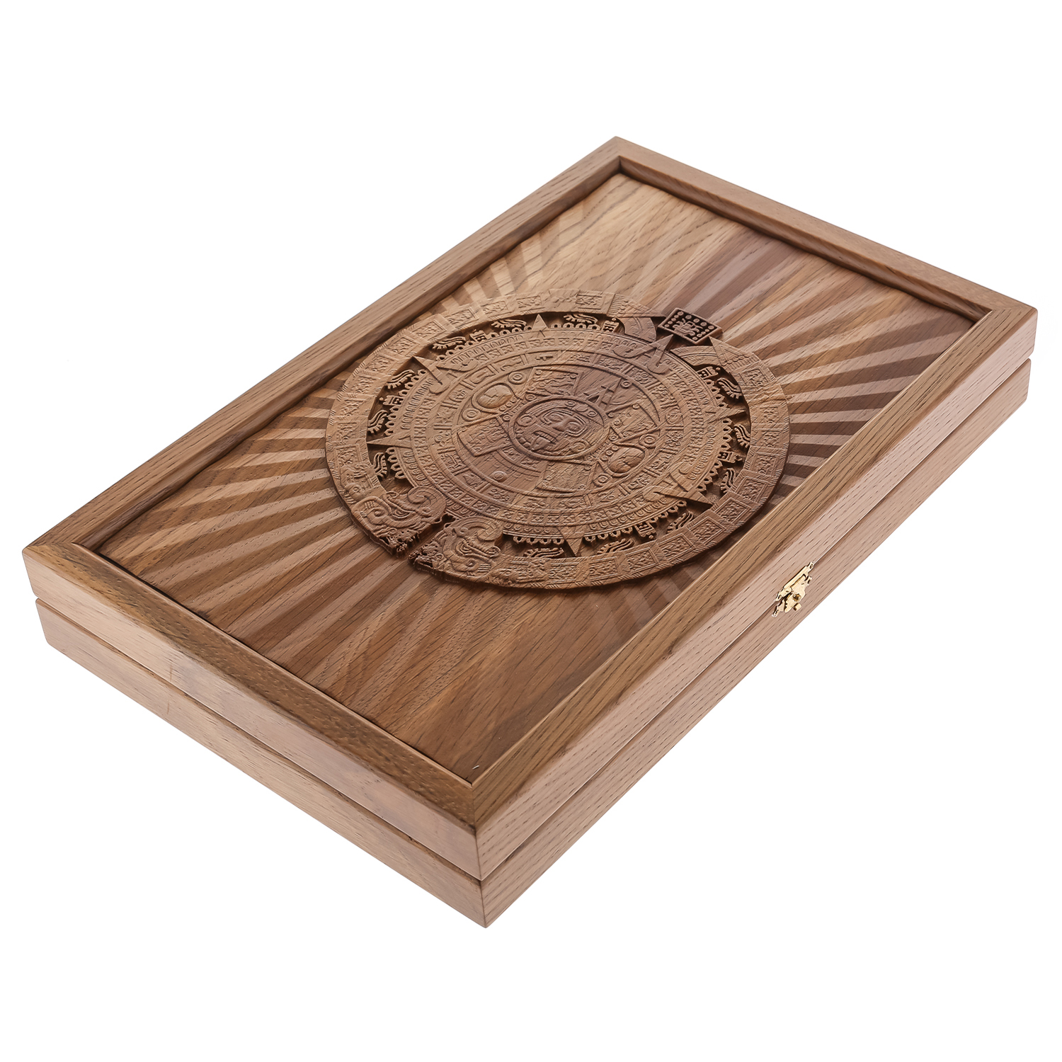 Нарды деревянные "Календарь Майя".Материал: массив черного дуба.