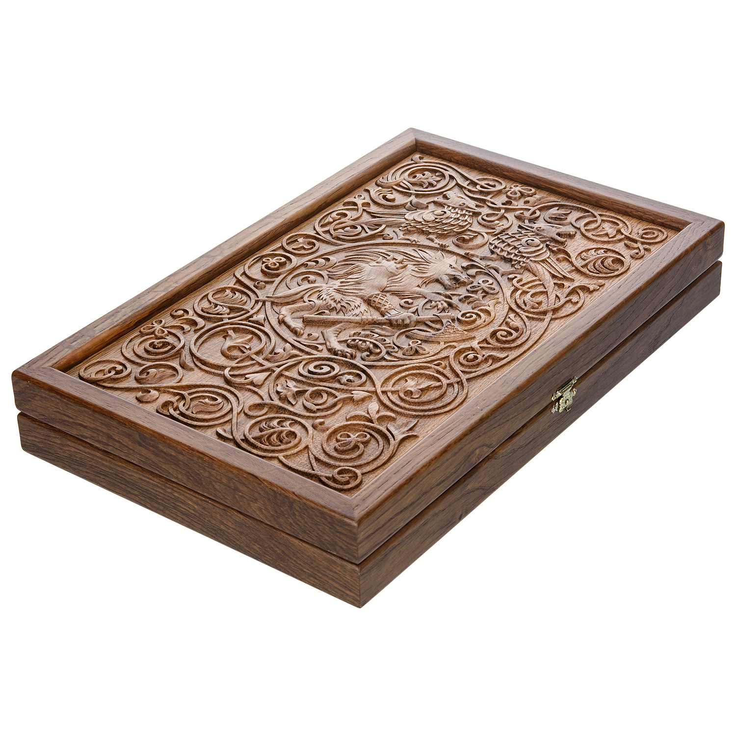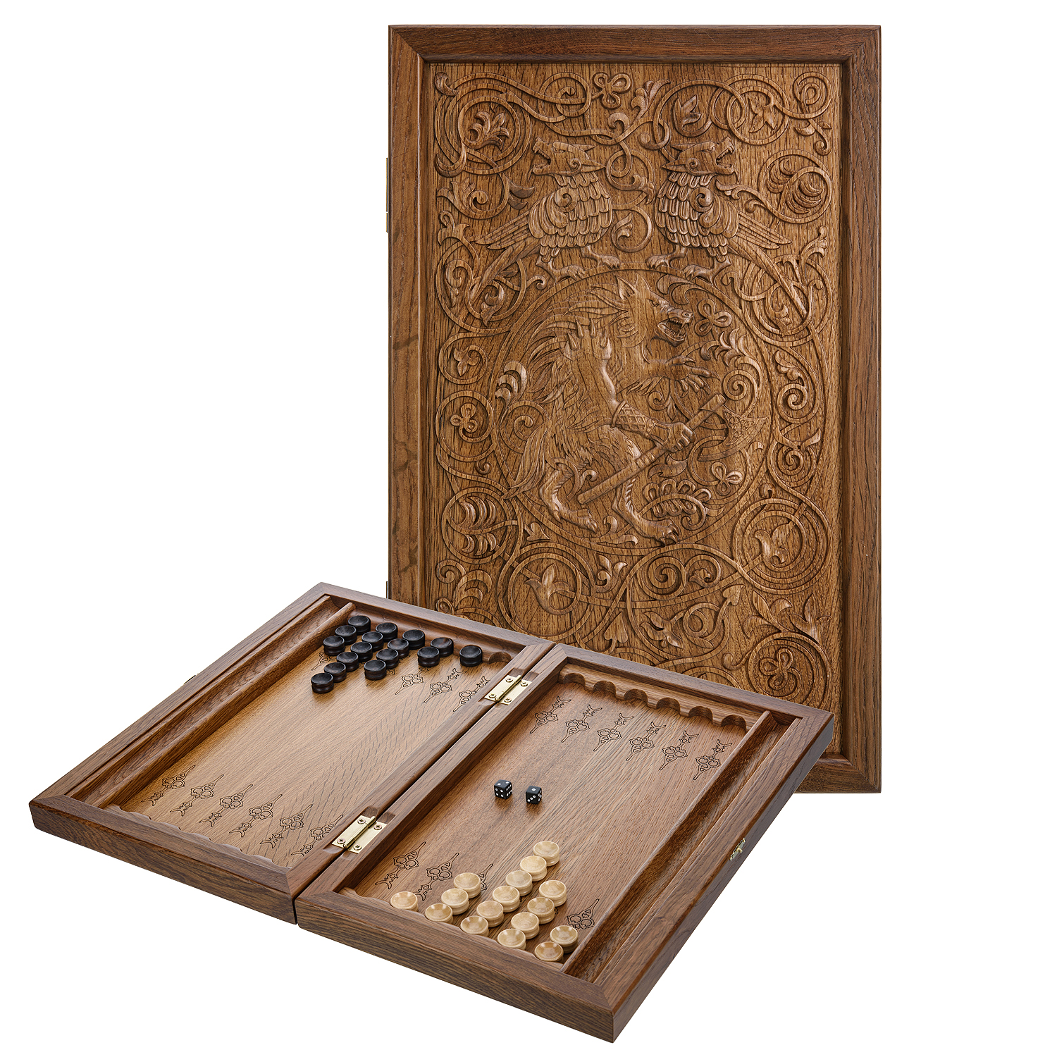 Нарды-шашки деревянные "Волкодлак".Материалы: массив черного дуба.