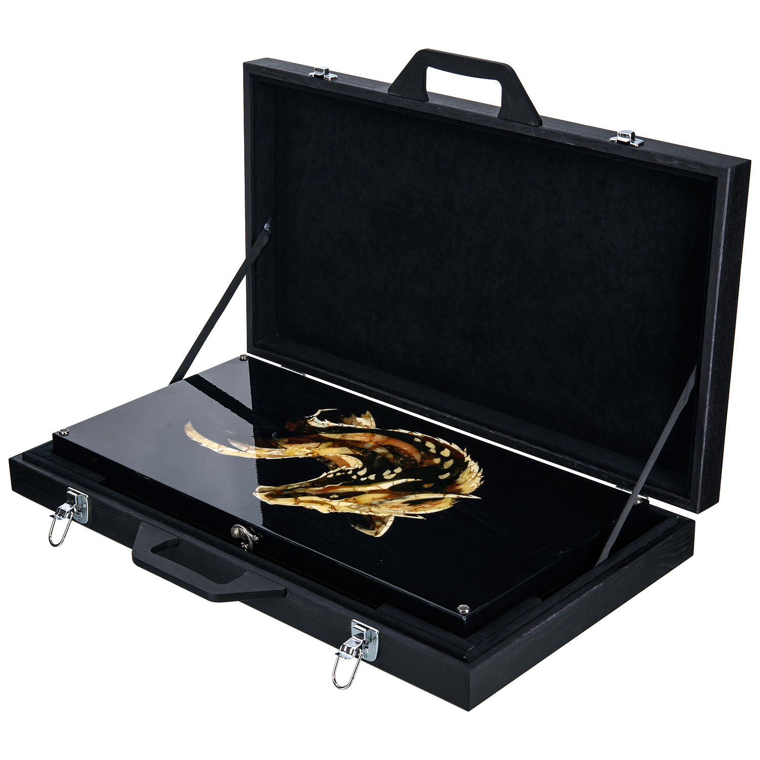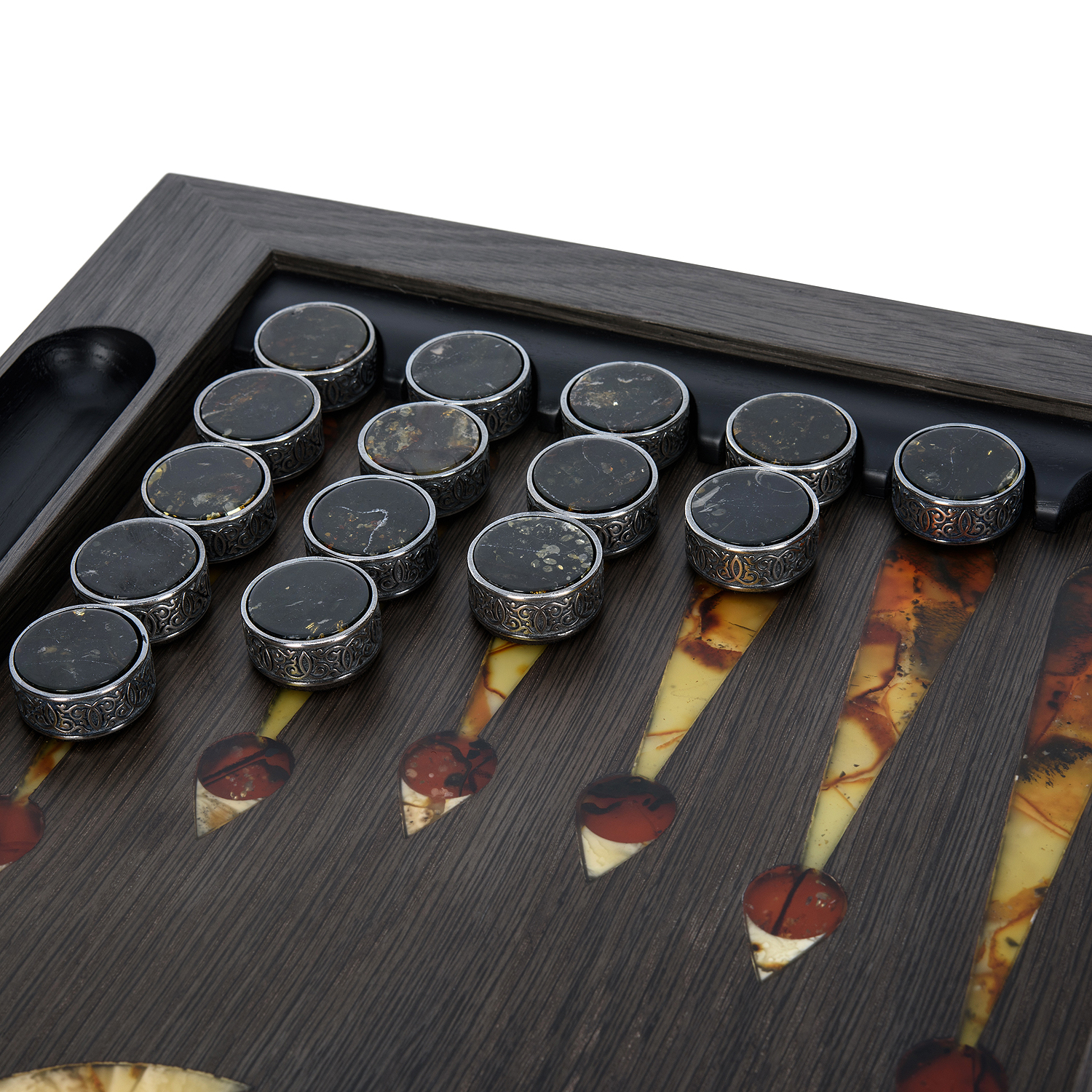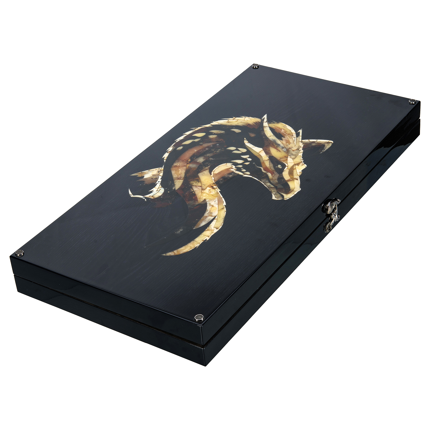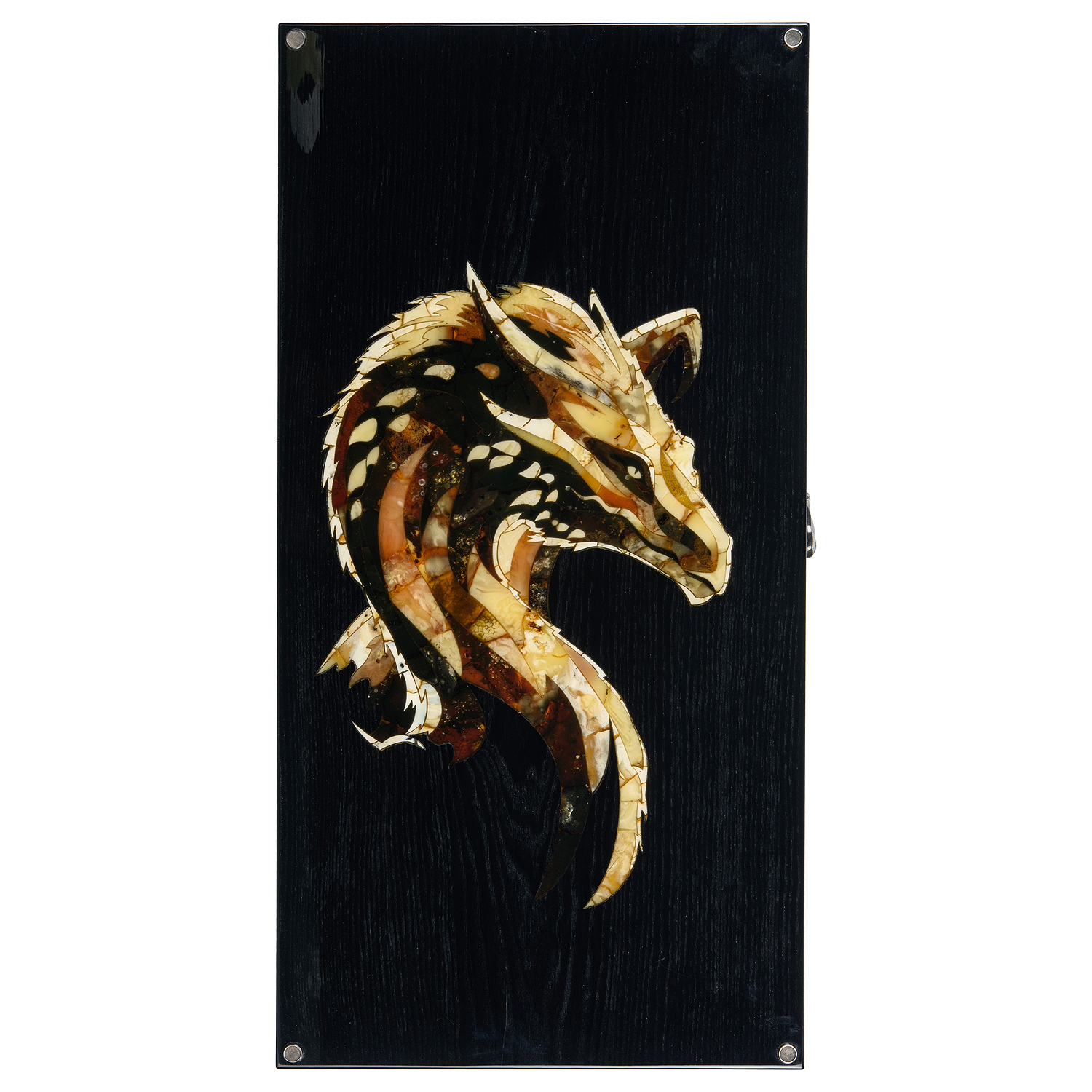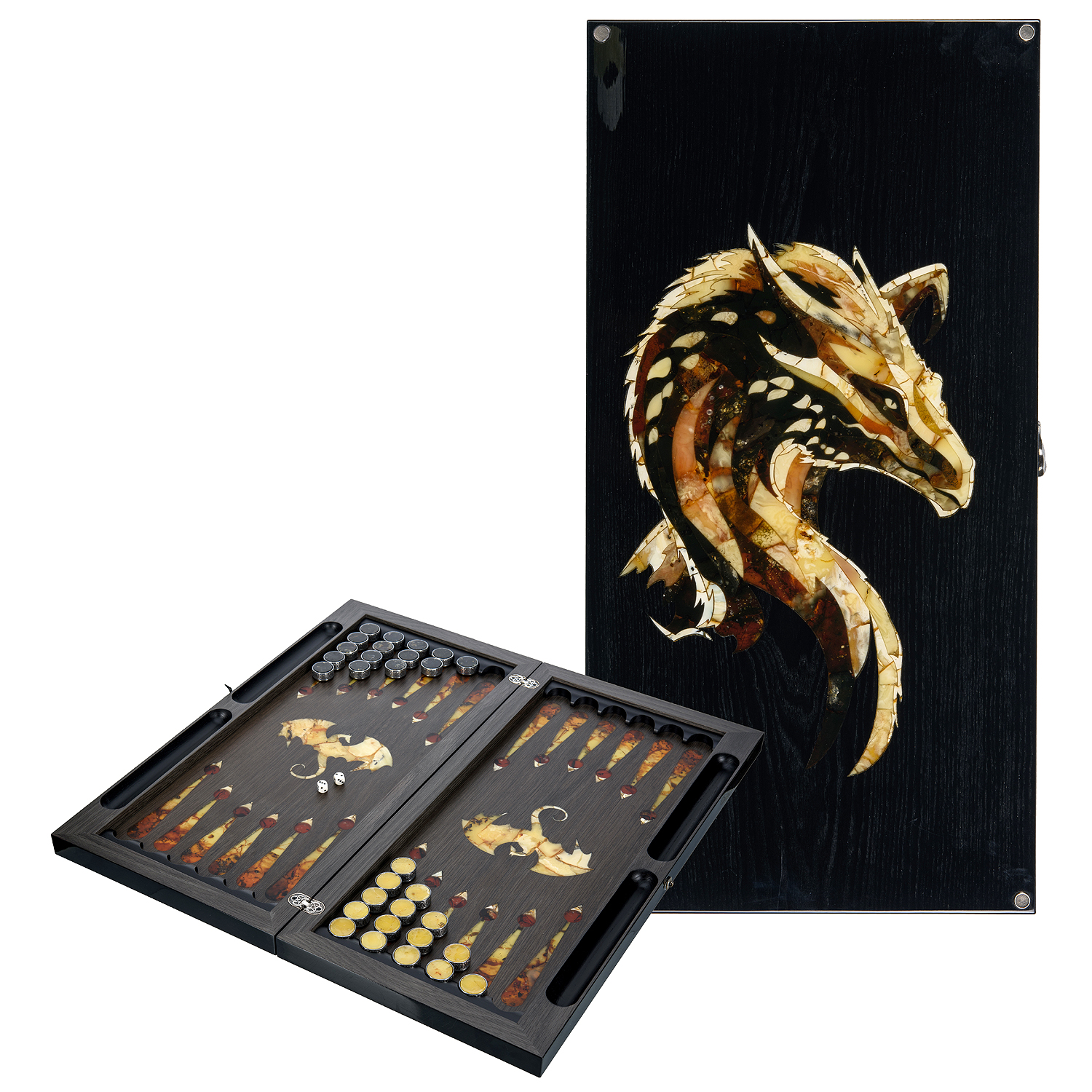 Деревянные нарды с янтарной инкрустацией "Дракон" 60х30 см