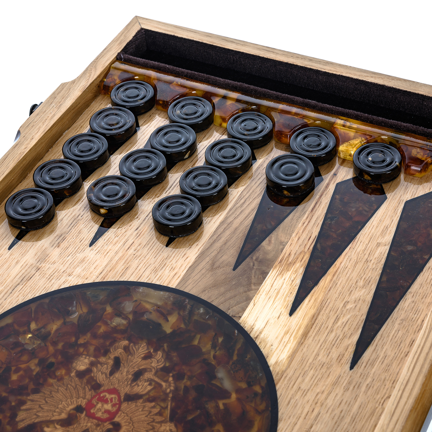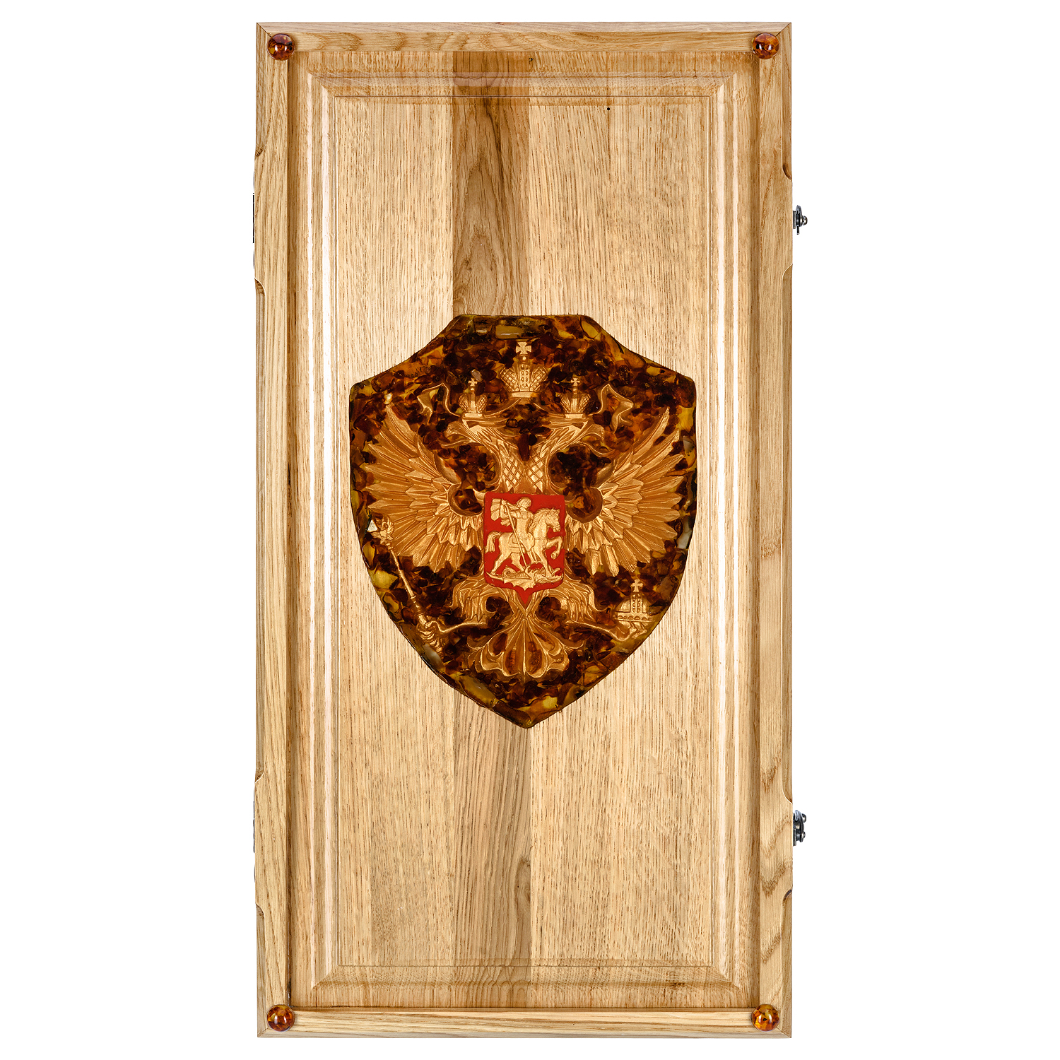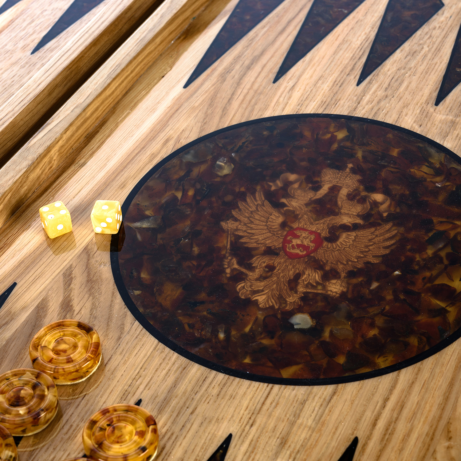 Нарды янтарные "Герб РФ".Материалы: янтарь, дуб, ясень.