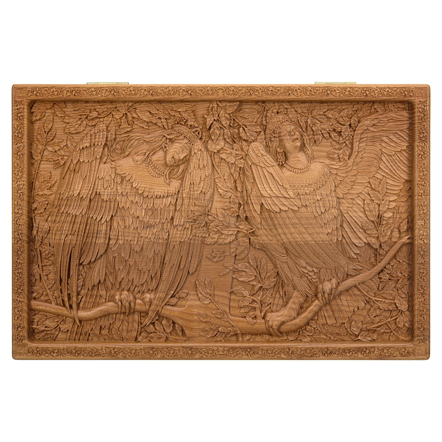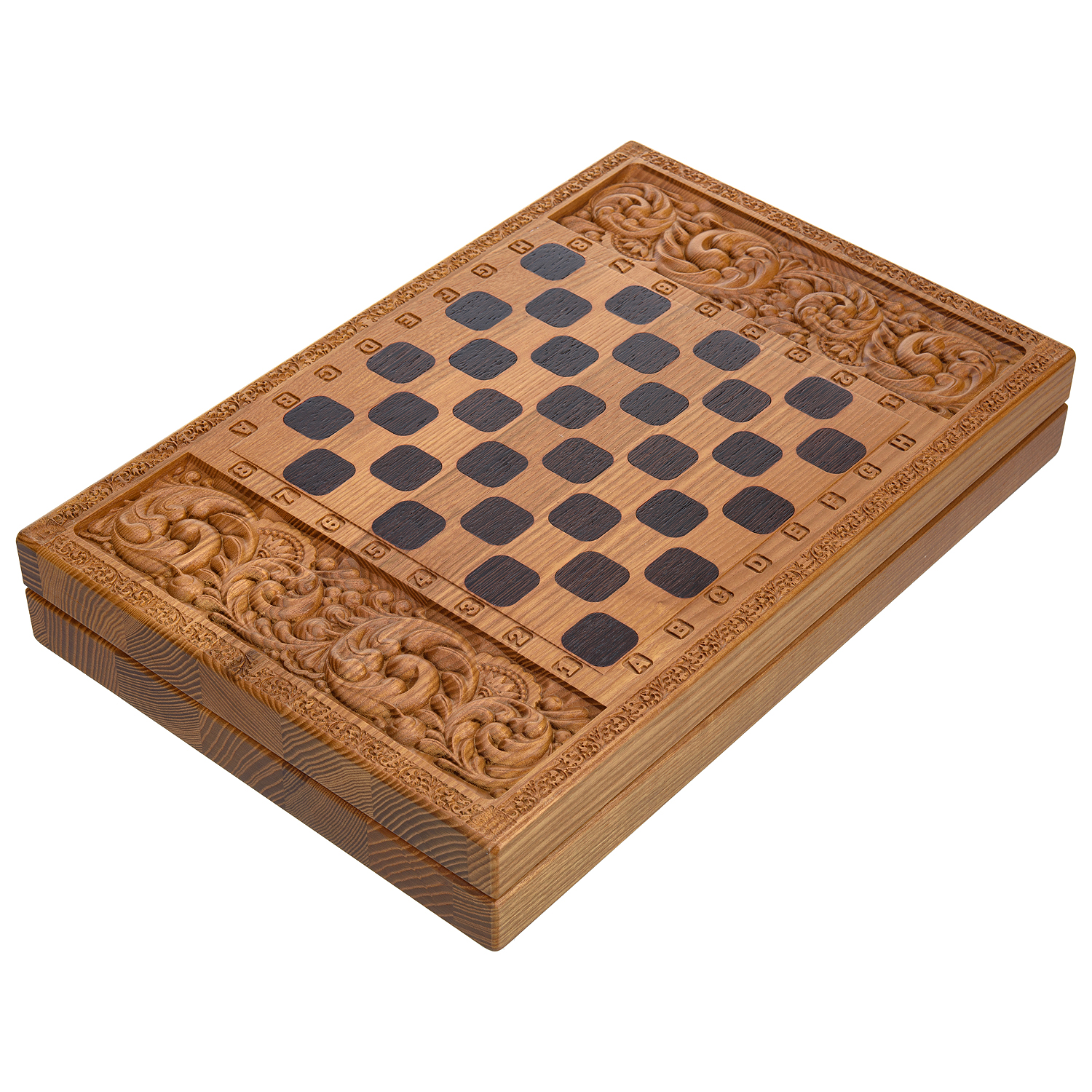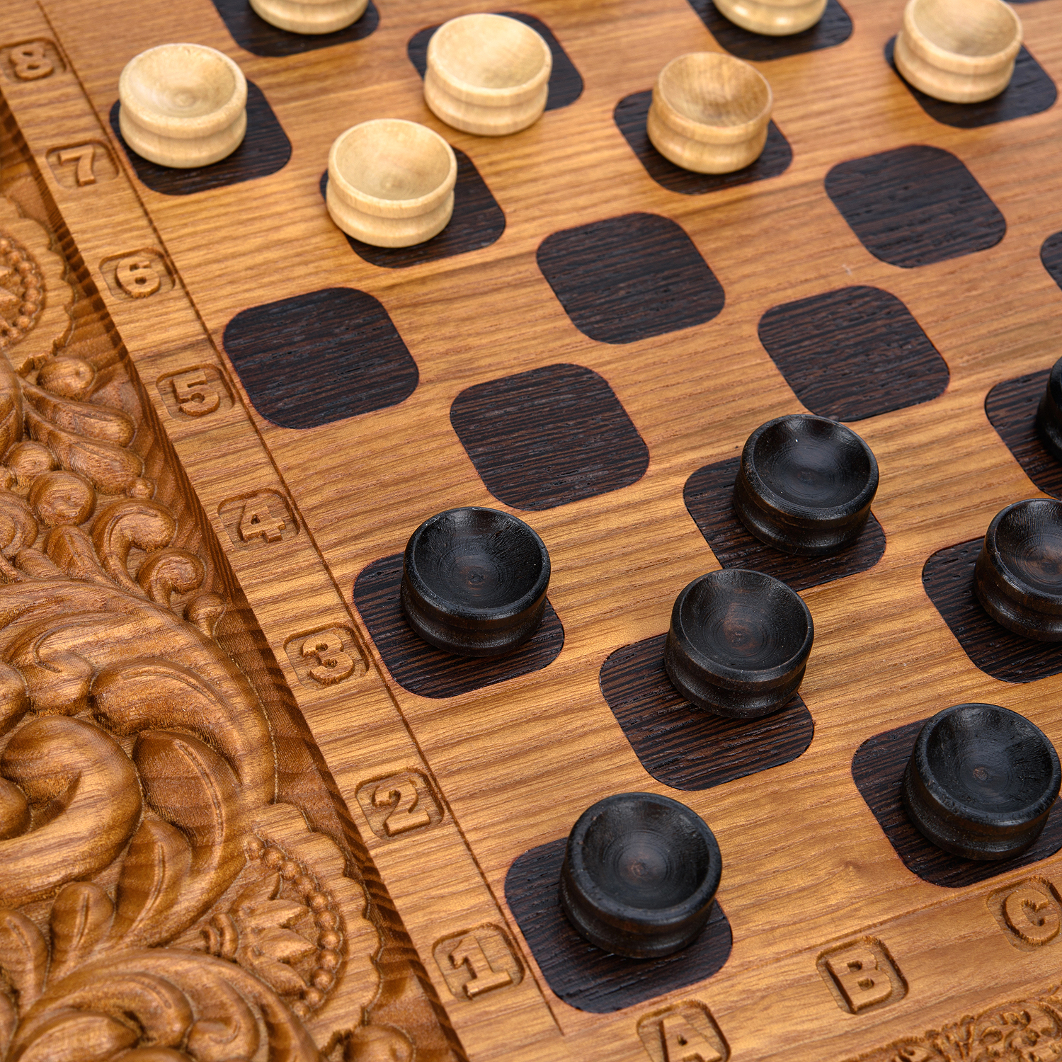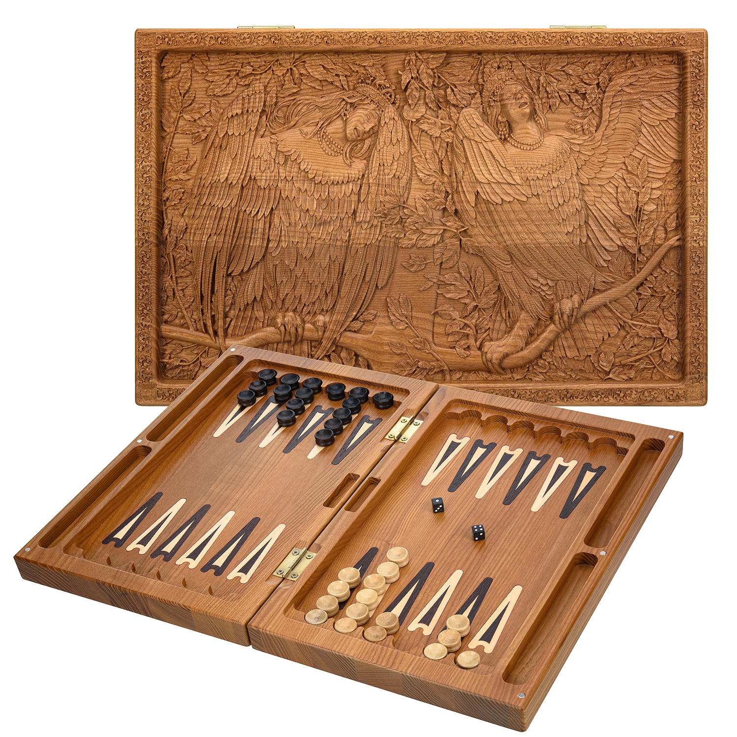 Деревянные резные нарды-шашки "Сирин и Алконост".Материал: массив черного дуба.