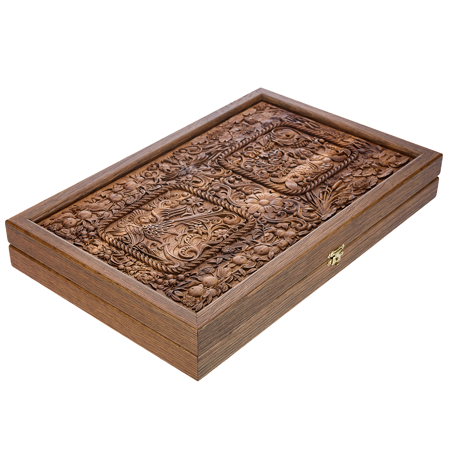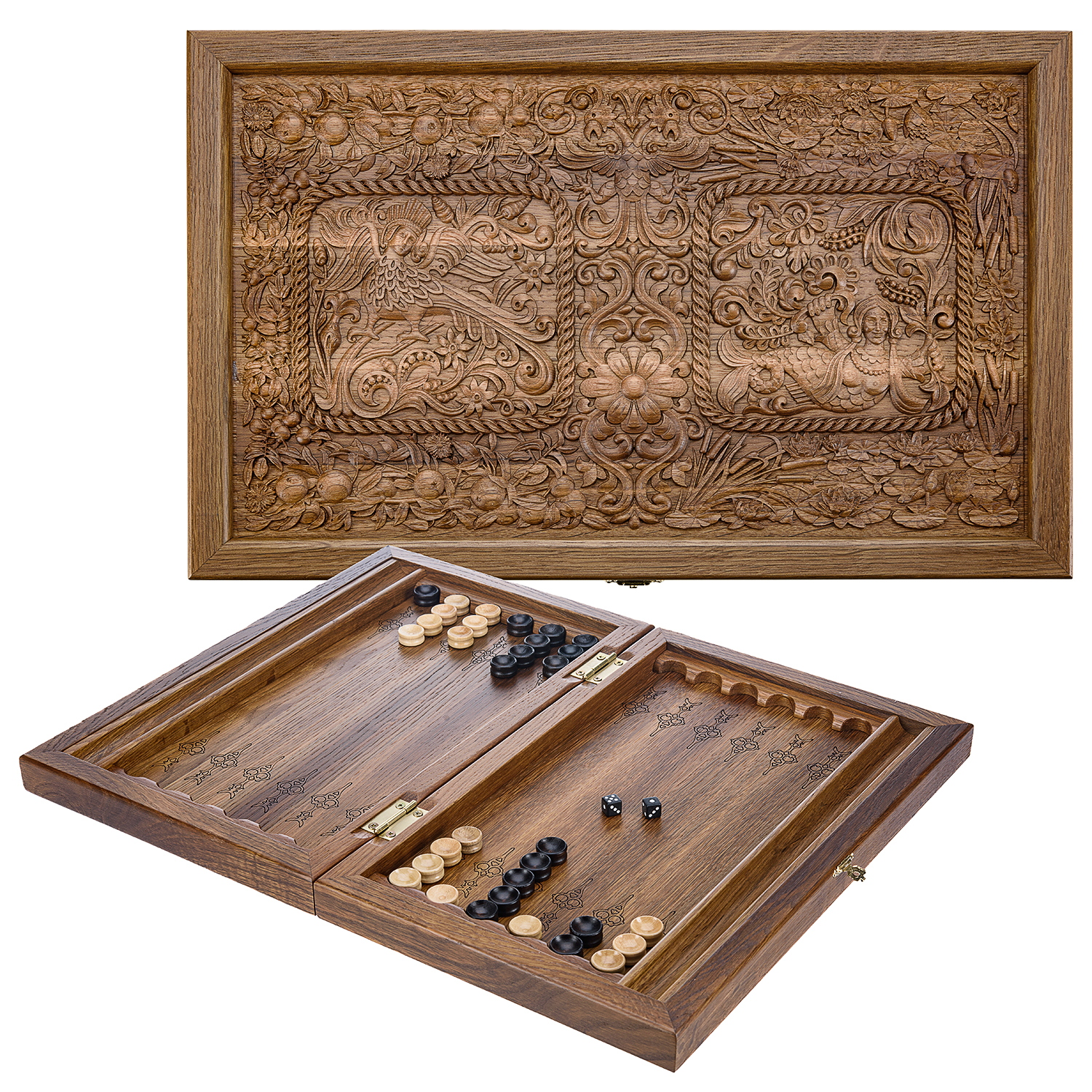 Резные деревянные нарды-шашки "Берегиня и райская птица".Материал: массив черного дуба.