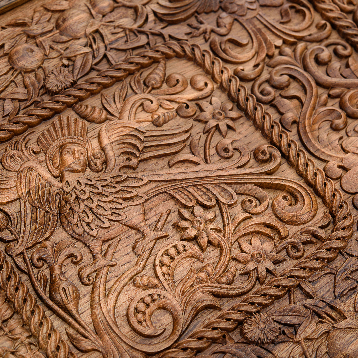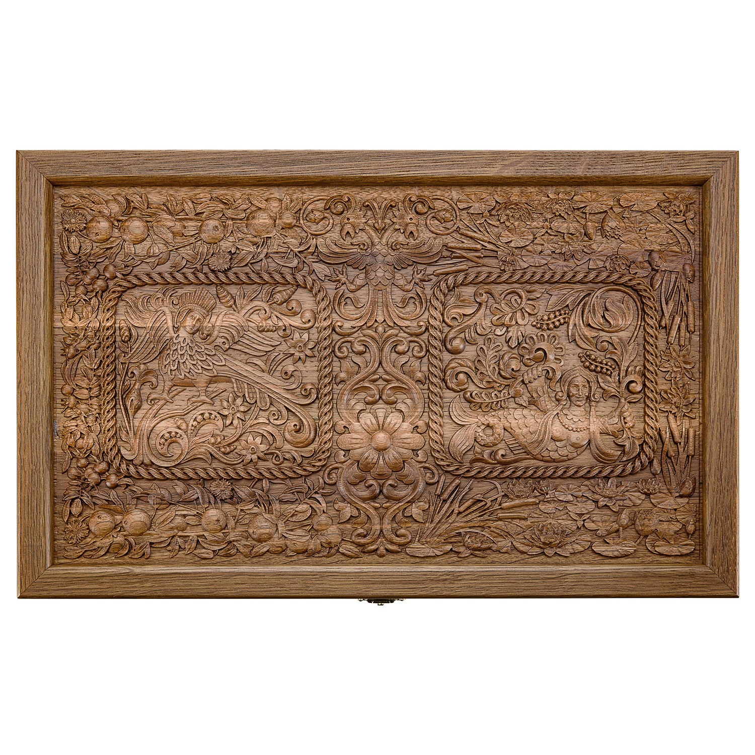 Резные деревянные нарды-шашки "Берегиня и райская птица"