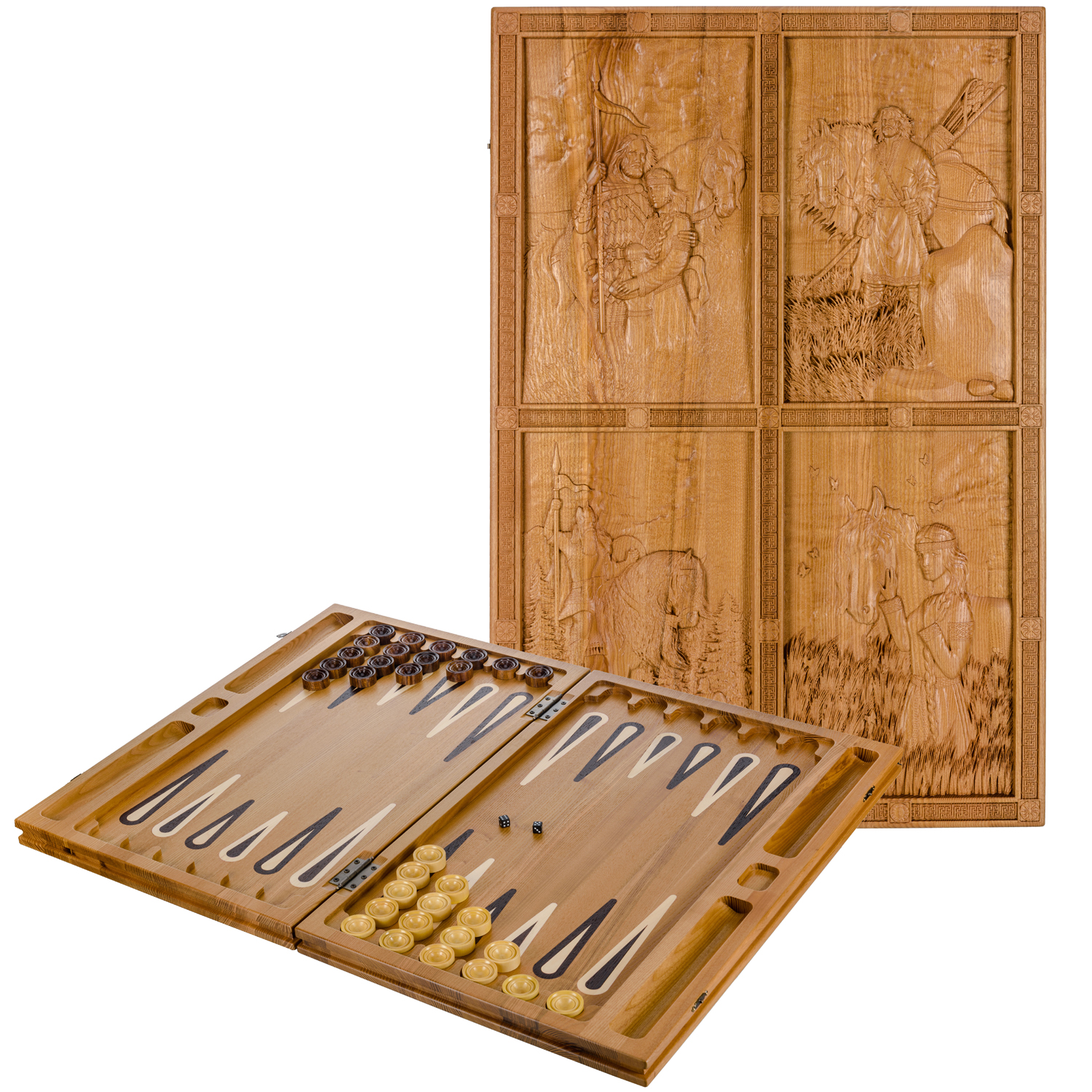 Русские подарки и сувениры → Настольные игры → Нарды → Нарды из массива мореного ясеня "Богатырские" 60х40 см