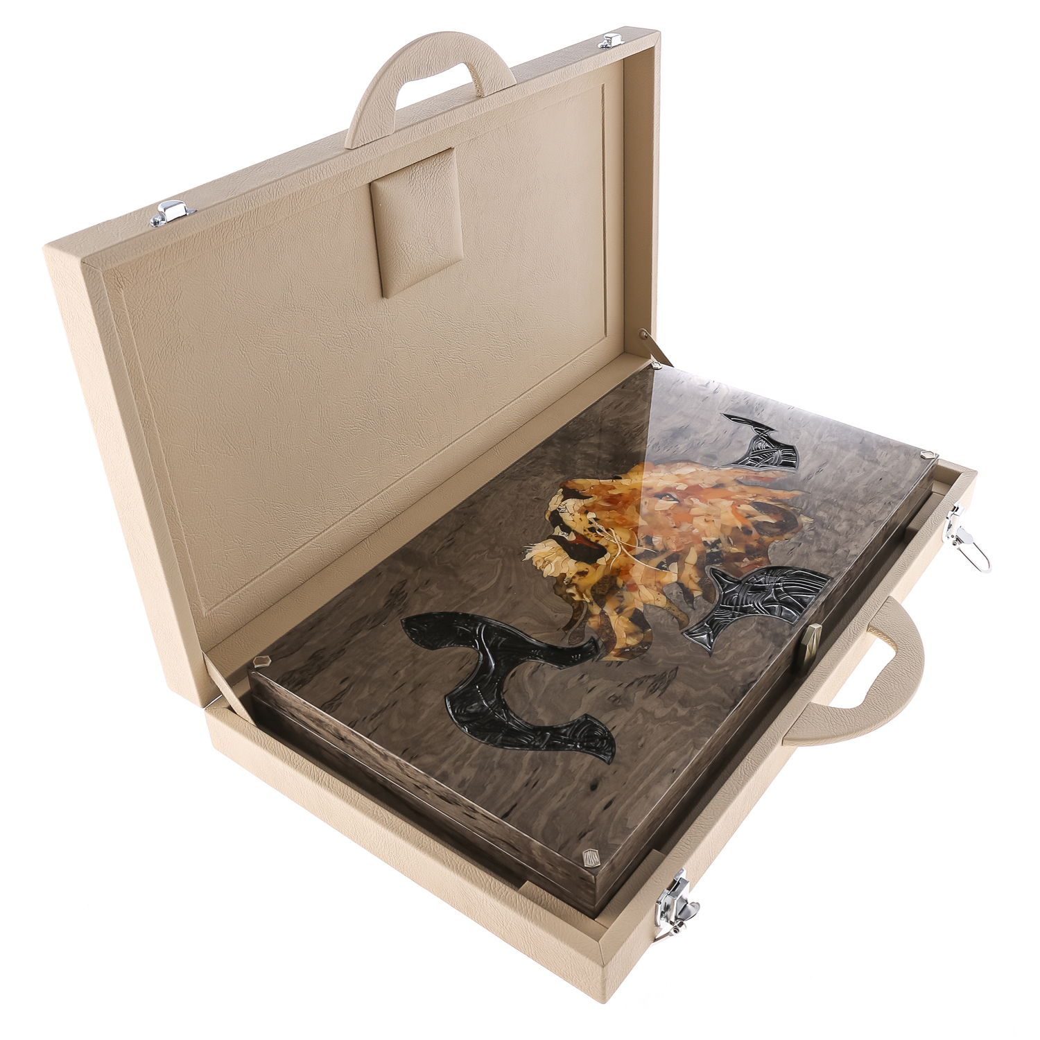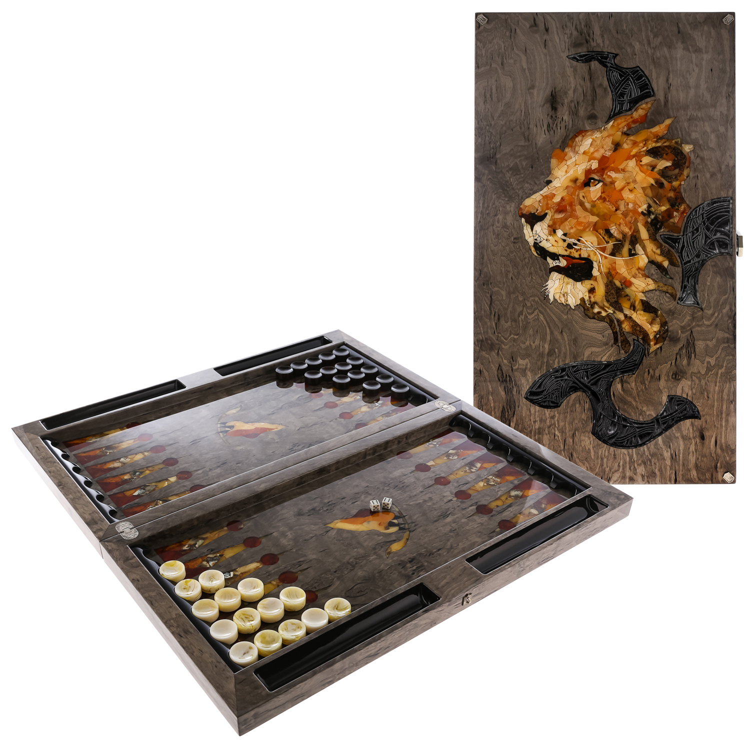 Нарды с янтарной инкрустацией "Лев" 64х60 см