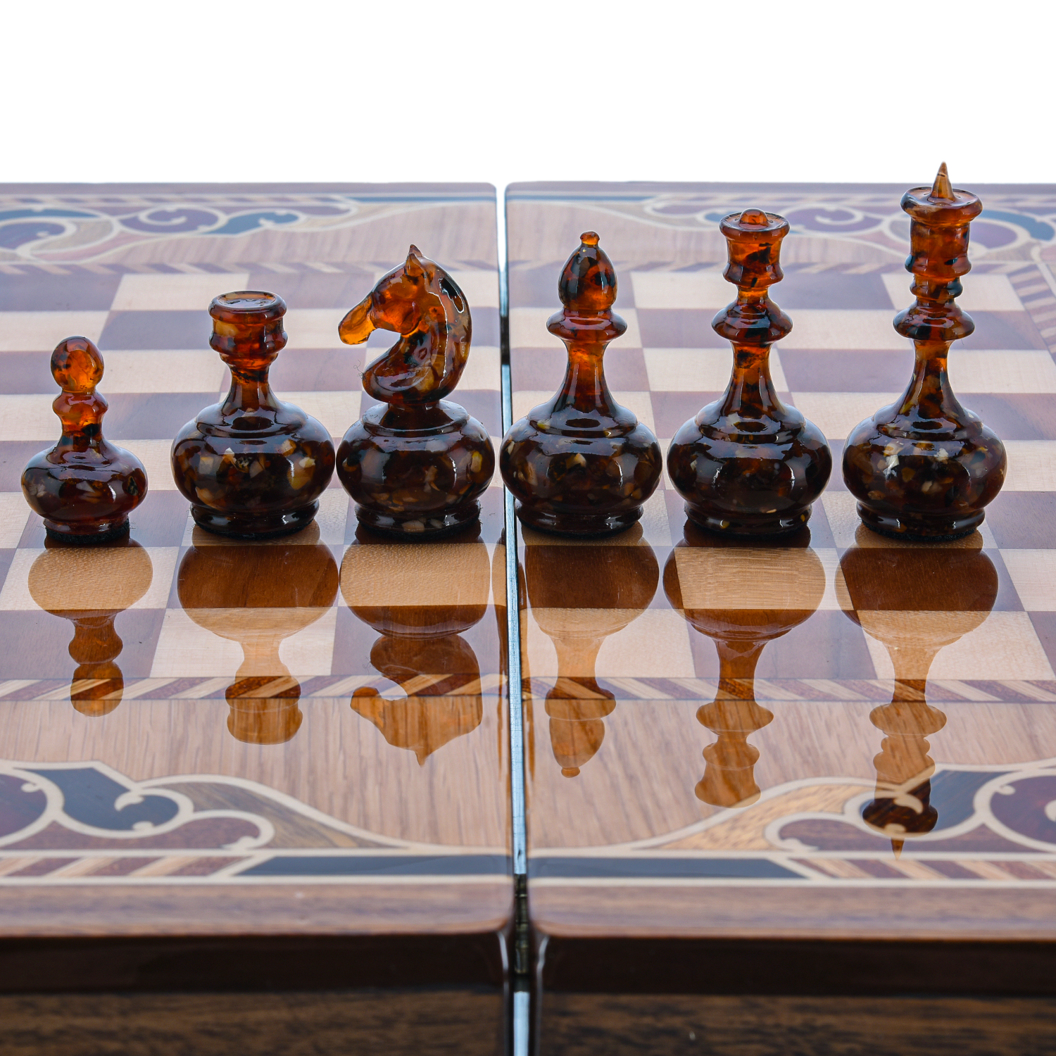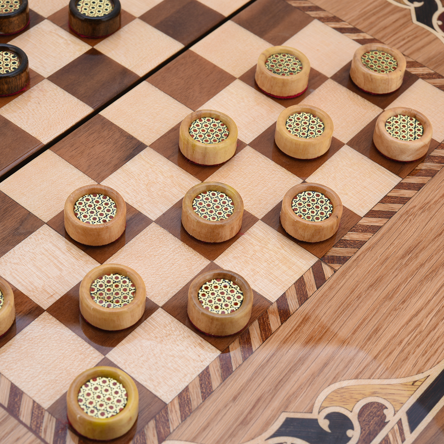 Нарды-шашки-шахматы деревянные маркетри "Синдбад".