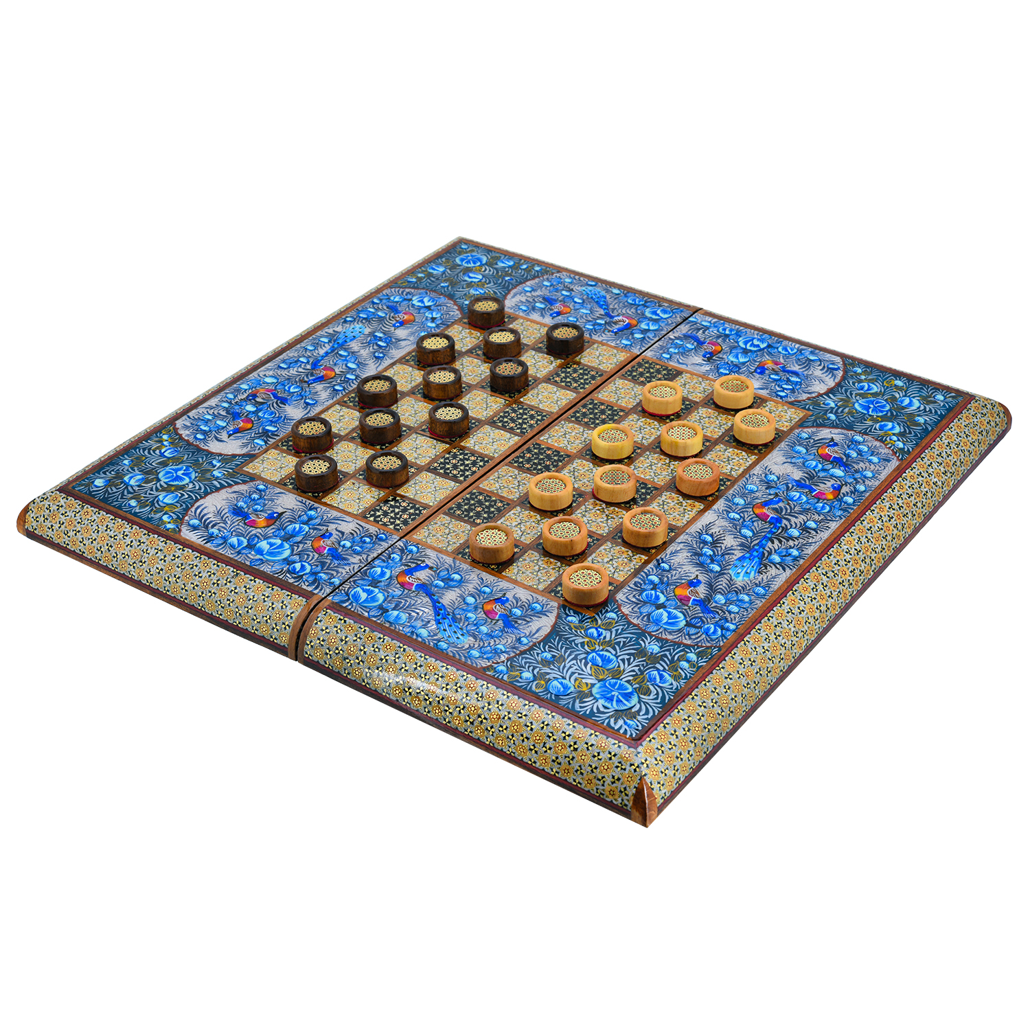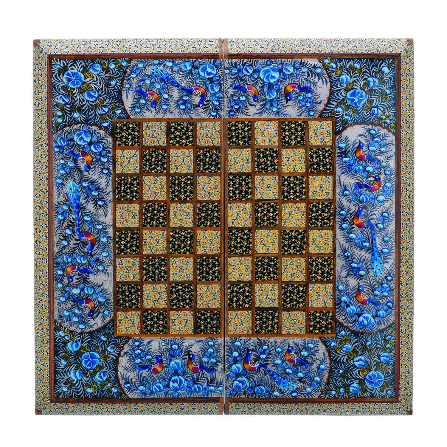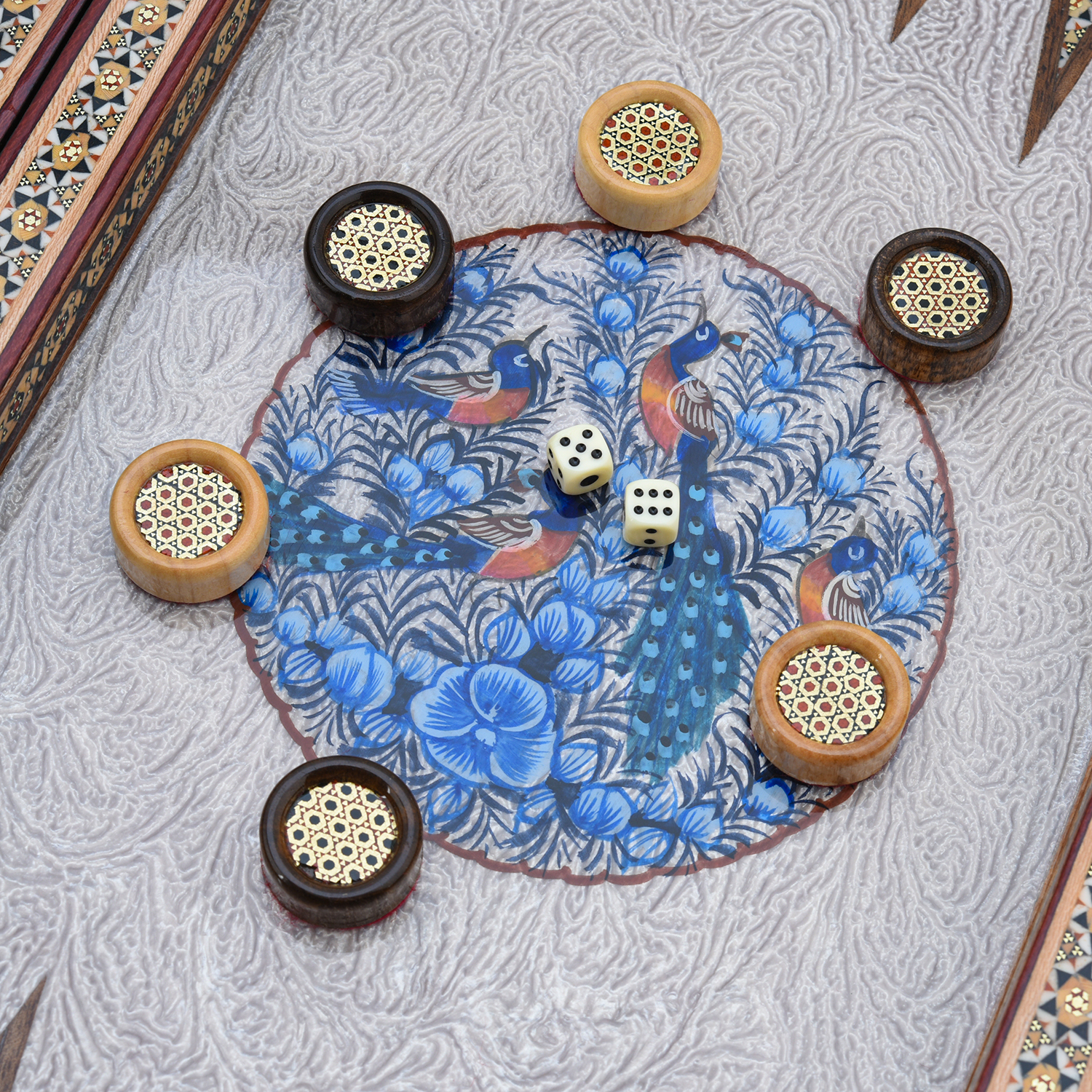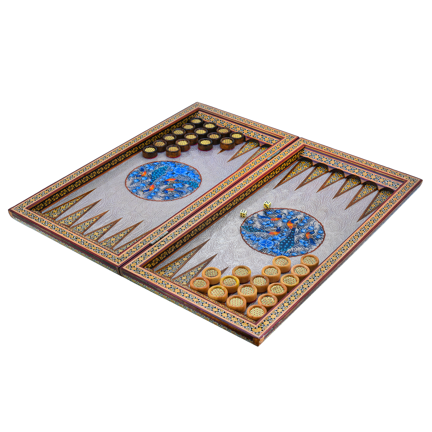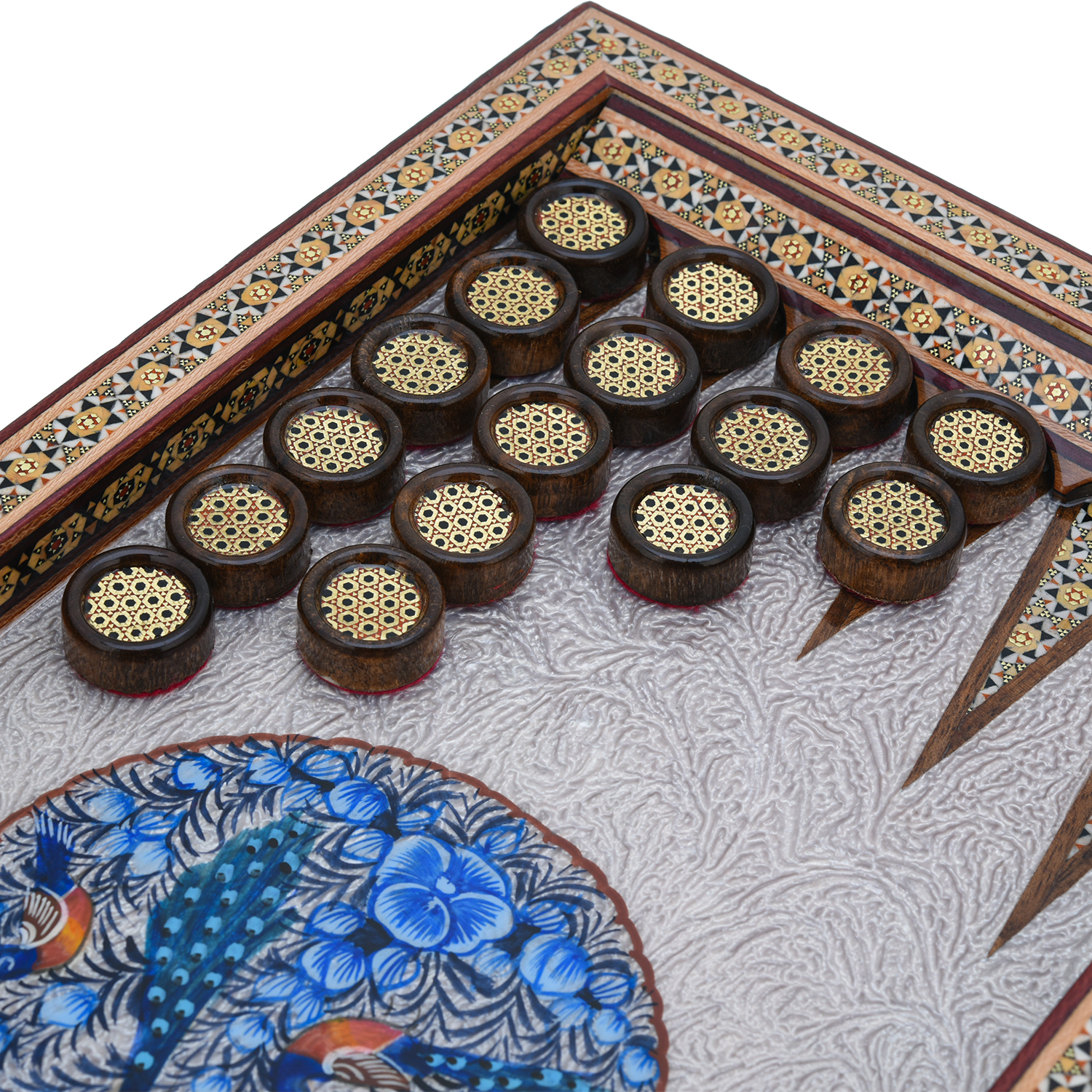 Роскошные нарды ручной работы, выполненные из массива, сочетают в себе изысканность природной текстуры древесины и искусство персидской техники Хатам Кари. Инкрустация геометрическими узорами из разноцветных пород дерева, металла и кости придаёт игровому полю уникальный декоративный эффект. В комплекте — деревянные шашки, гармонирующие с дизайном. Идеальный выбор для ценителей эксклюзивных настольных игр, восточной эстетики и элитных аксессуаров интерьера.Размер: 490х250х70 мм