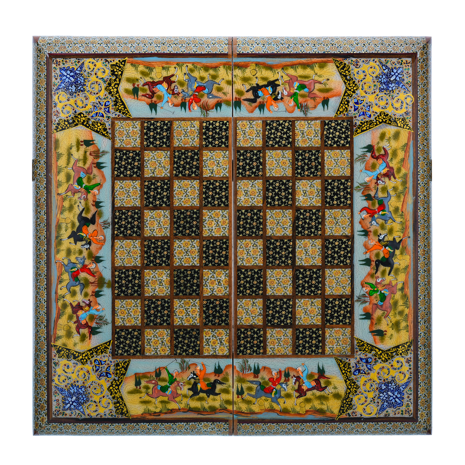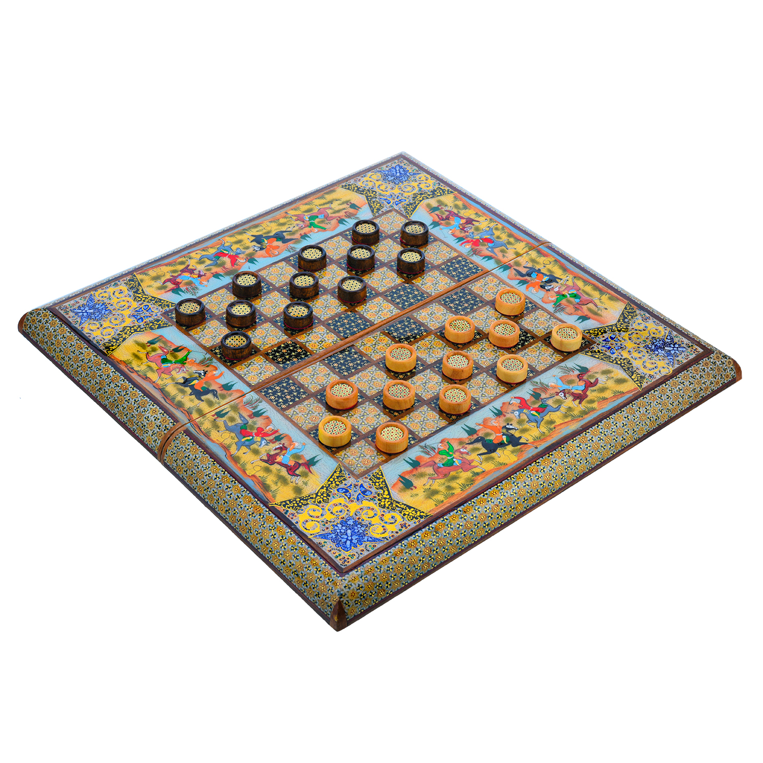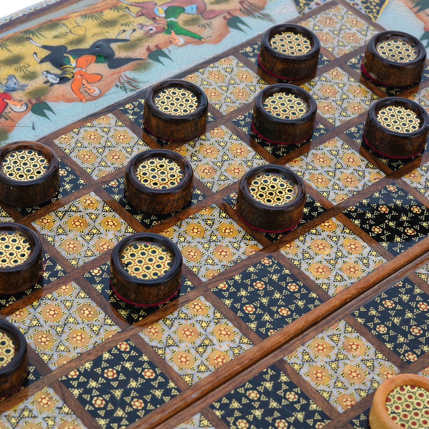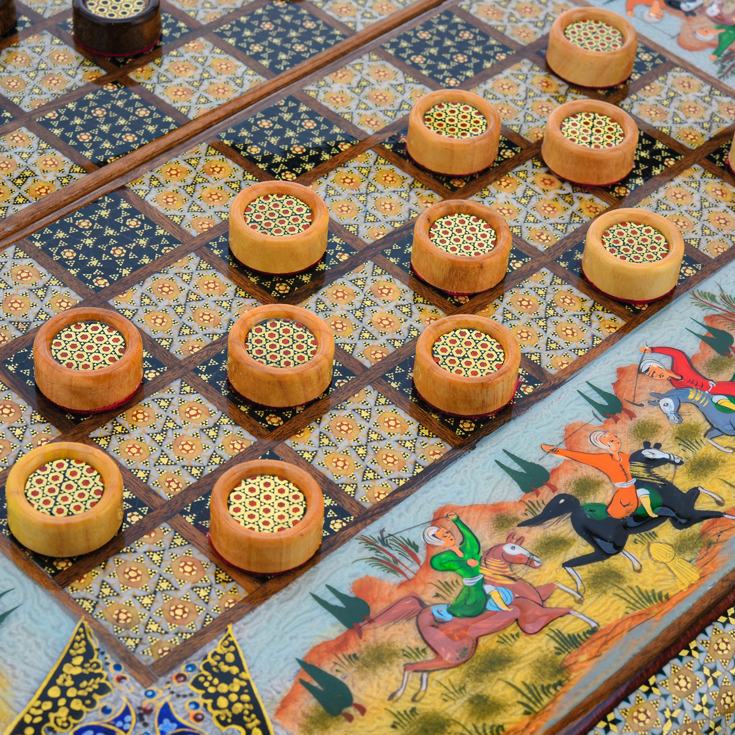 Роскошные нарды ручной работы, выполненные из массива, сочетают в себе изысканность природной текстуры древесины и искусство персидской техники Хатам Кари. Инкрустация геометрическими узорами из разноцветных пород дерева, металла и кости придаёт игровому полю уникальный декоративный эффект. В комплекте — деревянные шашки, гармонирующие с дизайном. Идеальный выбор для ценителей эксклюзивных настольных игр, восточной эстетики и элитных аксессуаров интерьера.Размер: 490х250х70 мм ....
