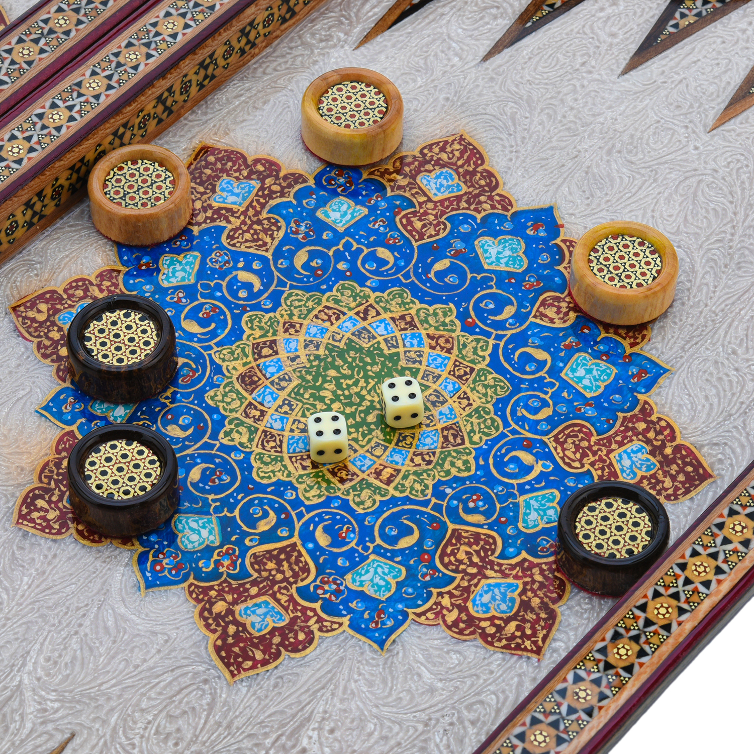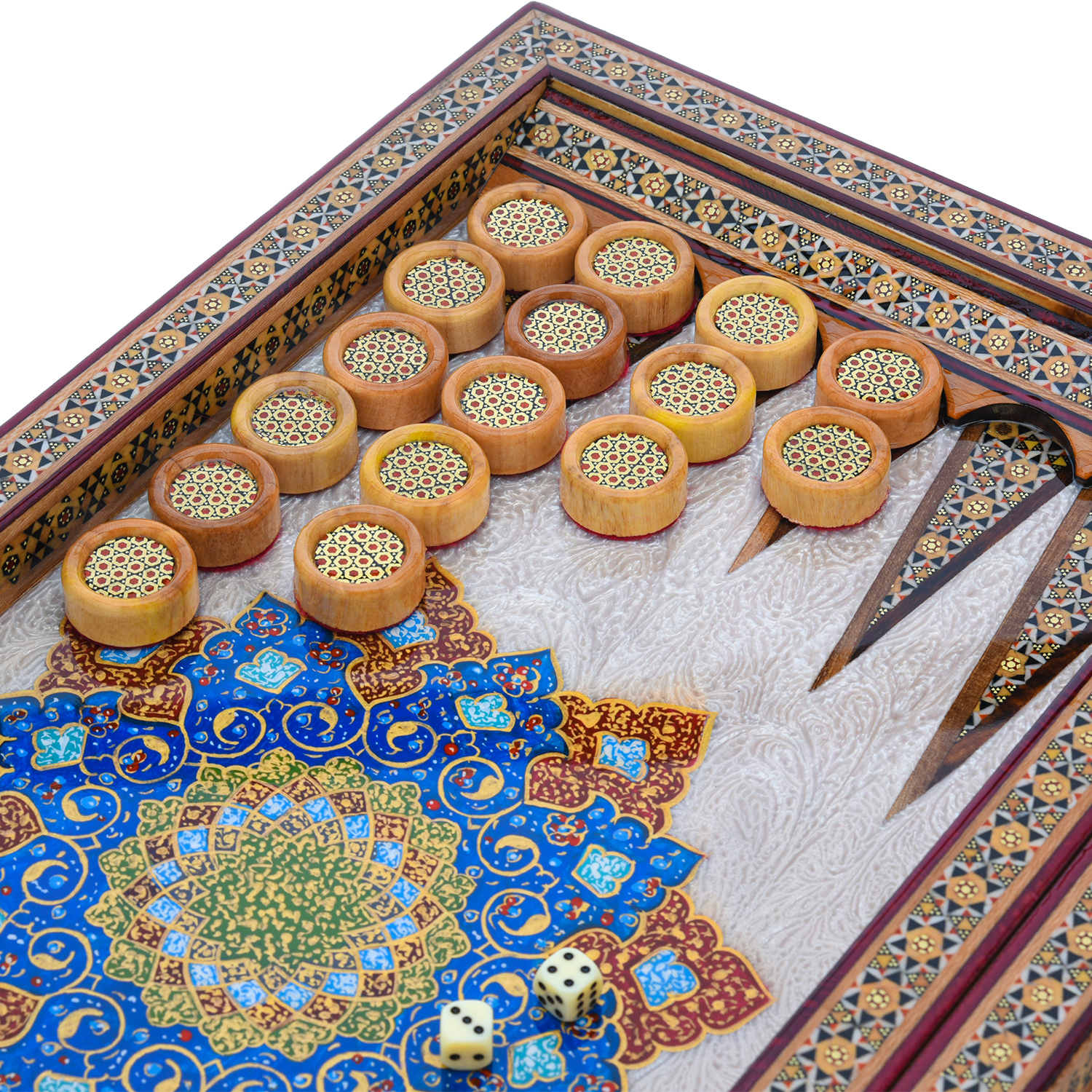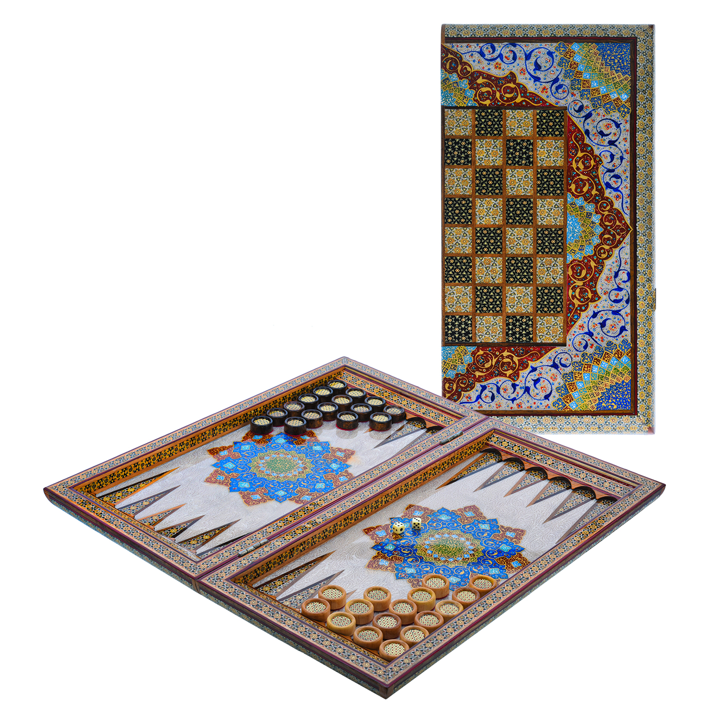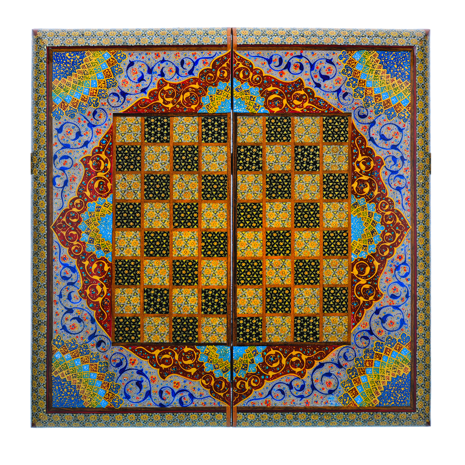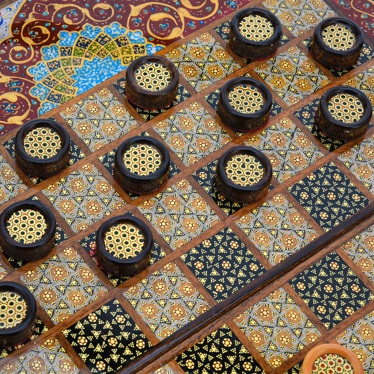 Роскошные нарды ручной работы, выполненные из массива, сочетают в себе изысканность природной текстуры древесины и искусство персидской техники Хатам Кари. Инкрустация геометрическими узорами из разноцветных пород дерева, металла и кости придаёт игровому полю уникальный декоративный эффект. В комплекте — деревянные шашки, гармонирующие с дизайном. Идеальный выбор для ценителей эксклюзивных настольных игр, восточной эстетики и элитных аксессуаров интерьера.Размер: 490х250х70 мм ....