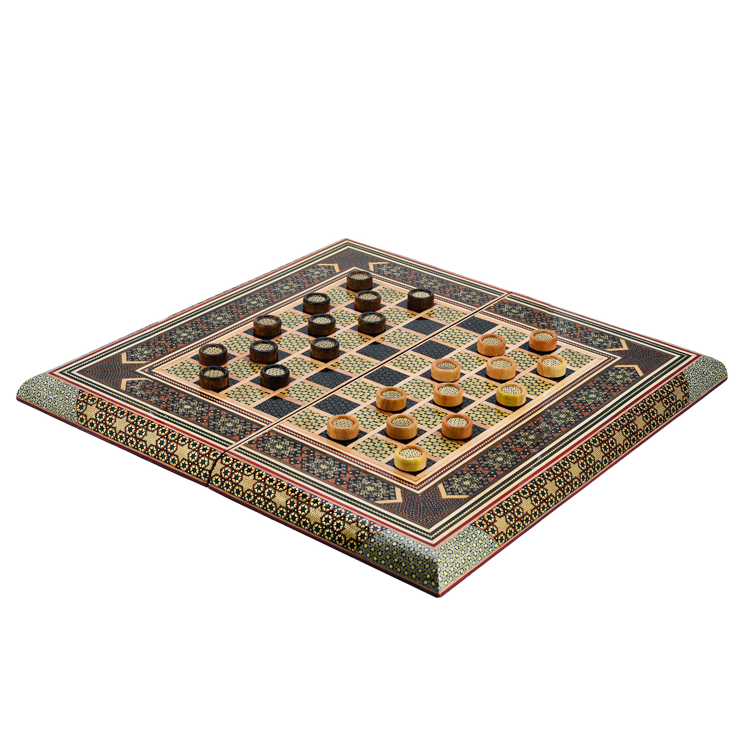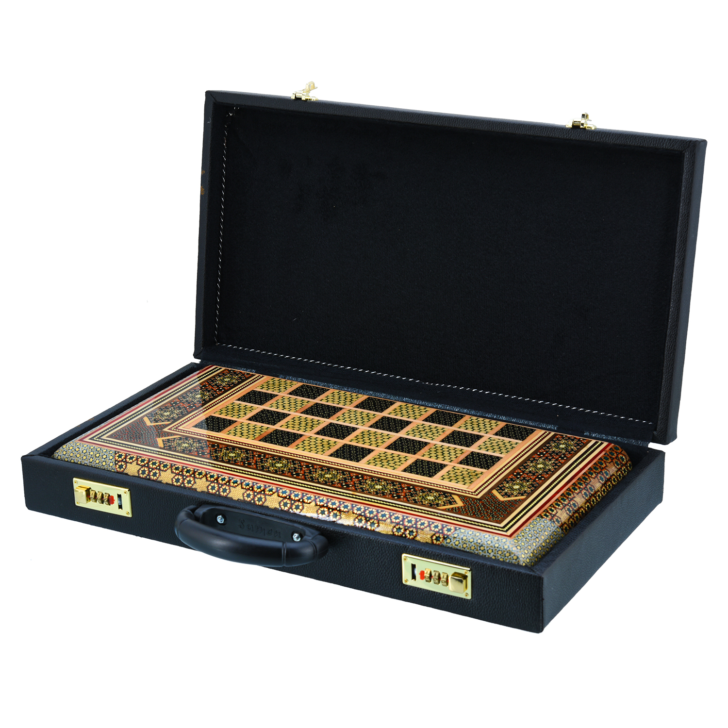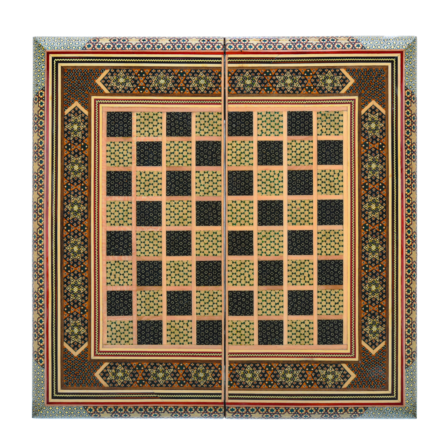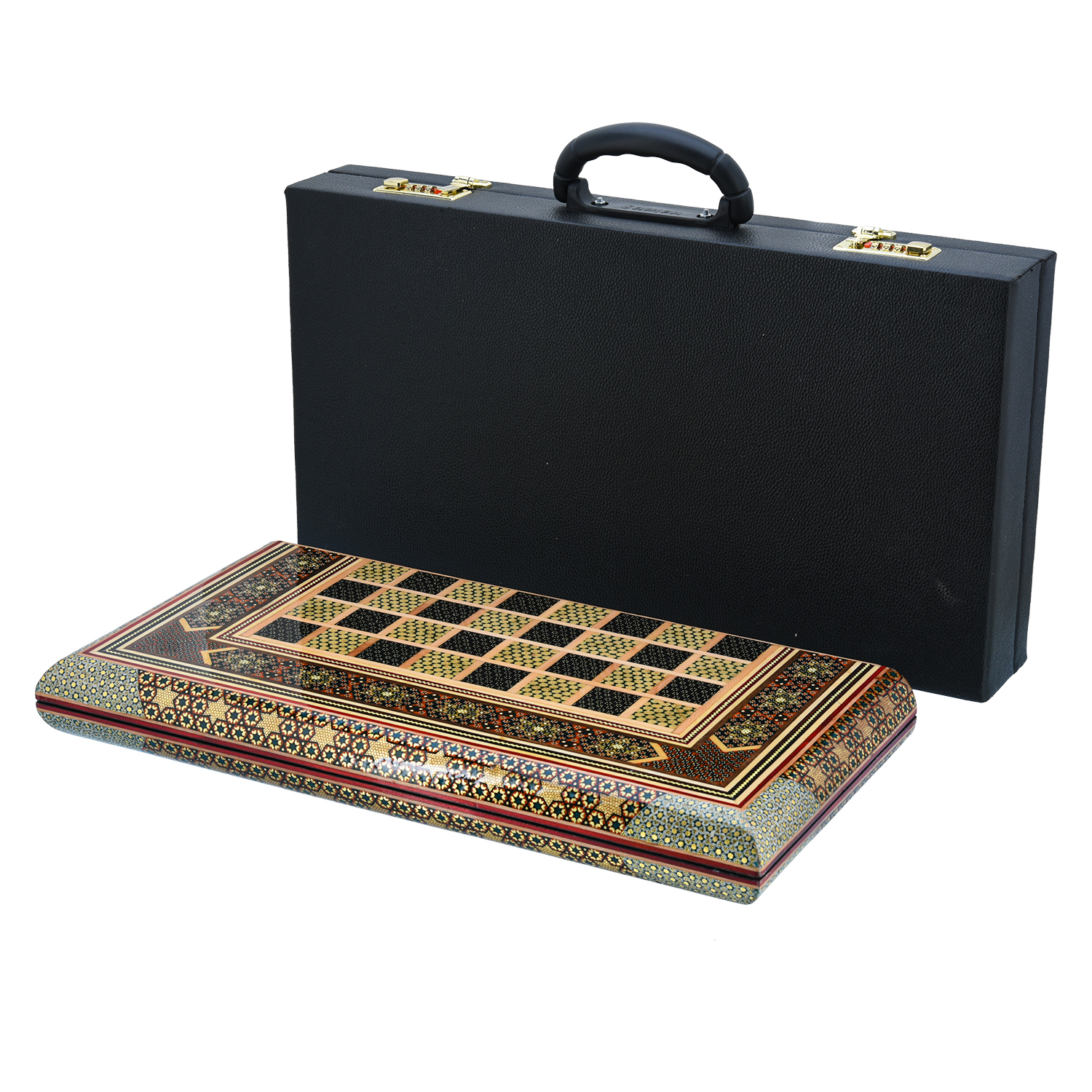 Роскошные нарды ручной работы, выполненные из массива, сочетают в себе изысканность природной текстуры древесины и искусство персидской техники Хатам Кари. Инкрустация геометрическими узорами из разноцветных пород дерева, металла и кости придаёт игровому полю уникальный декоративный эффект. В комплекте — деревянные шашки, гармонирующие с дизайном. Идеальный выбор для ценителей эксклюзивных настольных игр, восточной эстетики и элитных аксессуаров интерьера.Размер: 490х250х70 мм