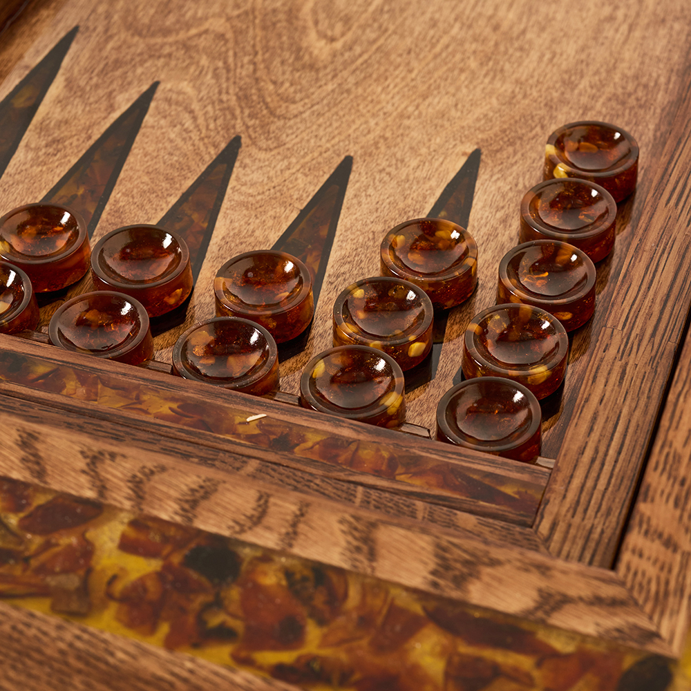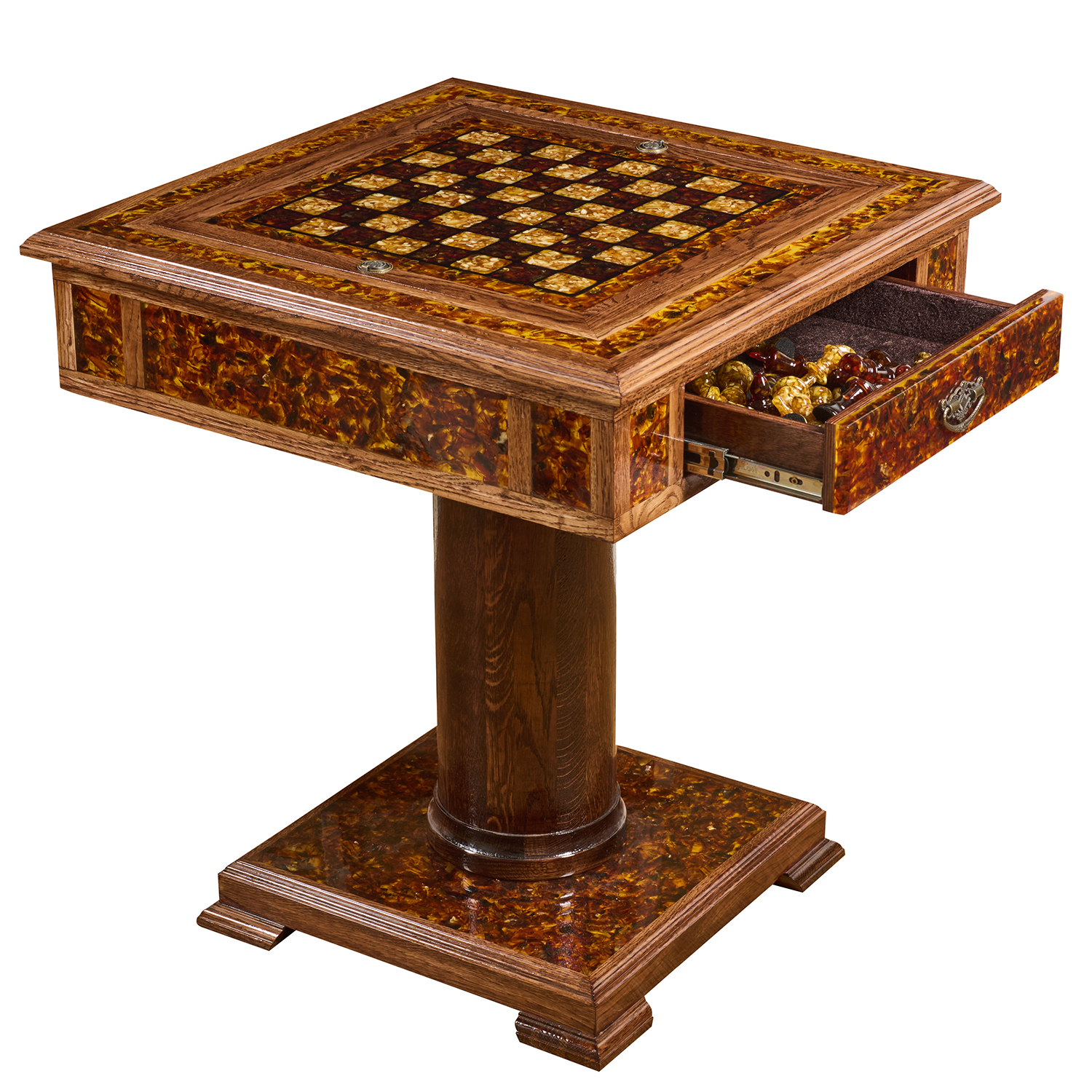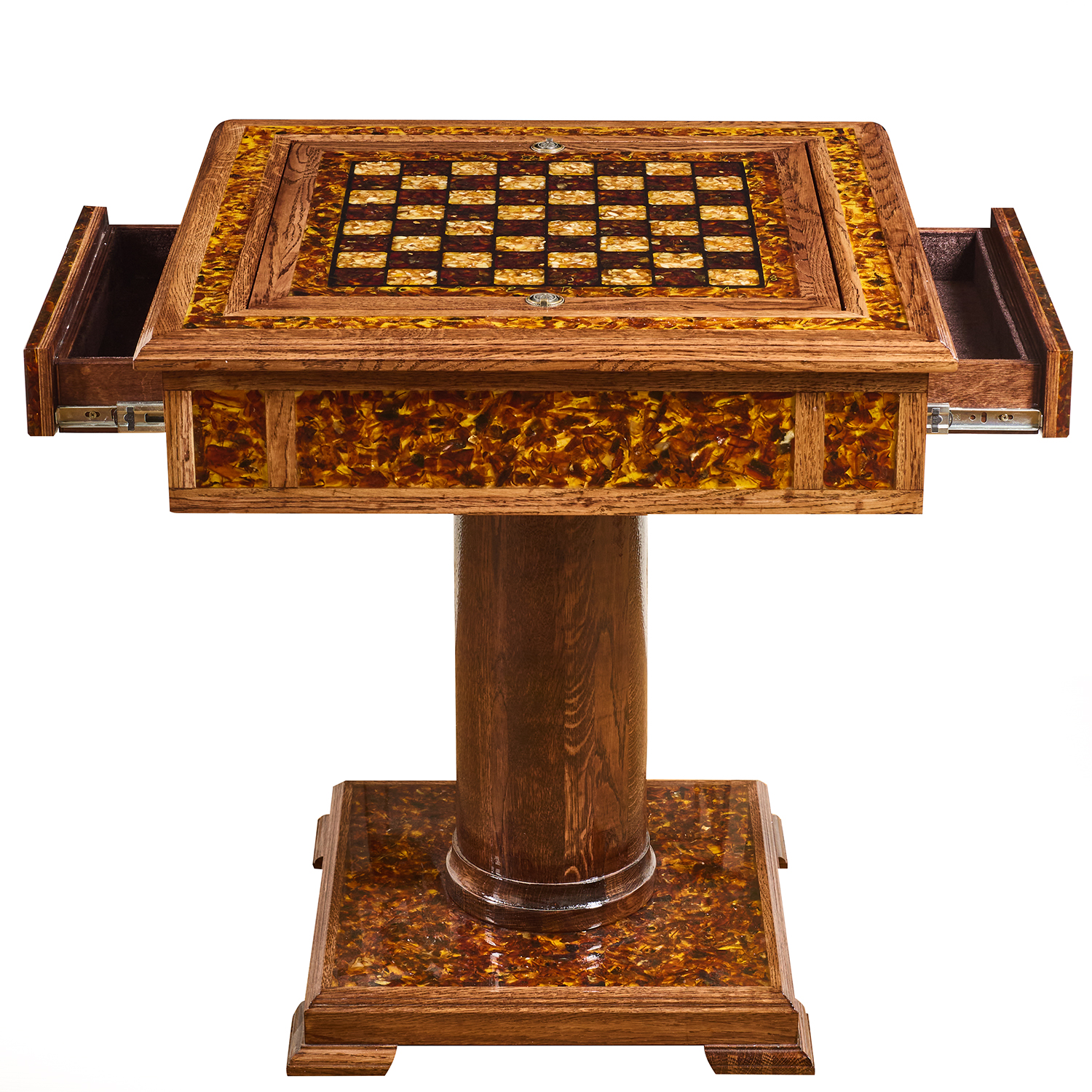 Янтарный стол с шахматами и нардами.Материалы: дерево, янтарь, полиэфирная смола.