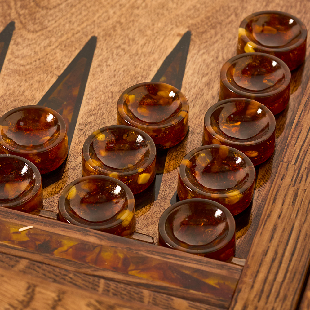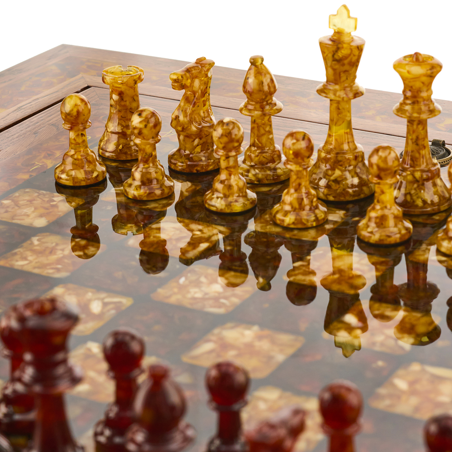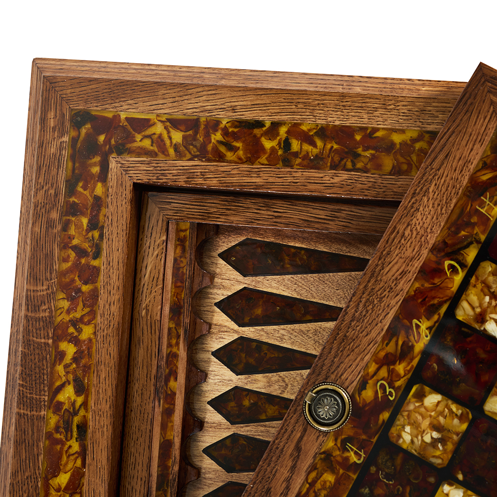 Янтарный стол с шахматами и нардами.Материалы: дерево, янтарь, полиэфирная смола.