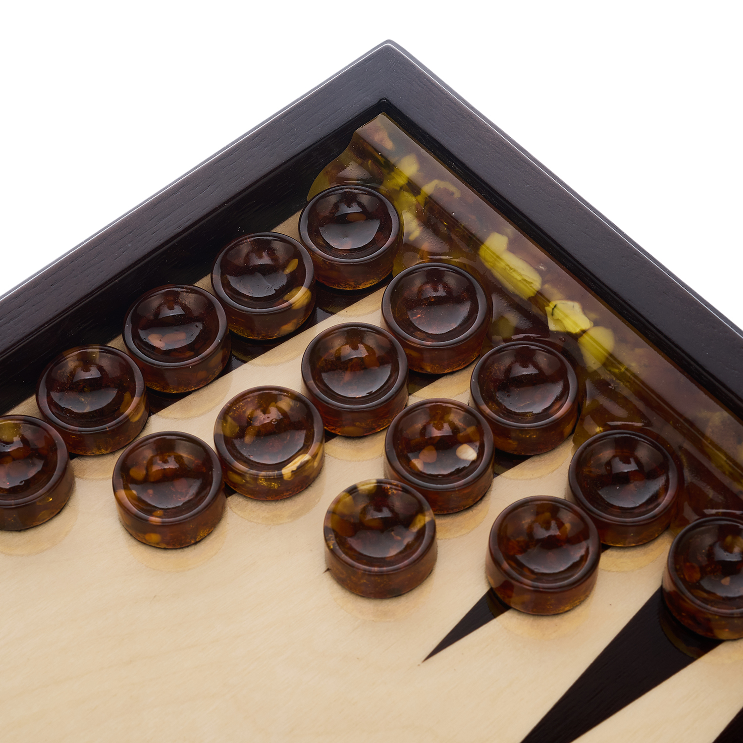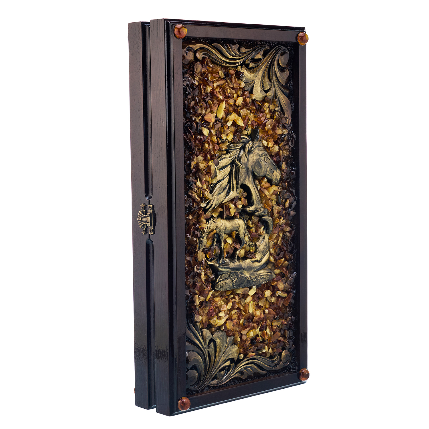 Нарды янтарные "Кони".Материалы: дуб, ясень, янтарь.
